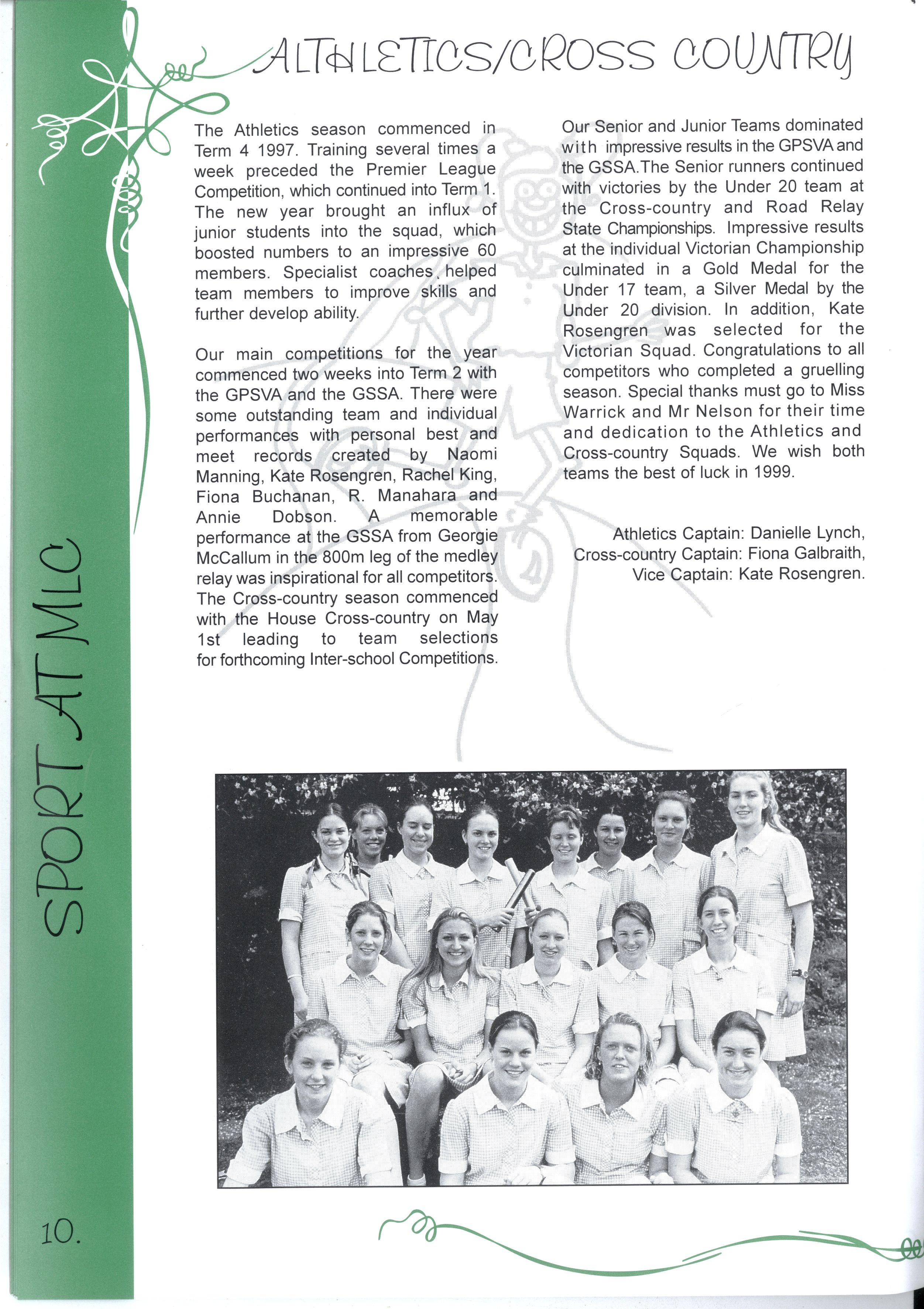 Athletics Captain: Danielle Lynch, Cross-country Captain: Fiona Galbraith, Vice Captain: Kate Rosengren