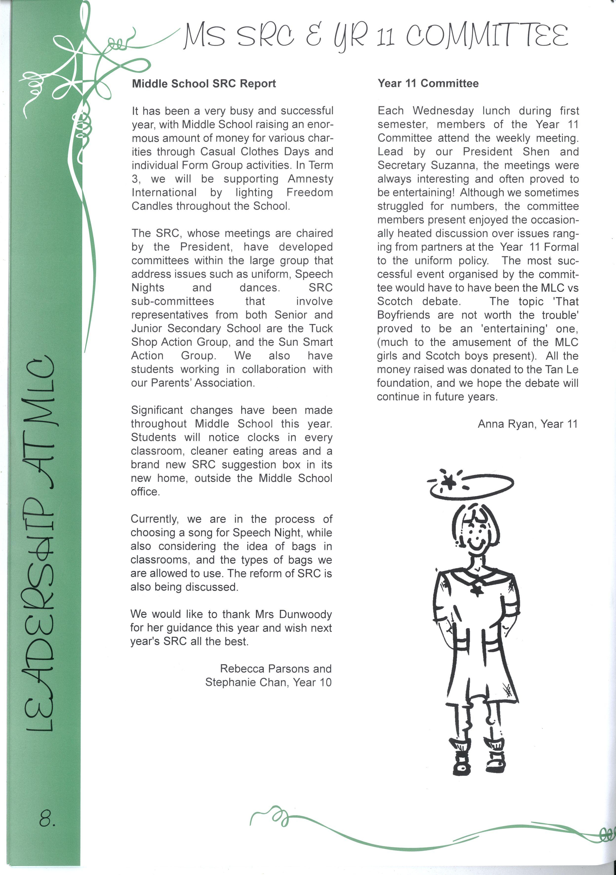 We would like to thank Mrs Dunwoody for her guidance this year and wish next year's SRC all the best