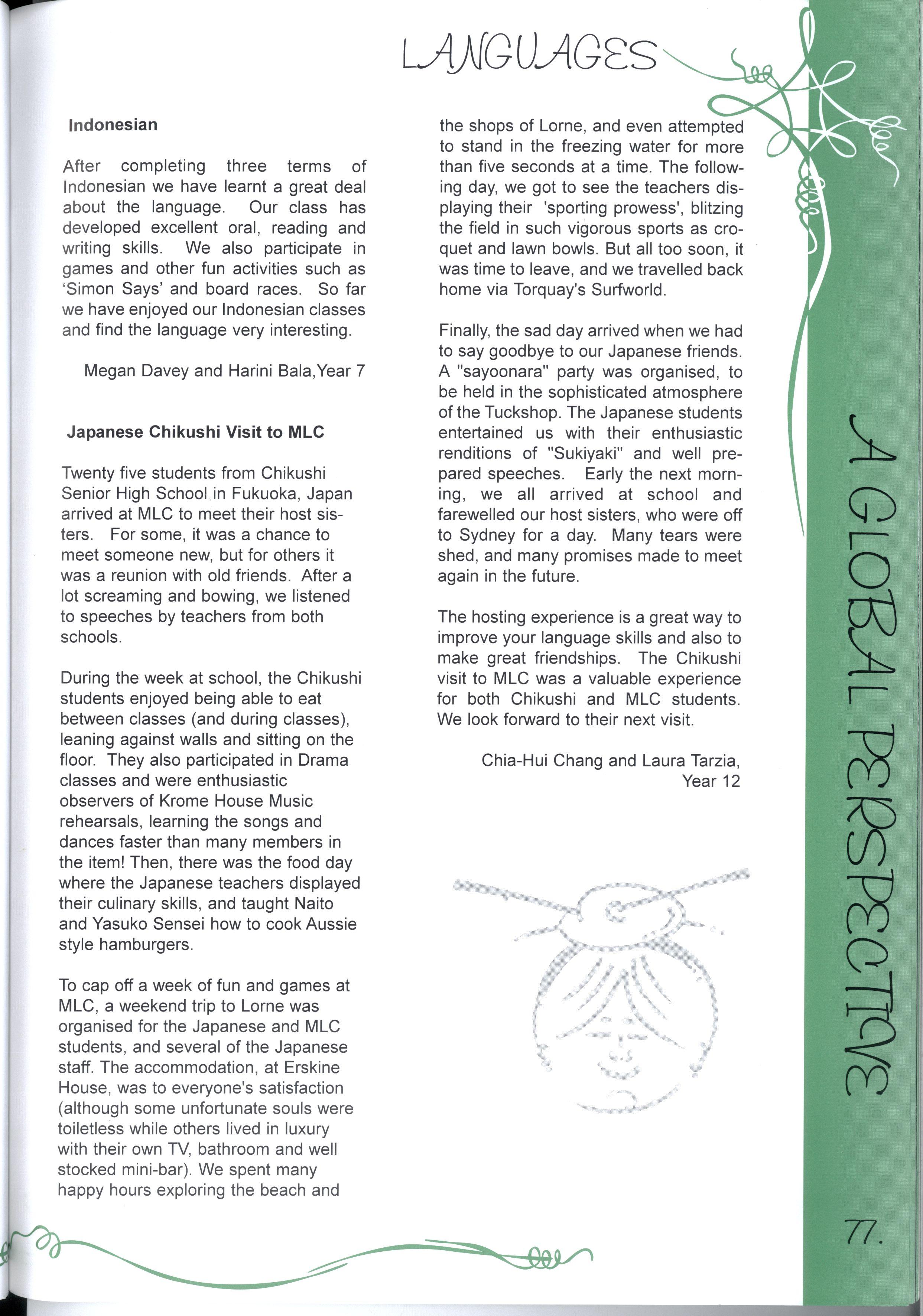 The hosting experience is a great way to improve your language skills and also to make great friendships The Chikushi visit to MLC was a valuable experience for both Chikushi and MLC students We look forward to their next visit.