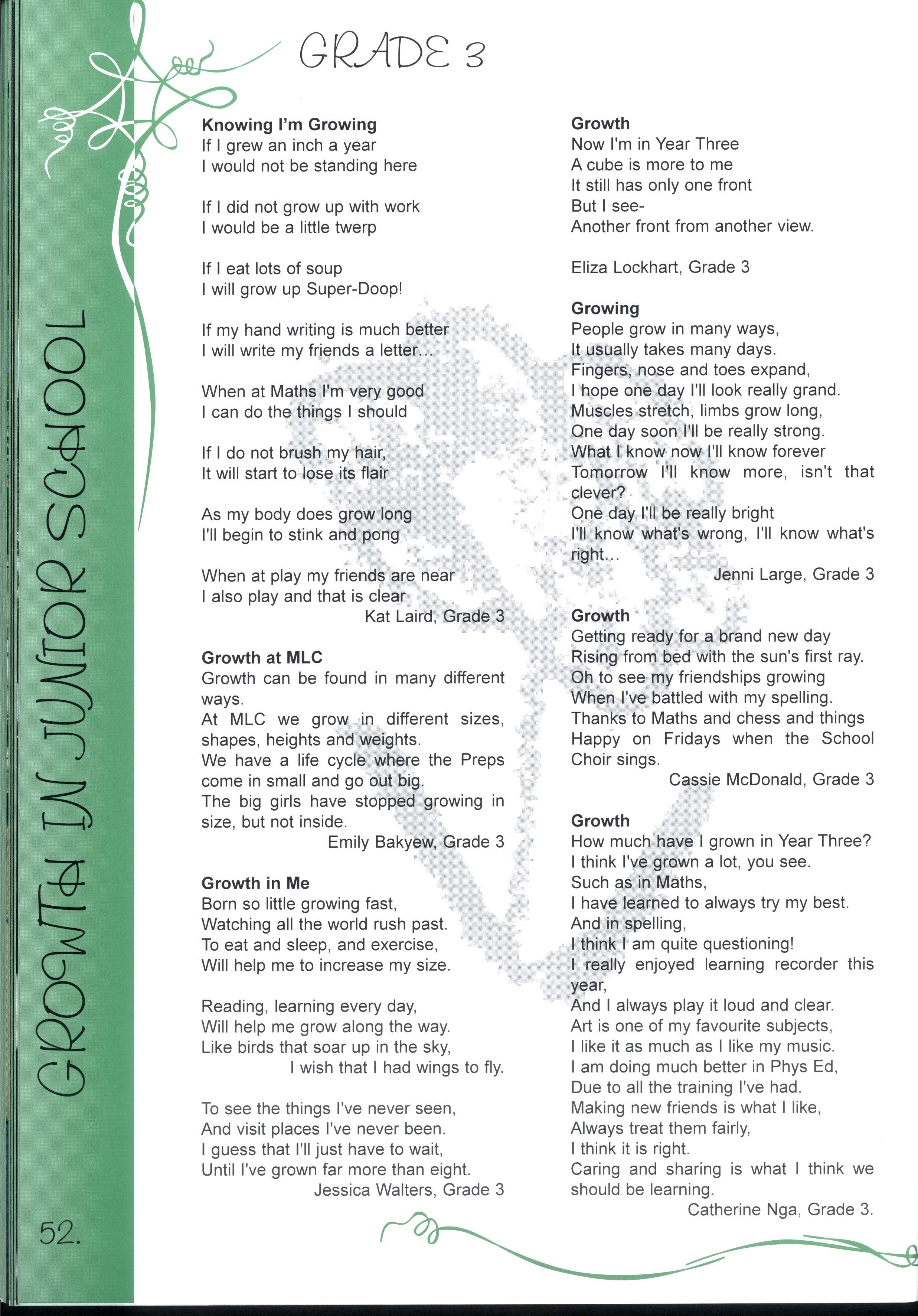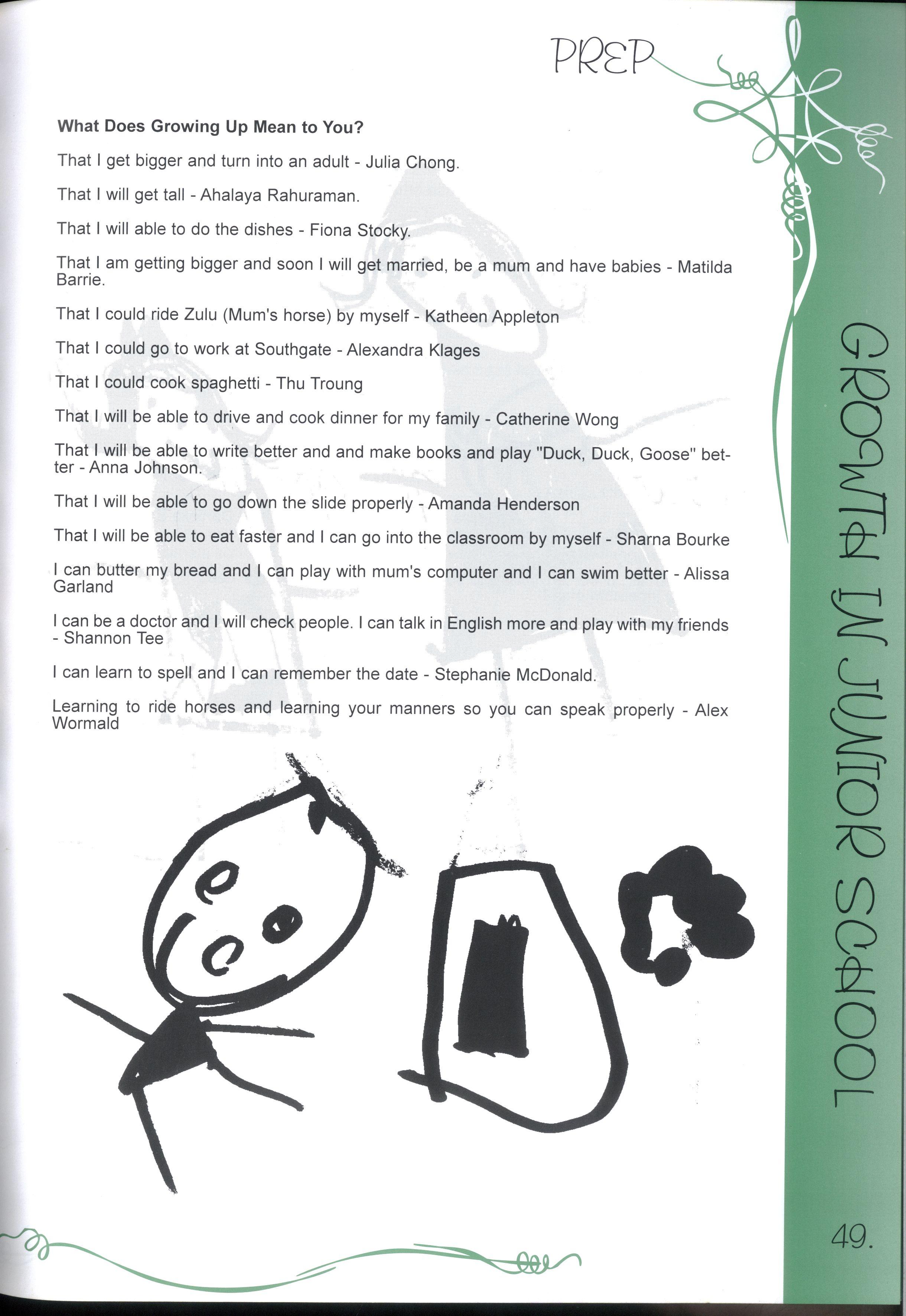 Growth means getting better or stronger at something whether it be getting taller or becoming a better person.- Rebecca Bartlett, Year 11