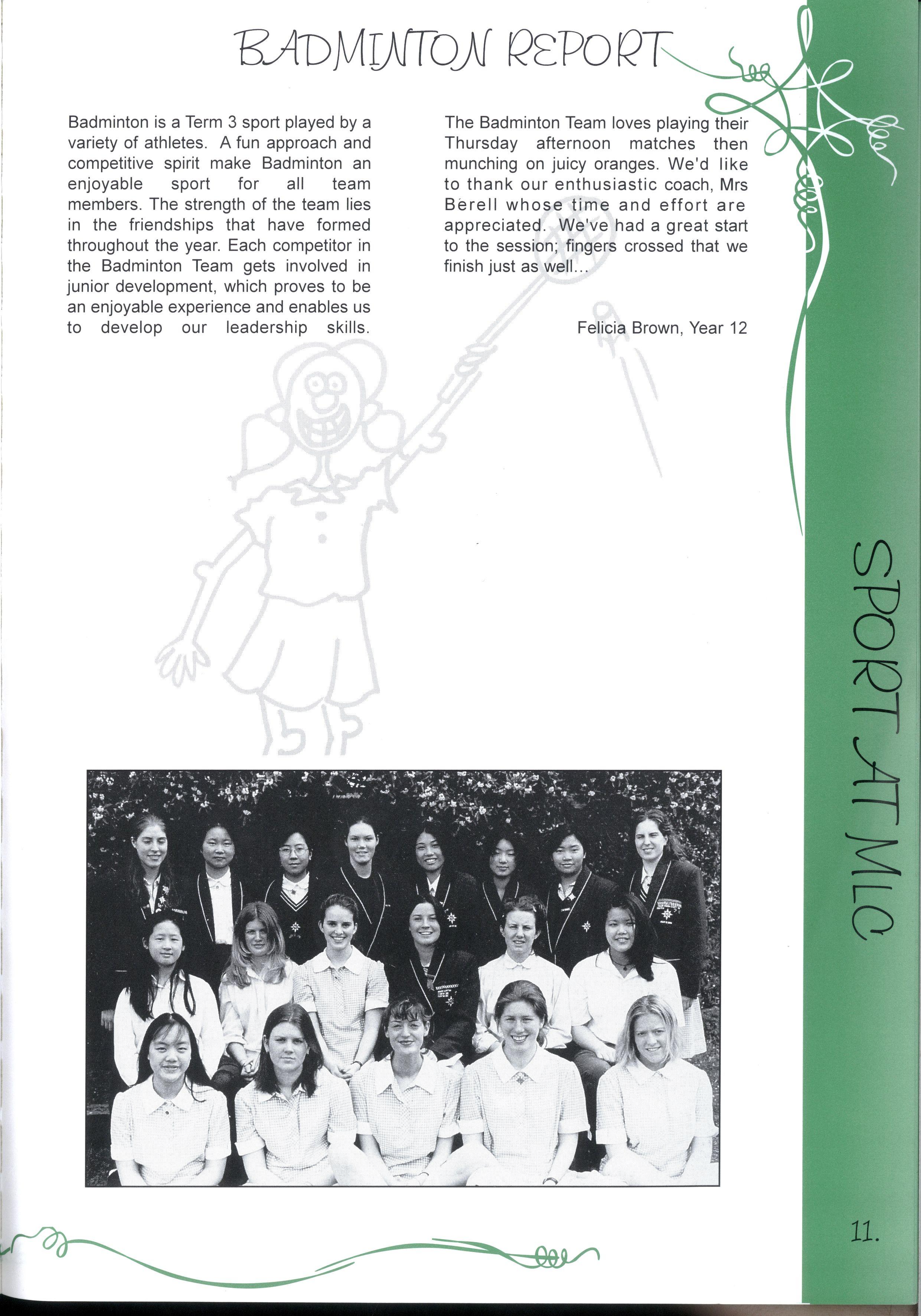 Badminton is a Term 3 sport played by a variety of athletes A fun approach and competitive spirit make Badminton an enjoyable sport for all team members The strength of the team lies in the friendships that have formed throughout the year Each competitor in the Badminton Team gets involved in junior development, which proves to be an enjoyable experience and enables us to develop our leadership skills