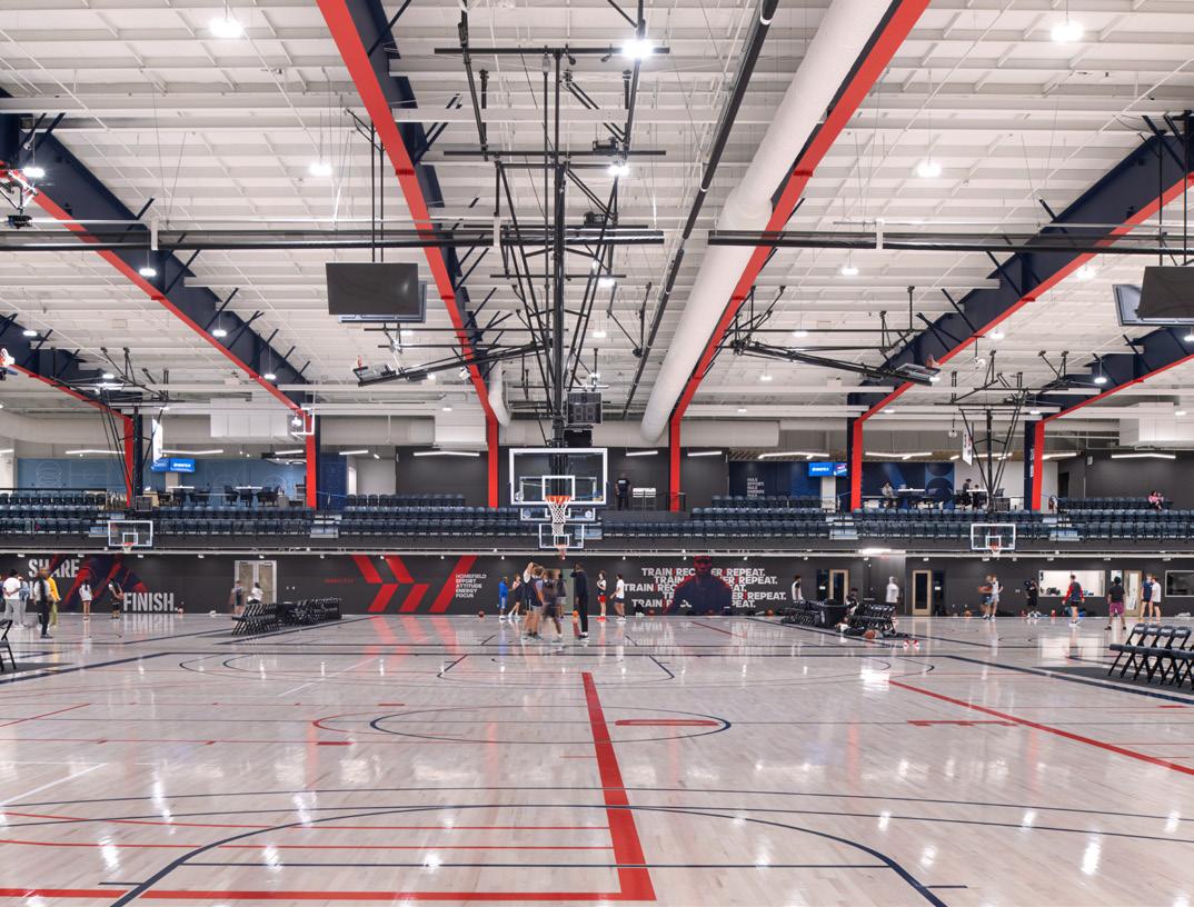 Inside, a 4K halo scoreboard with 80M+ pixels anchors a fan-first experience, alongside 640 restrooms, cashier-less concessions, and smart crowd flow systems. Outside, an 80,000 SF plaza and five full courts drive year-round community use.