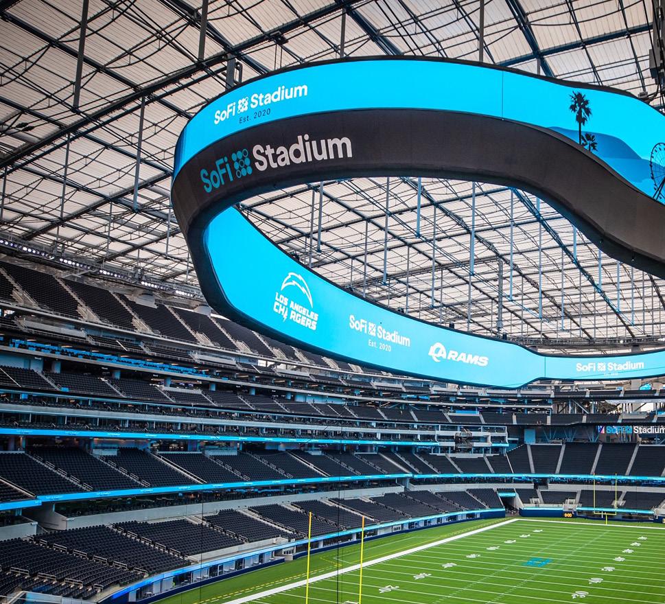 The world’s first 360° dual-sided 4K HDR videoboard—The Oculus—suspends from the roof and measures 120 yards long. It redefines the in-stadium viewing experience and is viewable from every seat.