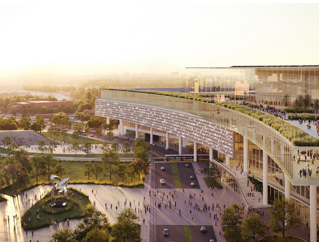 Roof Canopy: A translucent ETFE canopy—spanning 1.125M sq. ft.