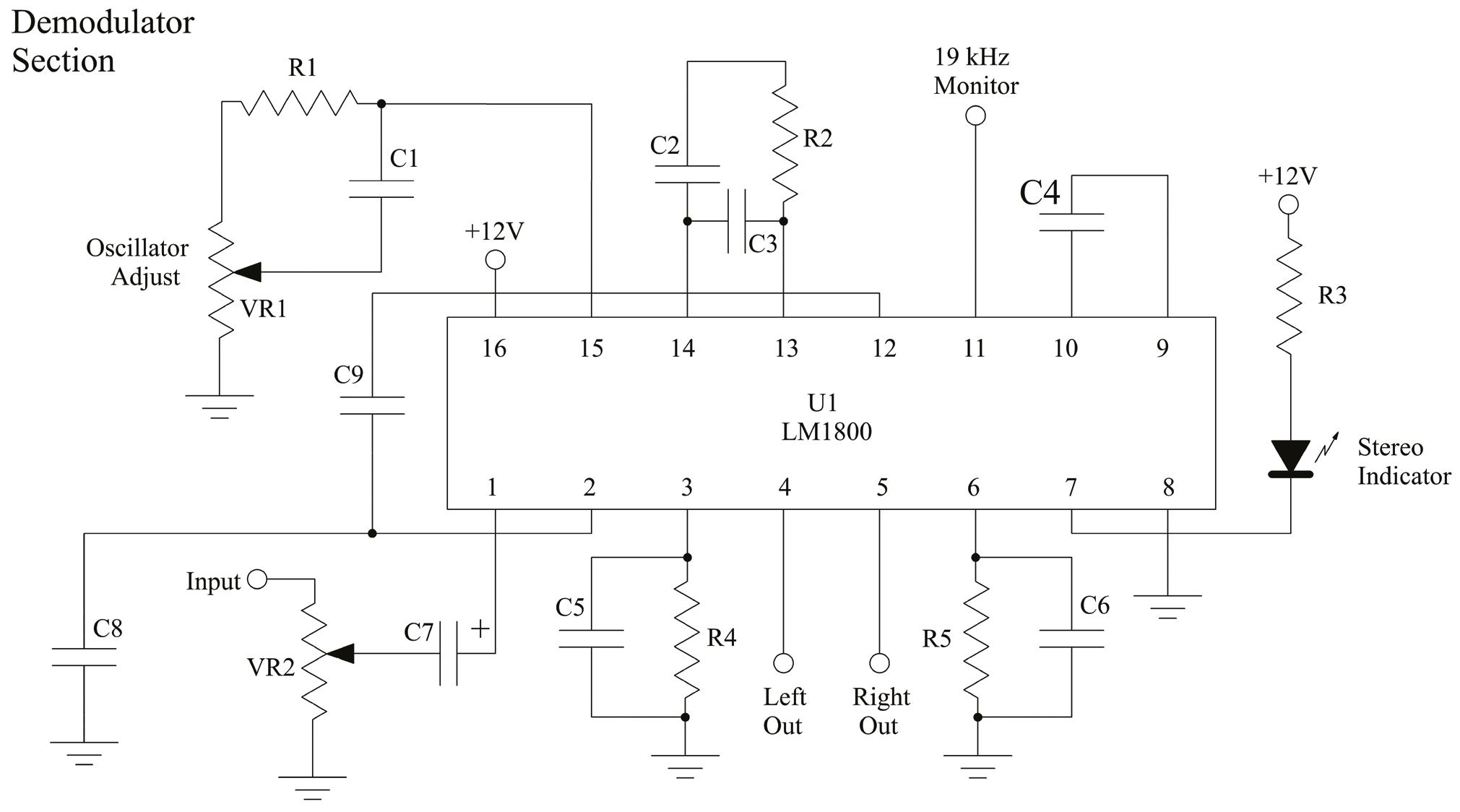 Our motivation for using the classic LM-1800 is its unfussy, non-critical, no unique coil or transformer concept. With typical >40 dB left and right separation and workable rejection of any SCAs present, the LM-1800 is more than adequate for the task.