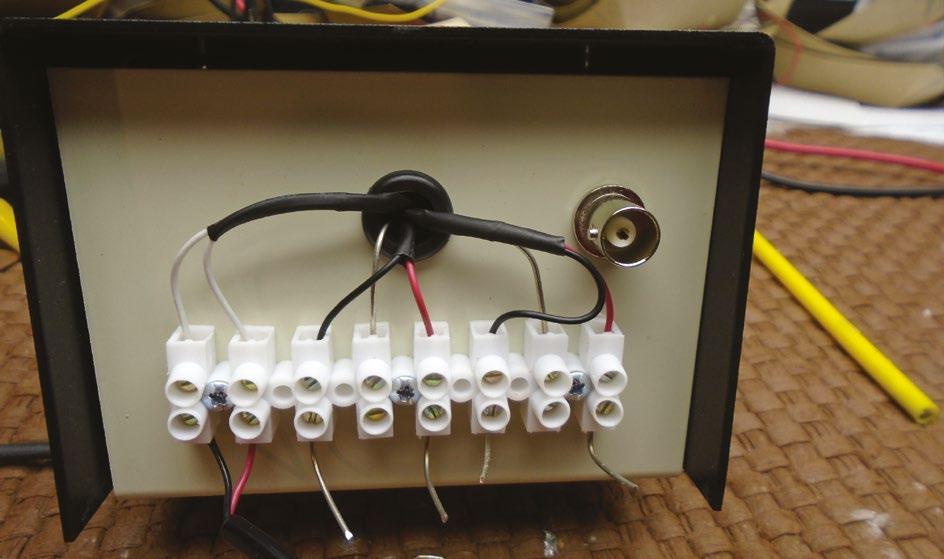 The European-style terminal strip for the wall wart AC power in and left/right out was per the request of the user in Juticalpa, Honduras. The composite BNC input matched the output(s) on the STL receiver.