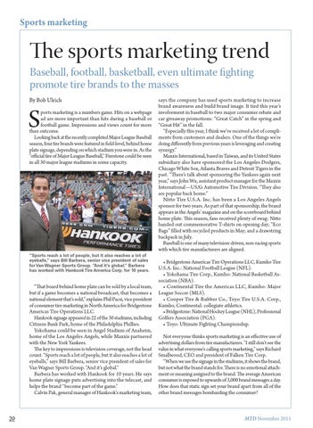 The sports marketing trend Baseball, football, basketball, even ultimate fighting promote tire brands to the masses By Bob Ulrich
