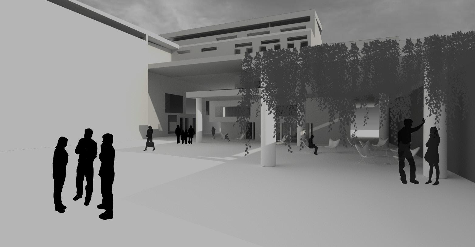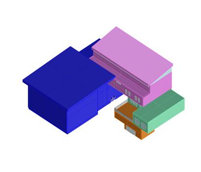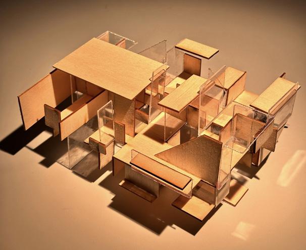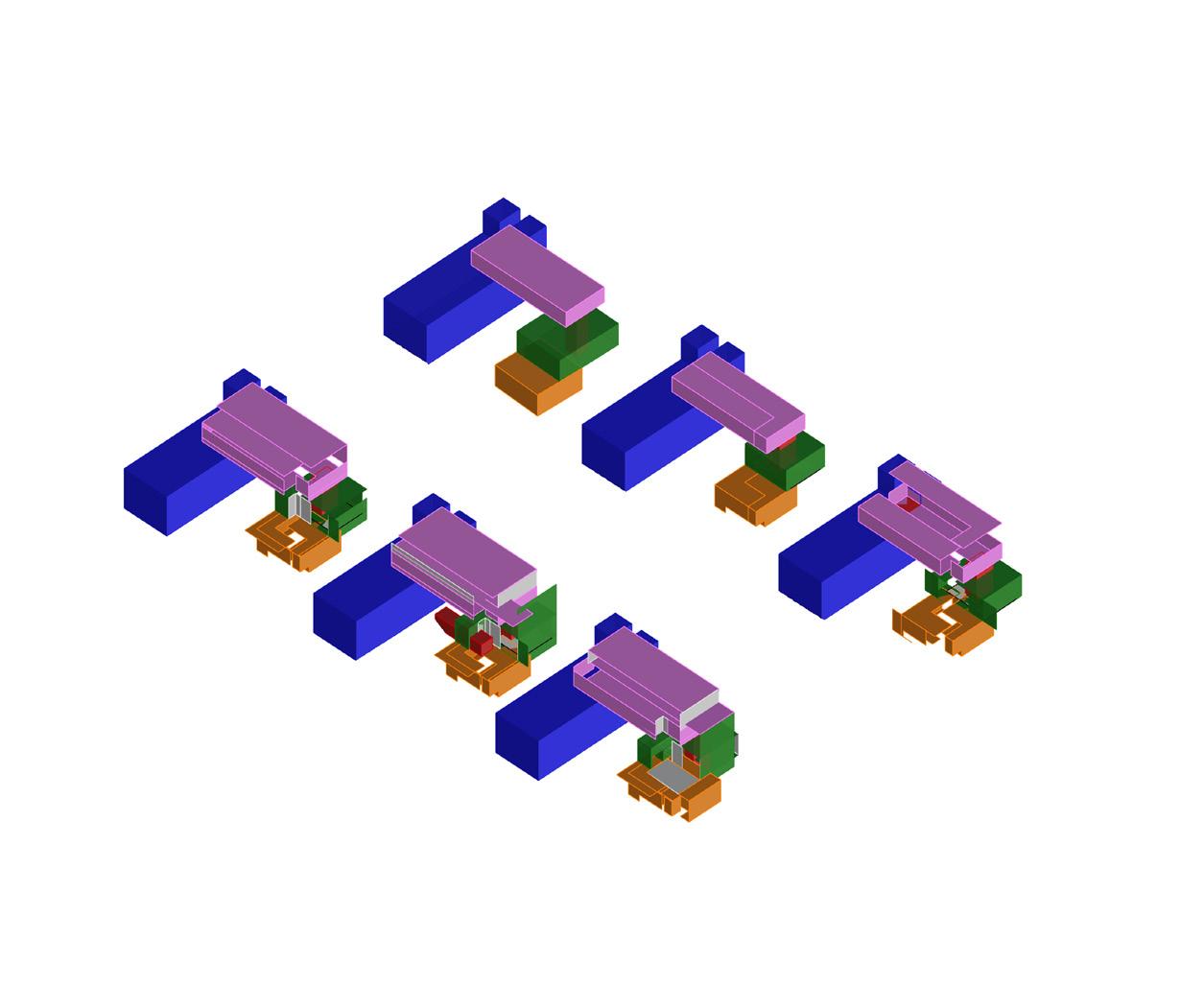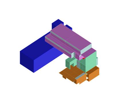 In my concept, I first stacked all spaces on top of each other then I rotated and moved around a few spaces to create a ribbon modeling technique. Also, I got the inspiration from the collage that all spaces are connected and next to each other.