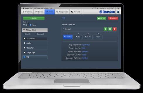 assignable conferences with a simultaneous dual listen option. It also includes two assignable function buttons that can be configured via a user profile for functions like stage announce, call, or trigger of contact closures.