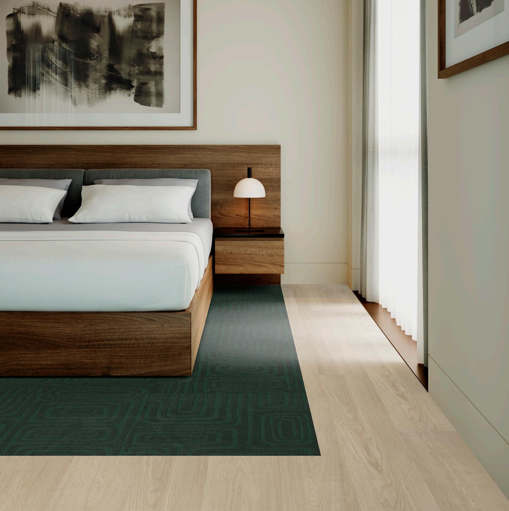 GUSTAV (CARPET TILE 5T629) IN GARDEN (28369) AND PIVOT (PVC-FREE RESILIENT 4499V) IN MINDSET (00115)