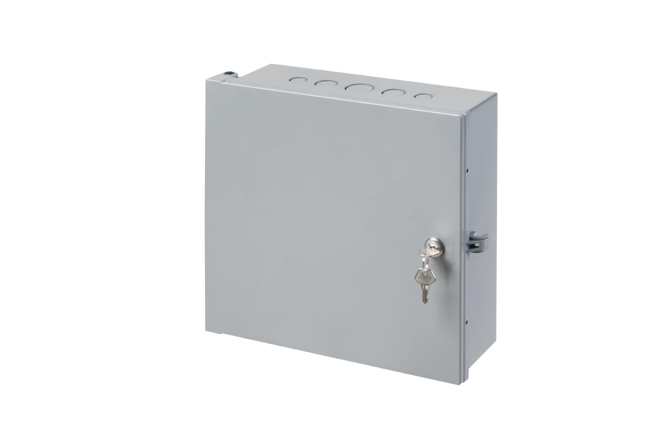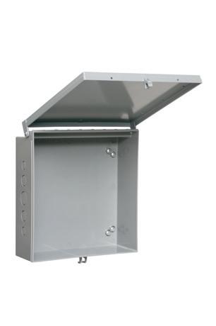 The back plate allows components to be preinstalled or installed at the job site. The EB12126 (12x12x6) can be mounted with optional exterior brackets after the components are installed, or from inside the enclosure box. Arlington’s Enclosure Boxes are lockable via a knockout on the front of the box for a cam lock (EBL1) or a latch that holds a padlock.