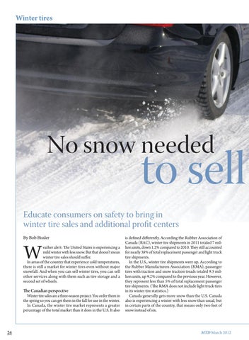 Educate consumers on safety to bring in winter tire sales and additional profit centers By Bob Bissler