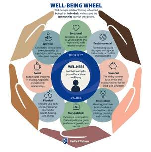 We can think of wellbeing as a wheel with separate spokes and each spoke is critical for the wheel to keep turning. This perspective allows us to see how these “spokes” are interconnected and contribute to the quality of life we live. Learning to build the habit of a regular check in with the well-being wheel into our routines and adjust when necessary, will allow us to thrive while continuing to discover the best version of ourselves.