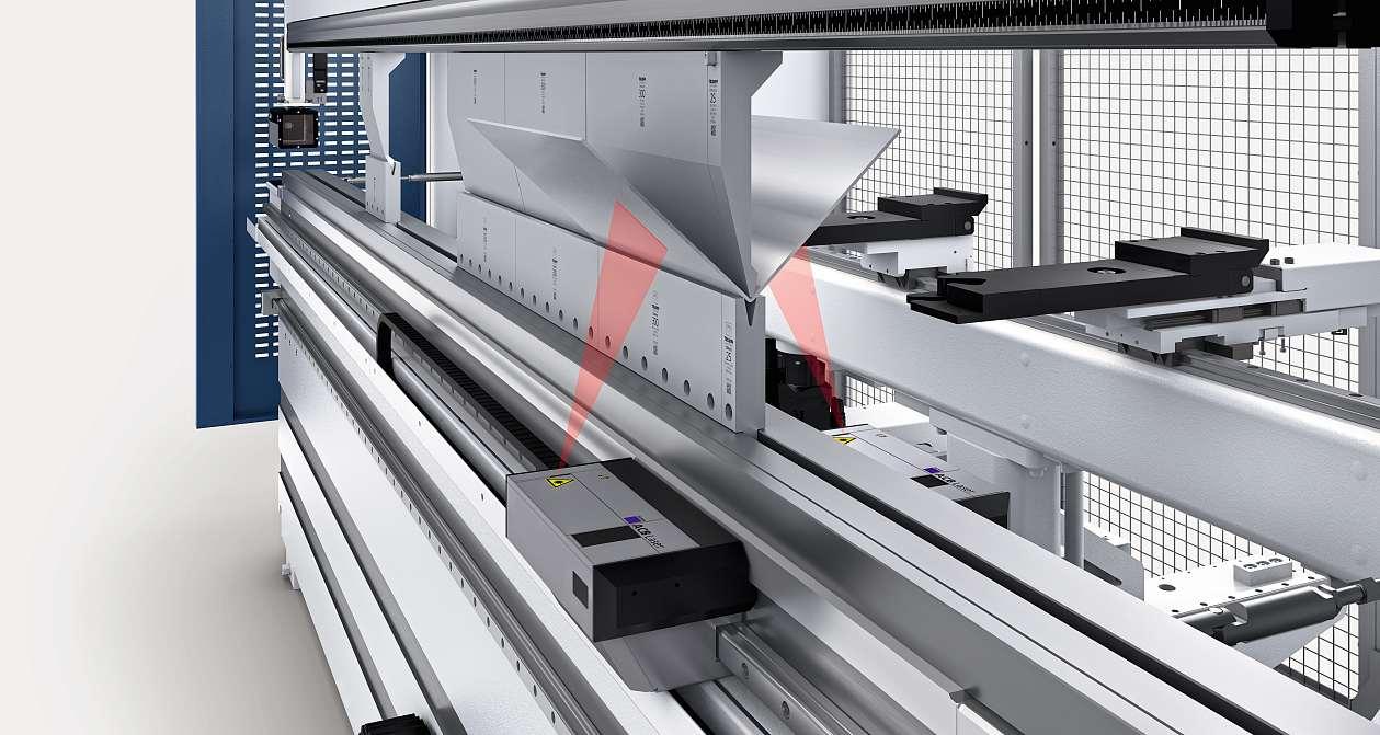 Verschiedene Funktionen garantieren dabei die nötige Qualität – darunter beispielsweise das Winkelmesssystem ACB-Laser, das automatisch für präzise Winkel sorgt.EinLaserprojiziertdafüreineLinieaufdasBlech, eine Kamera detektiert den Winkel. Hierfür werden die vordereunddiehintereMesseinheitautomatischandie richtige Stelle gefahren. Vier verschiedene Messmethoden erhöhen dabei den Einsatzbereich und die Produktivität. Die Bauteile erhalten durchgehend präzise Winkel mit einer Genauigkeit von ± 0,3 Grad bei einem großen Messbereich von 30 bis 150 Grad. Bereits das erste Teil wird so zum Gutteil, und das unabhängig vom Material.