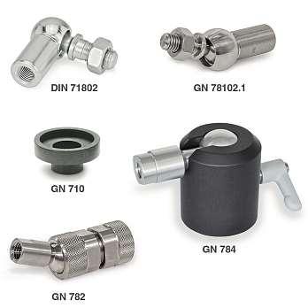 Überall dort, wo Kräfte präzise übertragen und zugleich etwa Montageungenauigkeiten ausgeglichen werden müssen, sind Kugelgelenke gefragt. Jetzt ergänzt Ganter das Programm um die neuen Axialgelenke GN 71802.1,heißtes.TreffenAchsennämlichim rechtenWinkelaufeinander,lassensichdiese per Kugelzapfen und -pfanne als Kugelgelenk verbinden, so Ganter Die Reihe der DIN 71802 sei so ausgelegt, dass sie Abweichungen vom 90-Grad-Winkel um bis zu 18 Grad toleriere. Die Verbindung von Kugelzapfen und -pfanne sichert der integrierte, manuell lösbare Sprengring Für höhere Betriebssicherheit stehen Formen mit SicherungsbügelzurVerfügung,derdenKugelsitz formschlüssig gegen Demontage sichert. Neu ist auch der Typ GN 71802.1. www.ganternorm.com