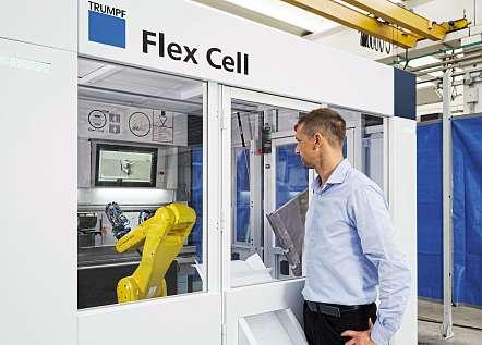 Die Biegeautomatisierung Flex Cell verwandelt die manuelle Trubend 7050 in eine schnelle Biegezelle von Trumpf