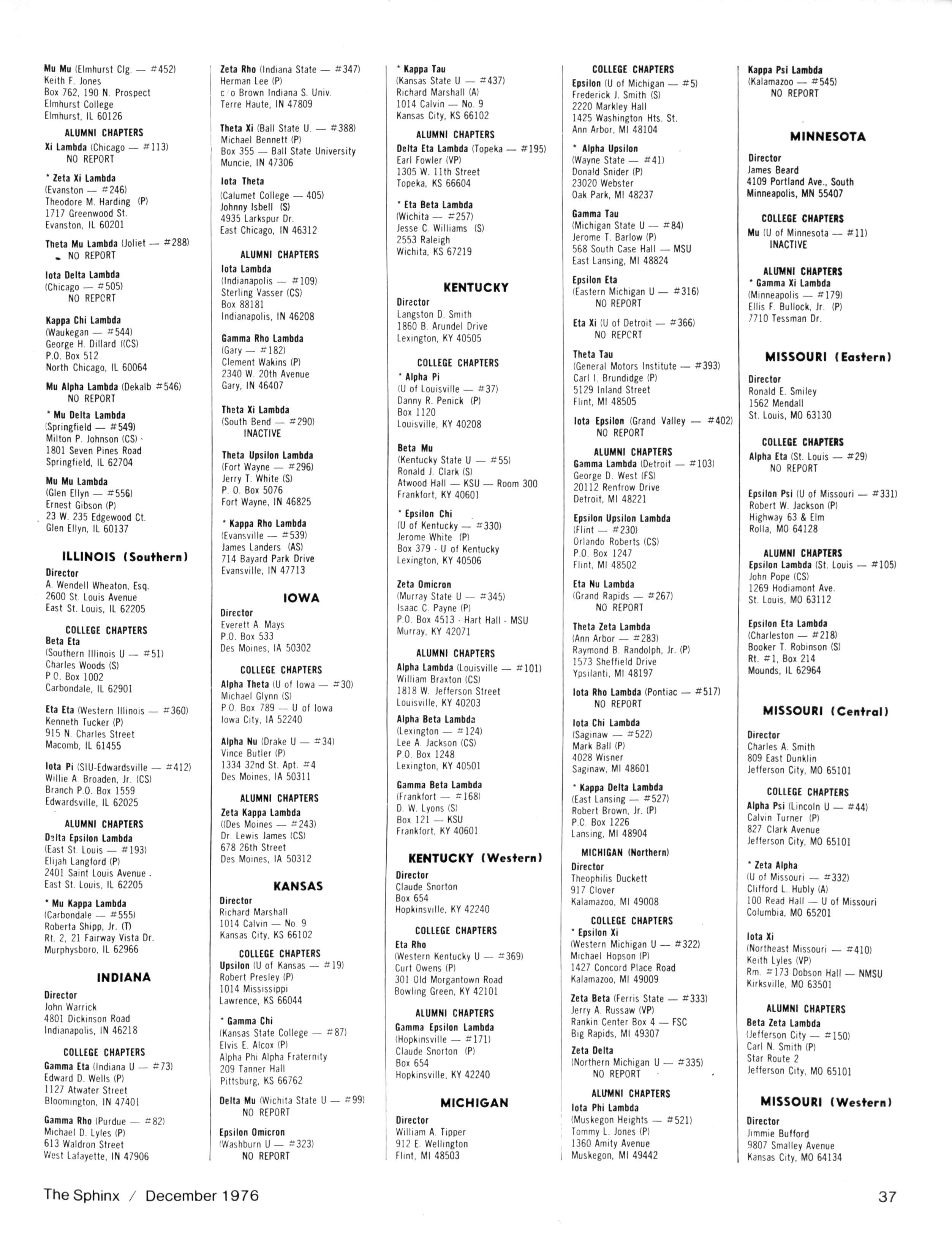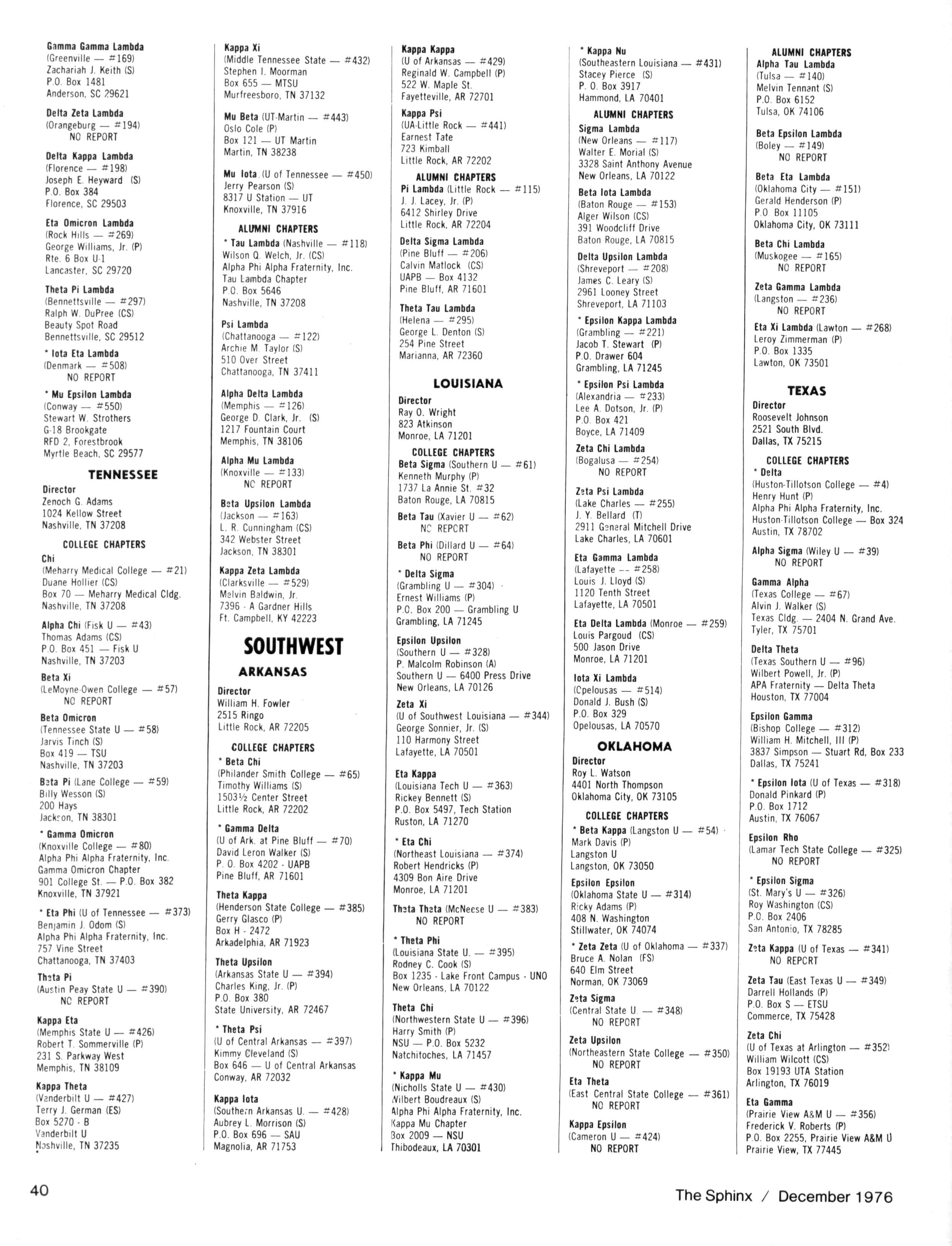 Due to many letters regarding the omission of names in the Alpha Phi Alpha Directory of Membership 19751976, and the omission of certain officer and committee reports from the Minutes of the 70th Anniversary Convention(62ndGeneralConvention),this office will submit the following clarificationsofthetwo incidents: