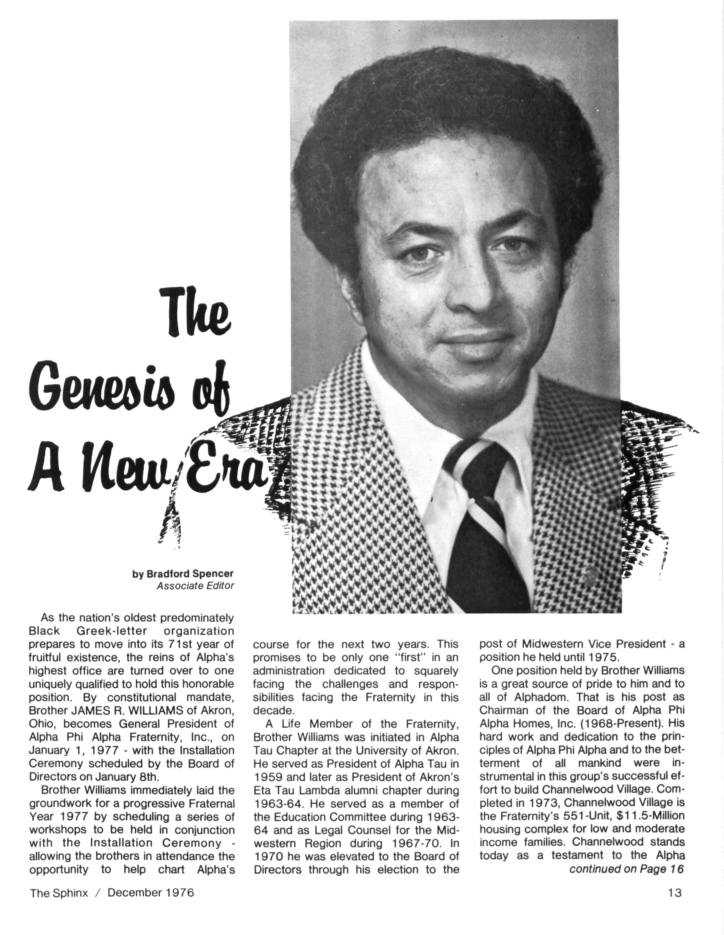 ABOUT THE COVER: BrotherJAMESR.WILLIAMS,The 25th GeneralPresidentofALPHAPHIALPHAFRATERNITY,INC