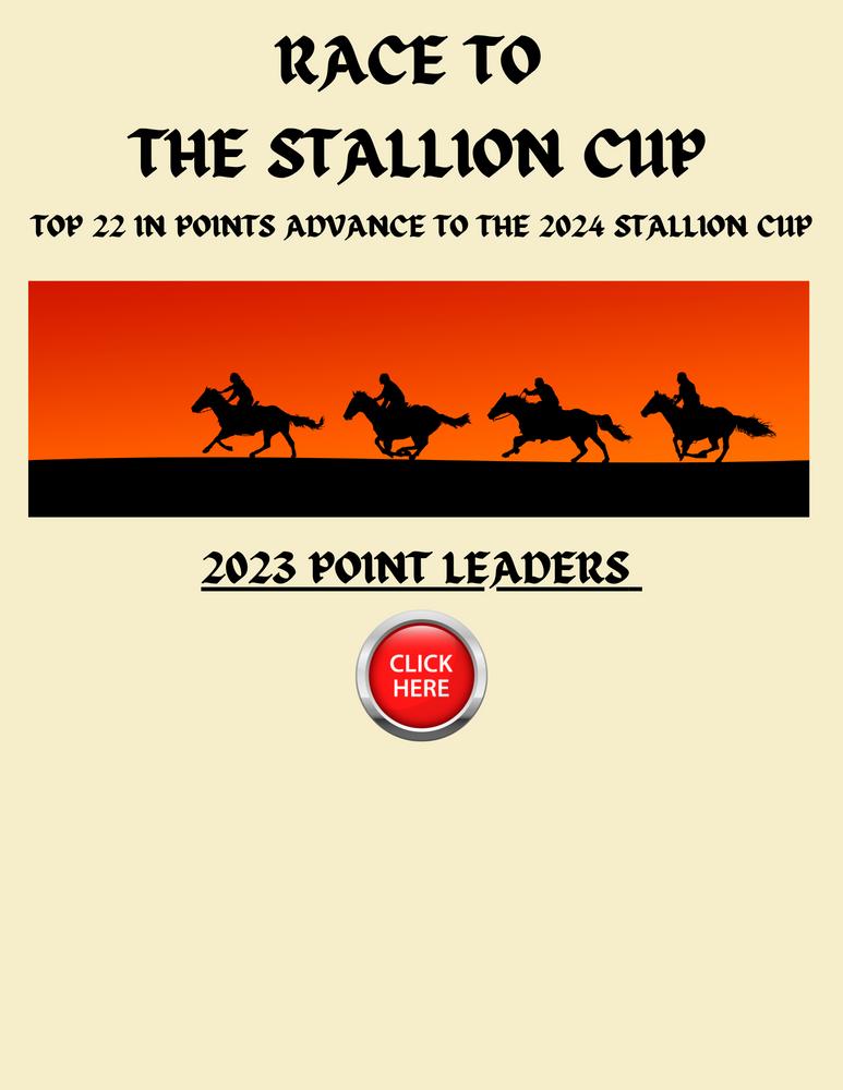 Each month now, we will also be featuring our Top 22 in the Race for the Stallion Cup points. This year's Stallion Cup was a lot of fun and we are already looking forward to next year. It will be interesting to follow along with the updated points all year long to see who makes the field for 2024