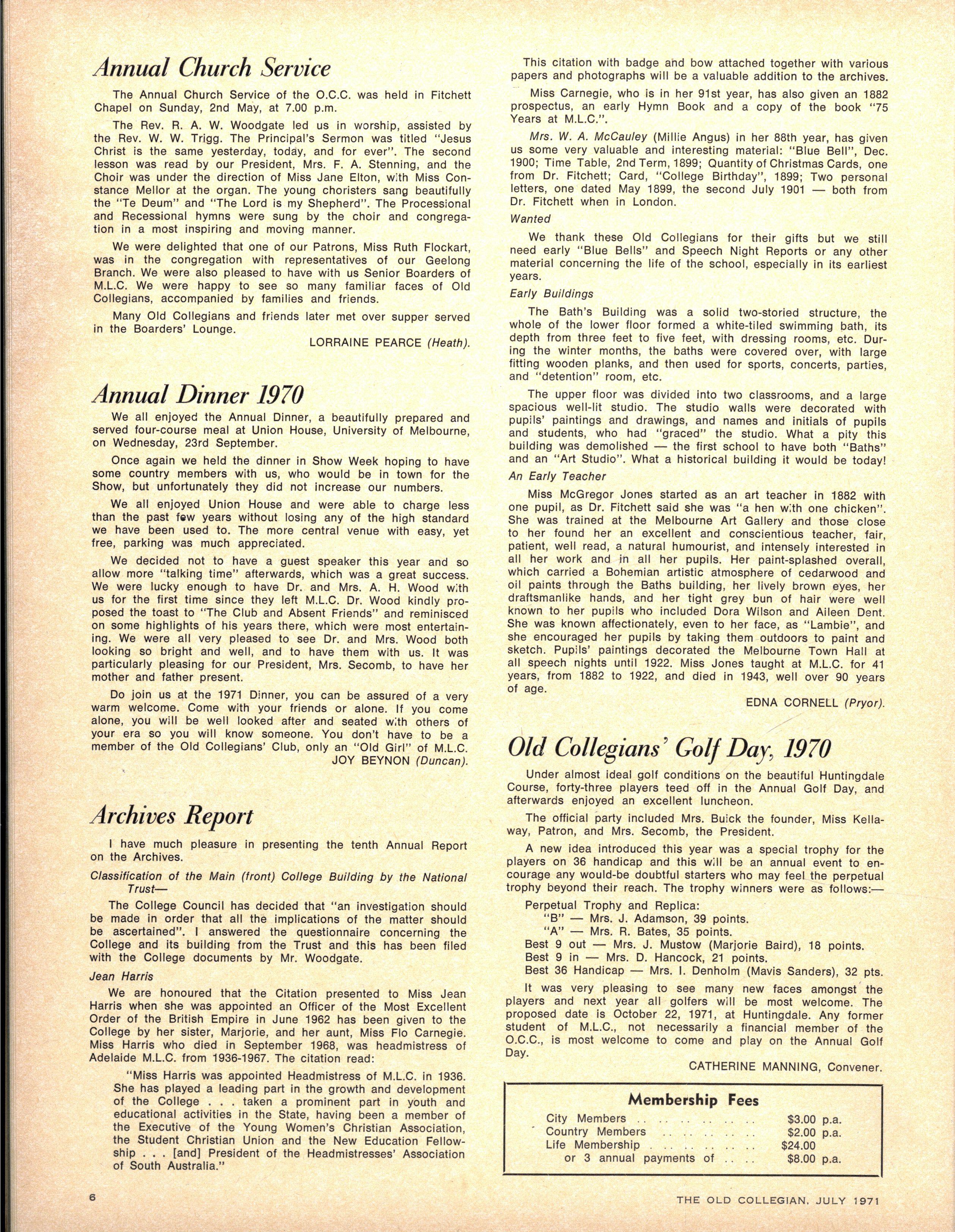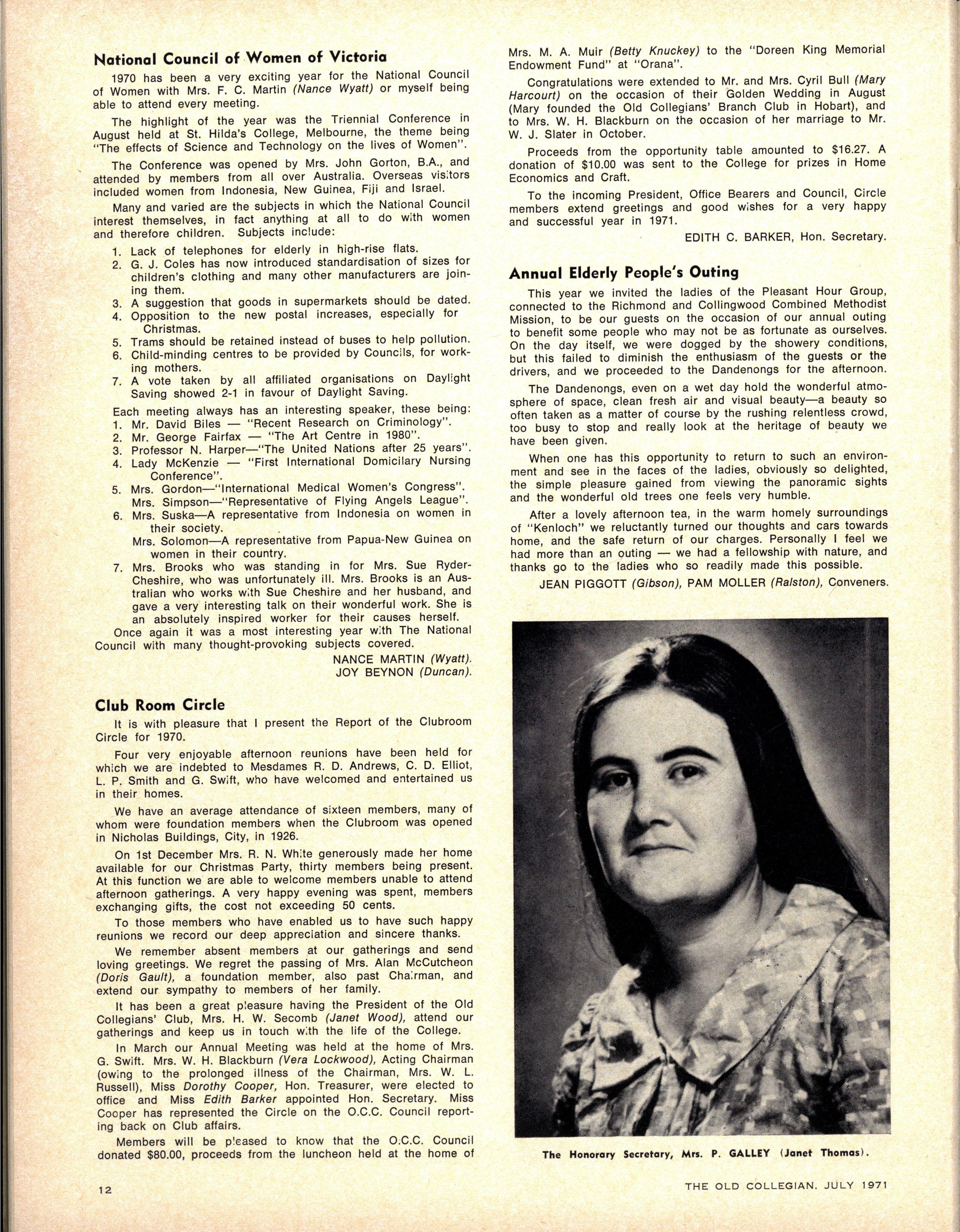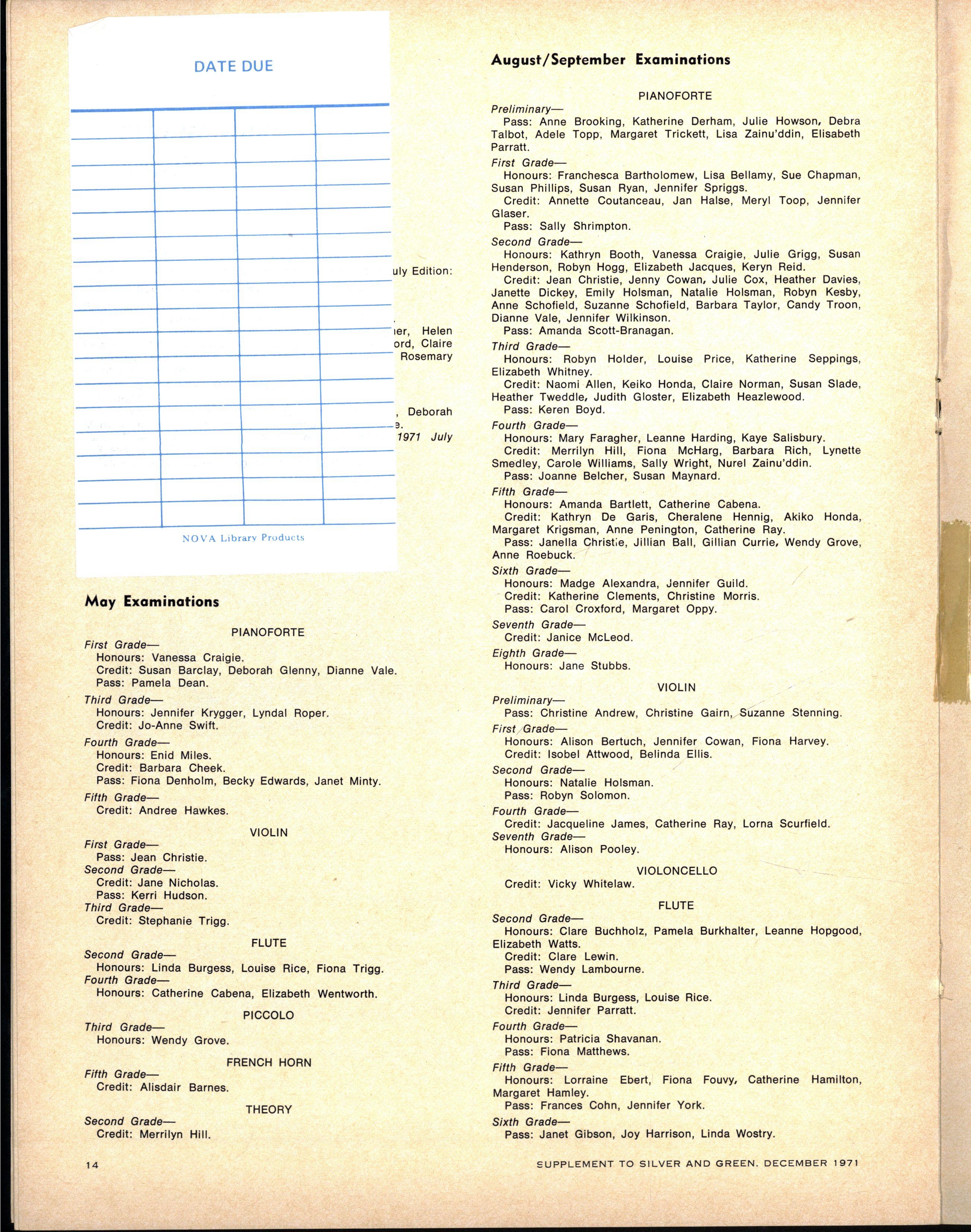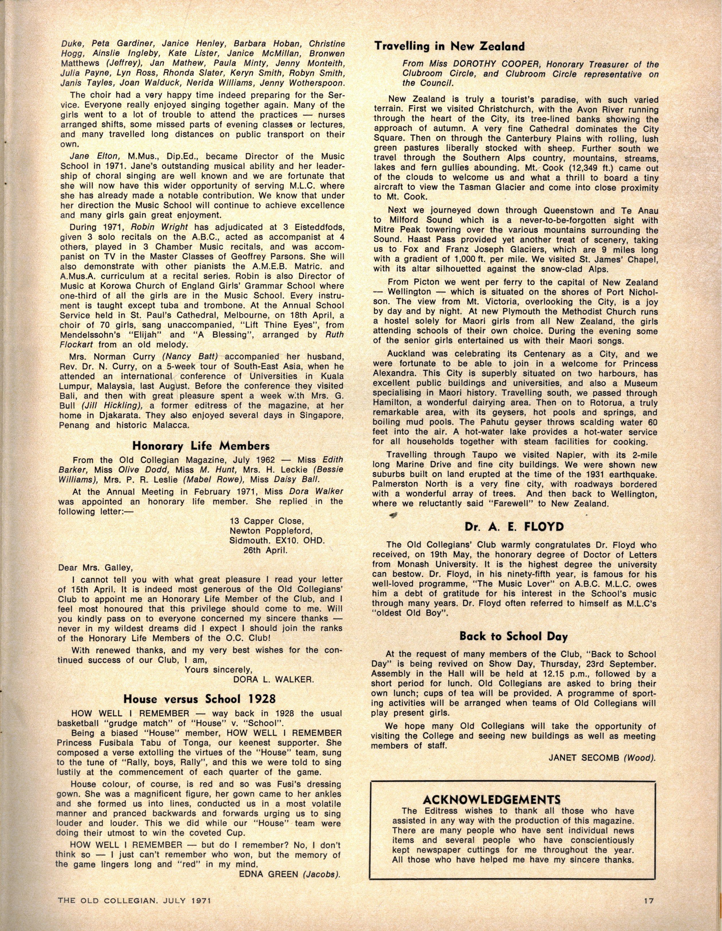 We congratulate Jane Stubbs on her appointment as School Pianist for 1971. Editress.