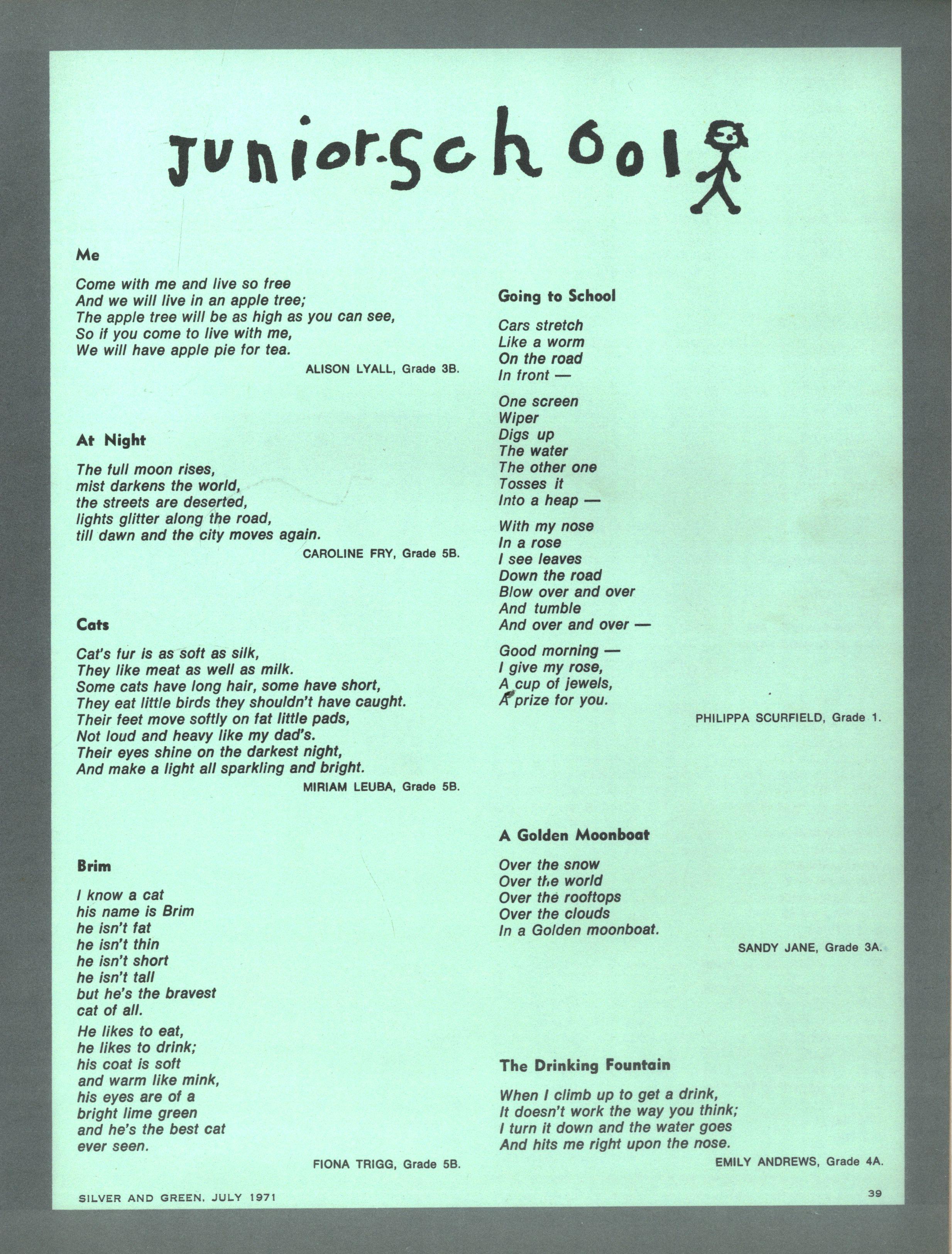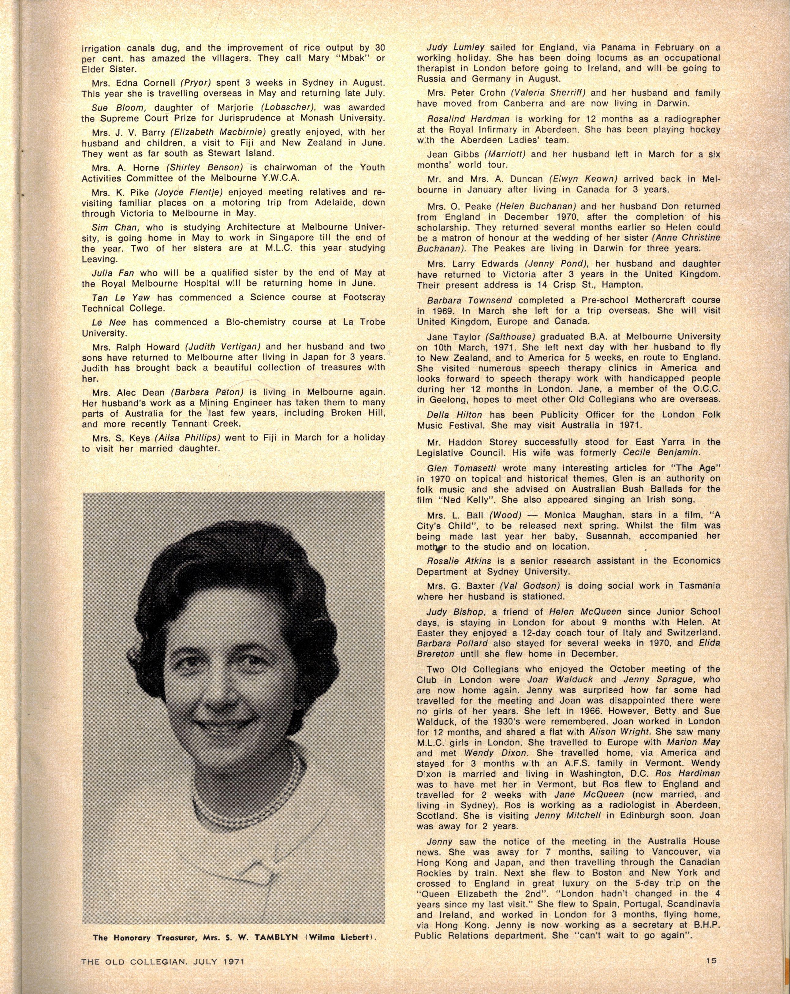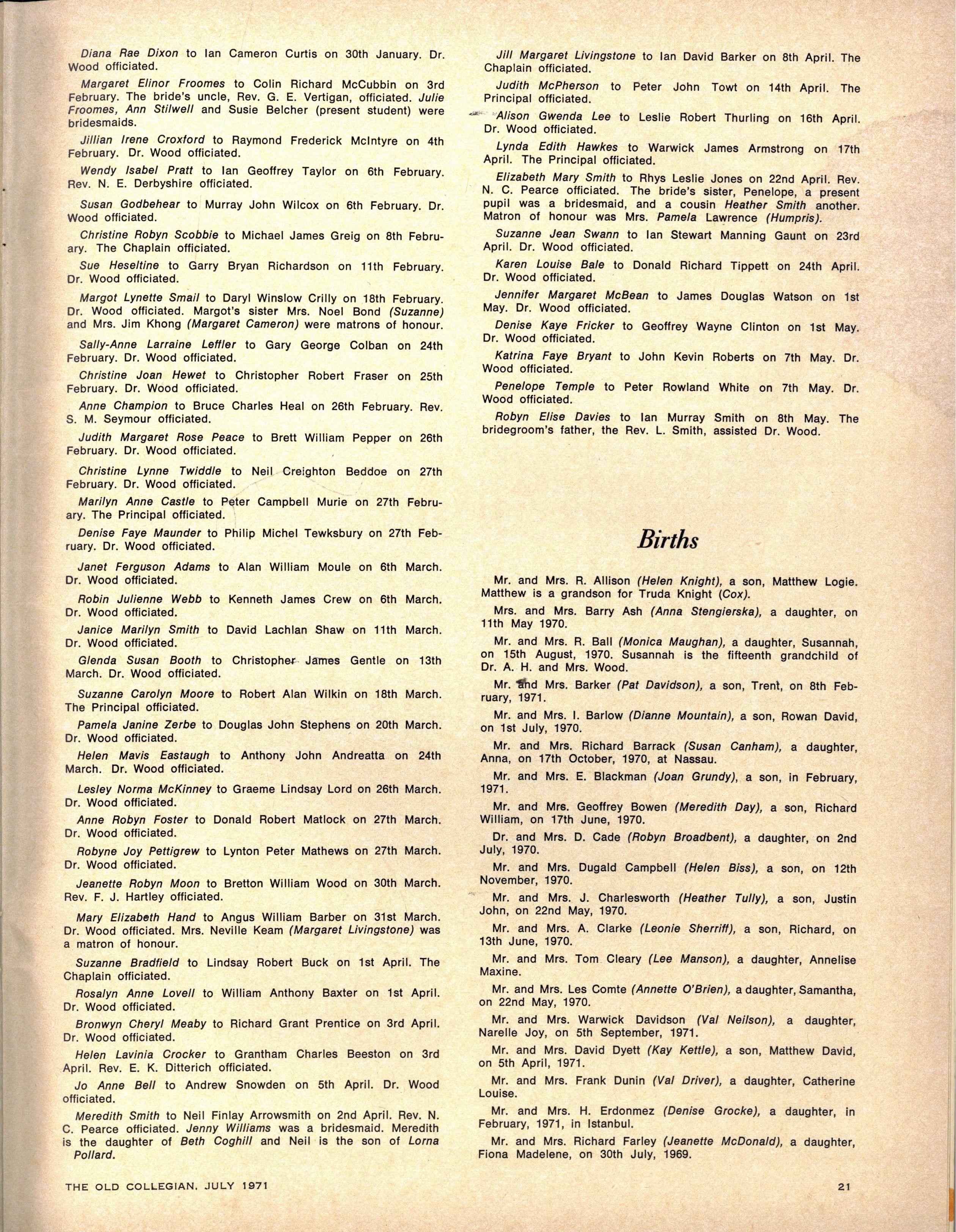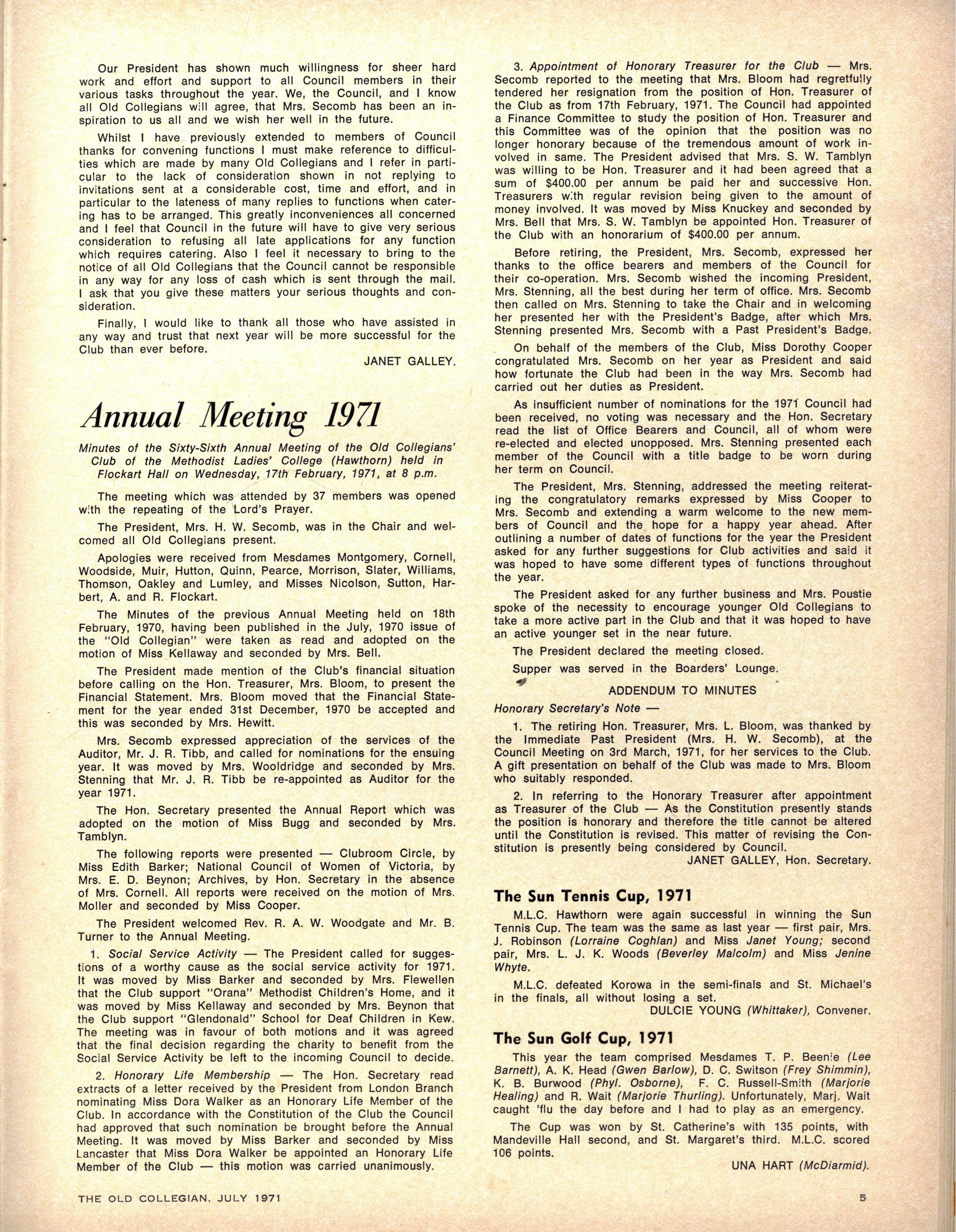 We congratulate Jane Stubbs on her appointment as School Pianist for 1971. Editress.