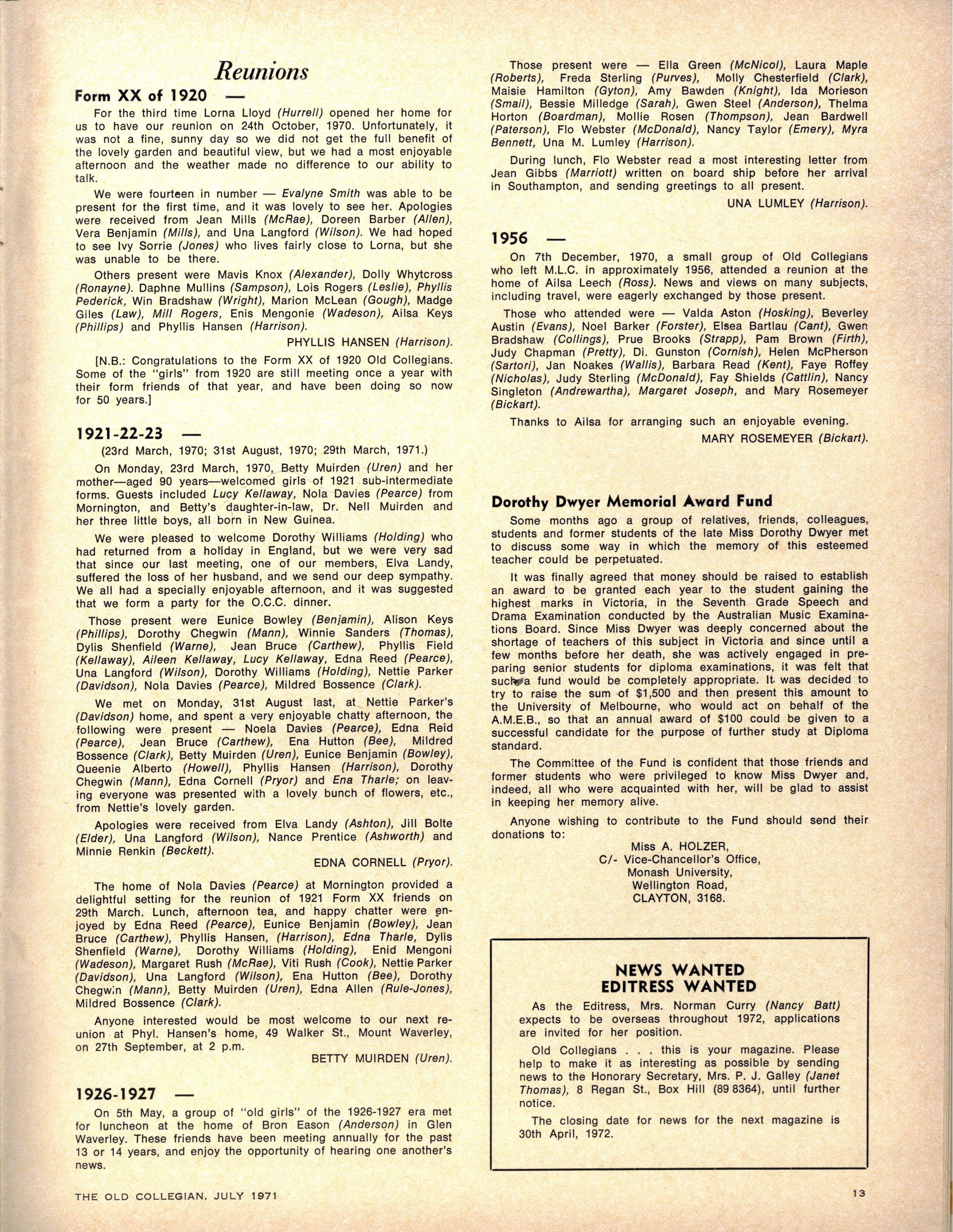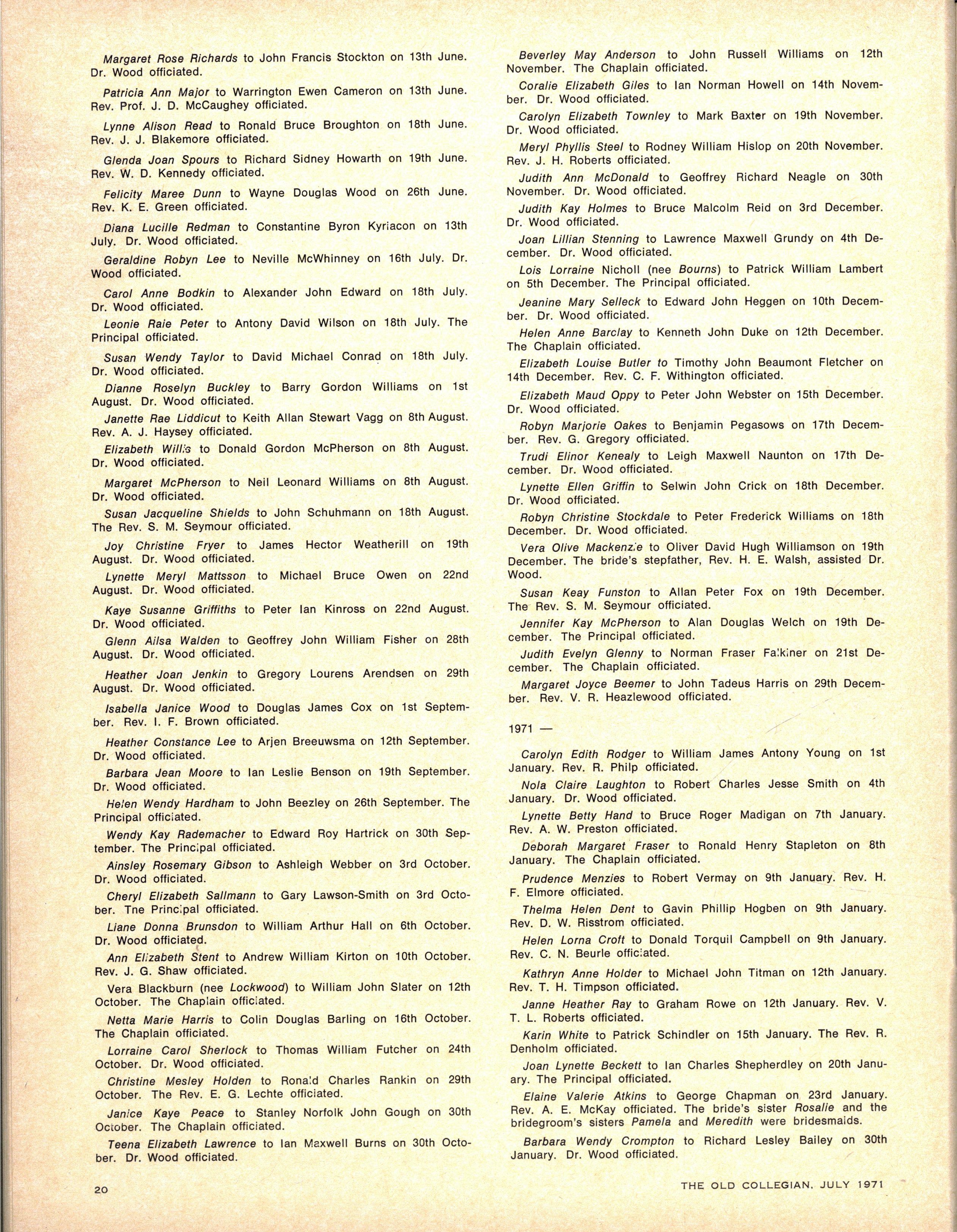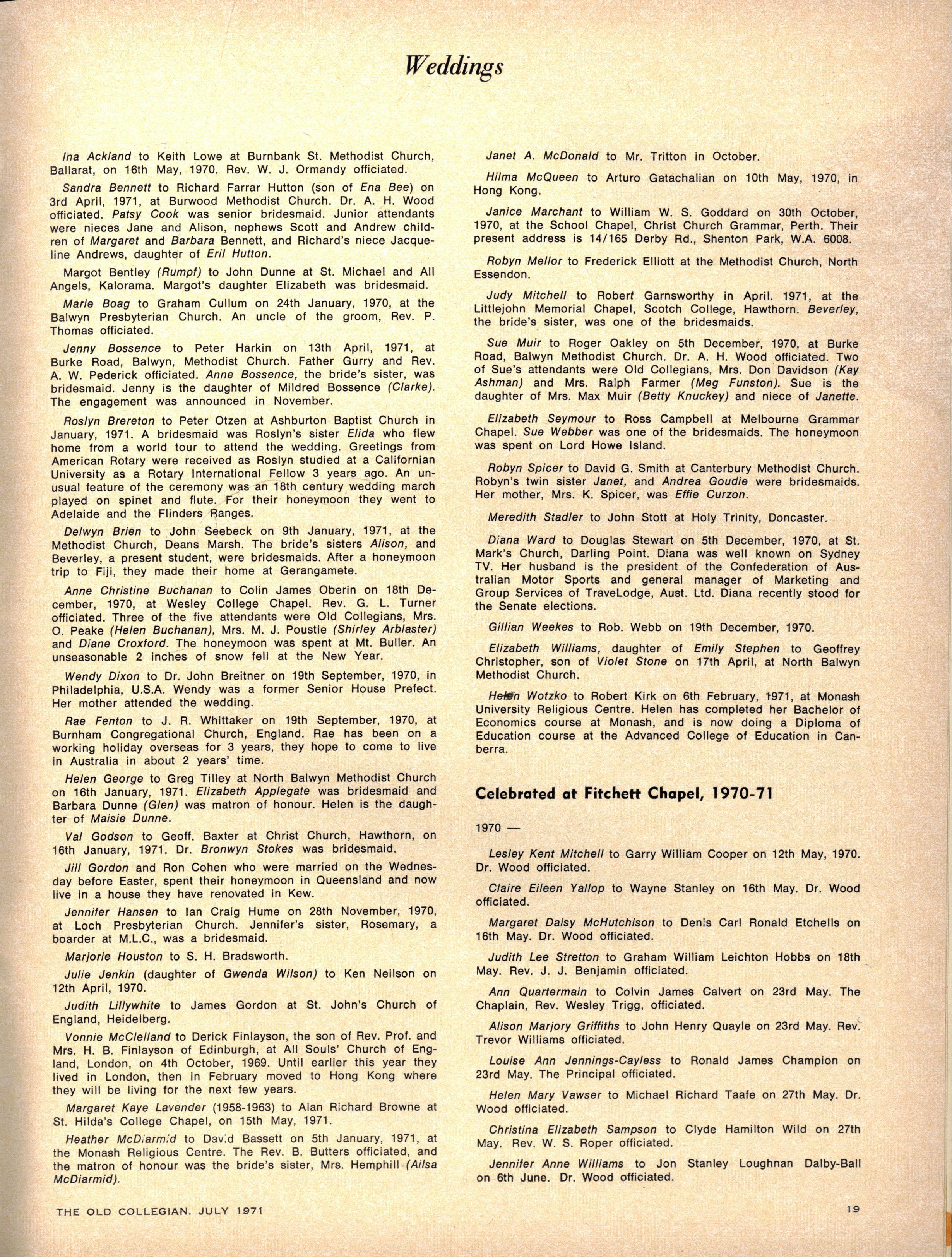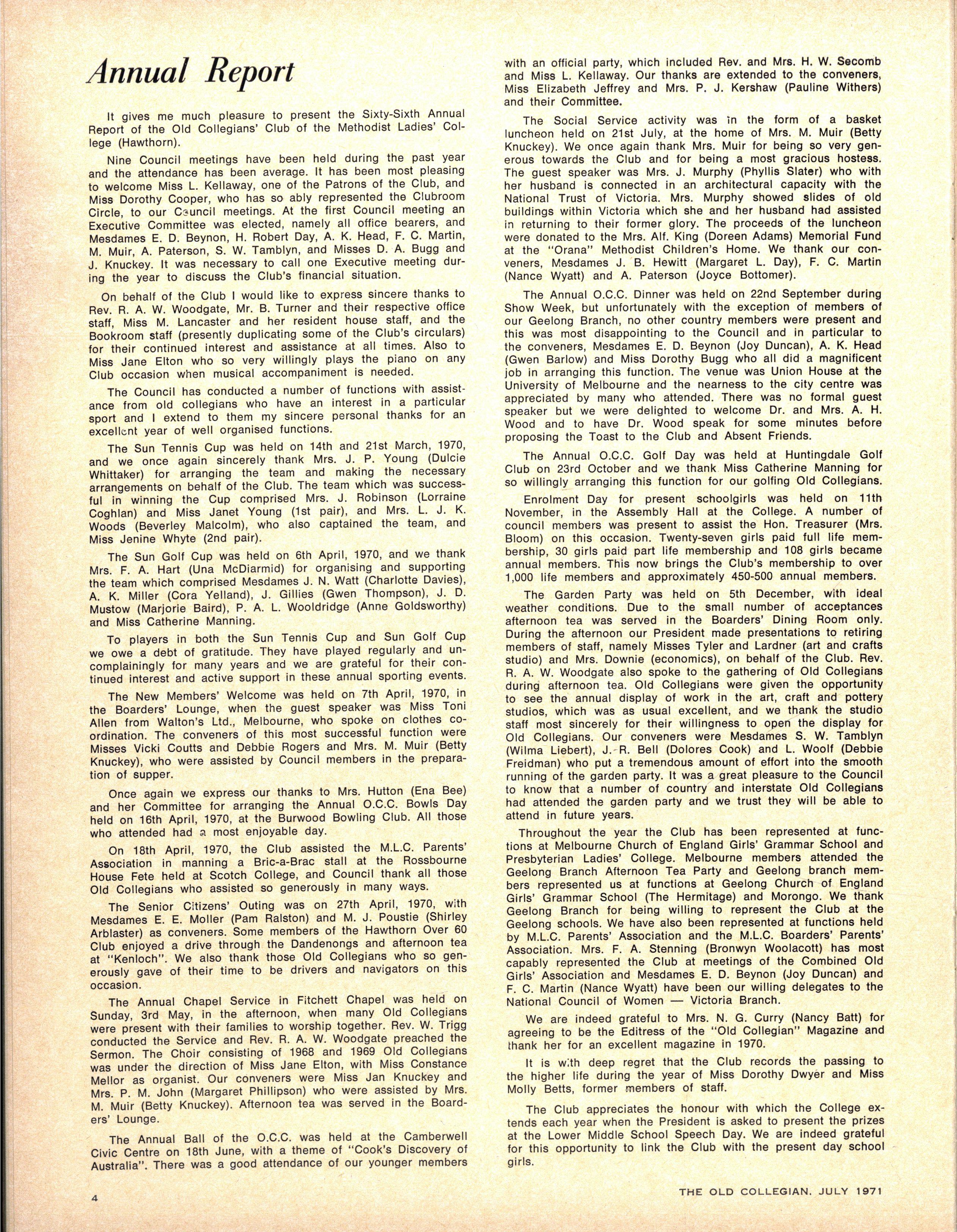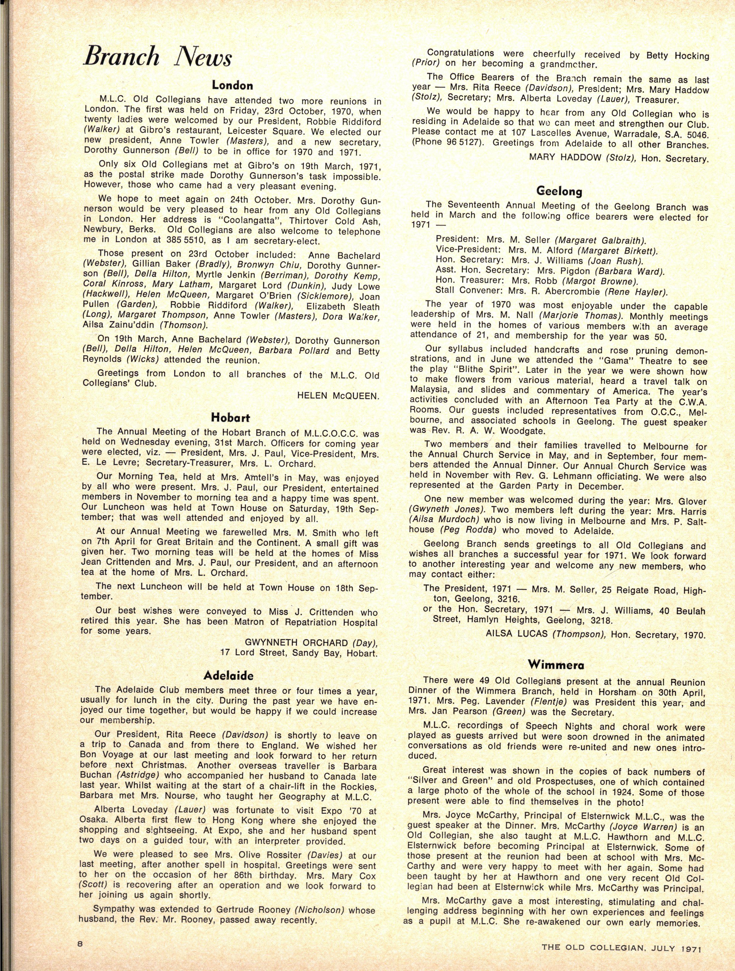 S.C.M EXECUTIVE : Advise r — Th e Rev W Trigg ; Join t Secretarie s — Jenn y Derwent, Bronwy n Ambrose ; Committee — Lis a Adams, Kathry n Clements, Kaye de la Rue, Heather Kenley, Miria m Schache