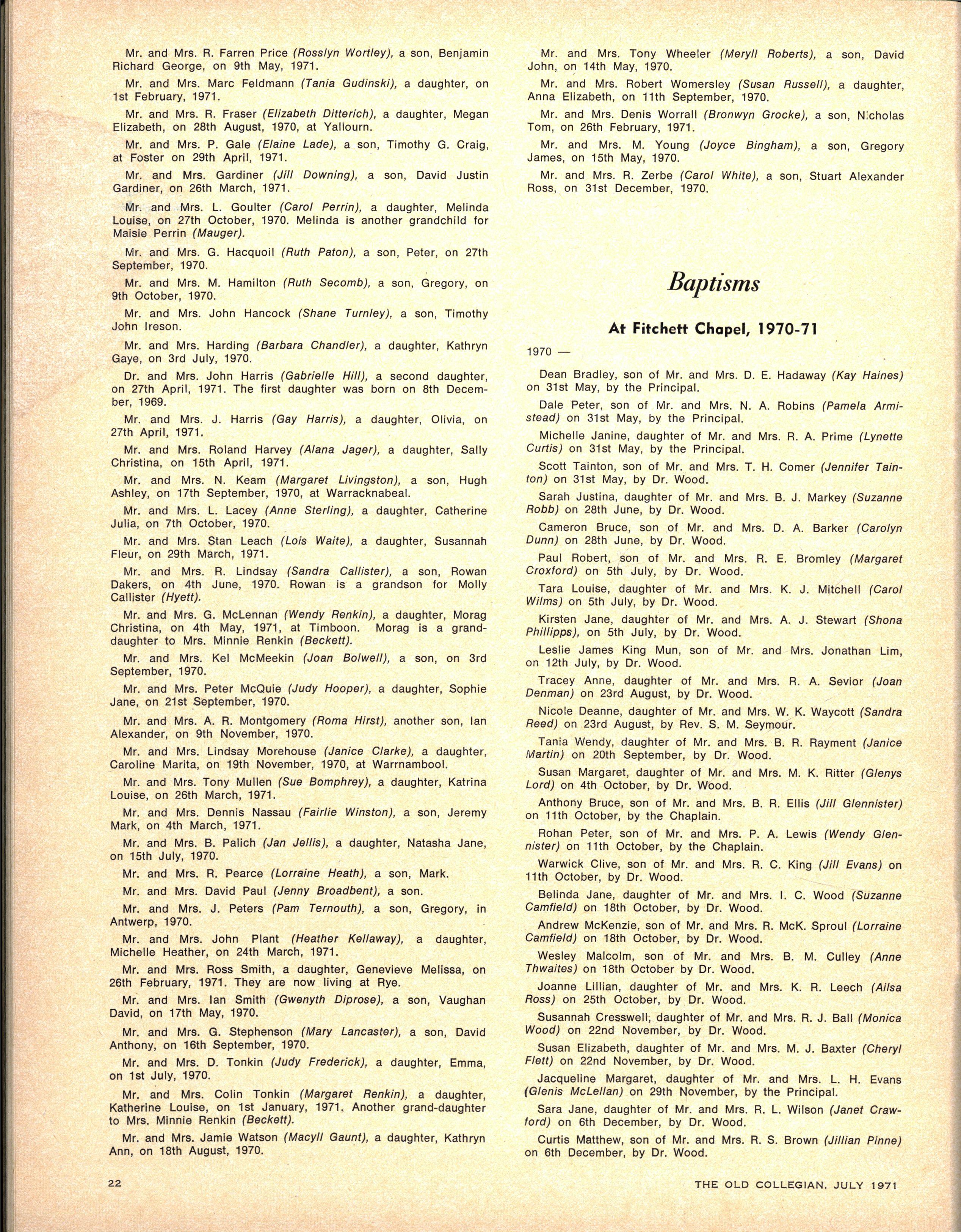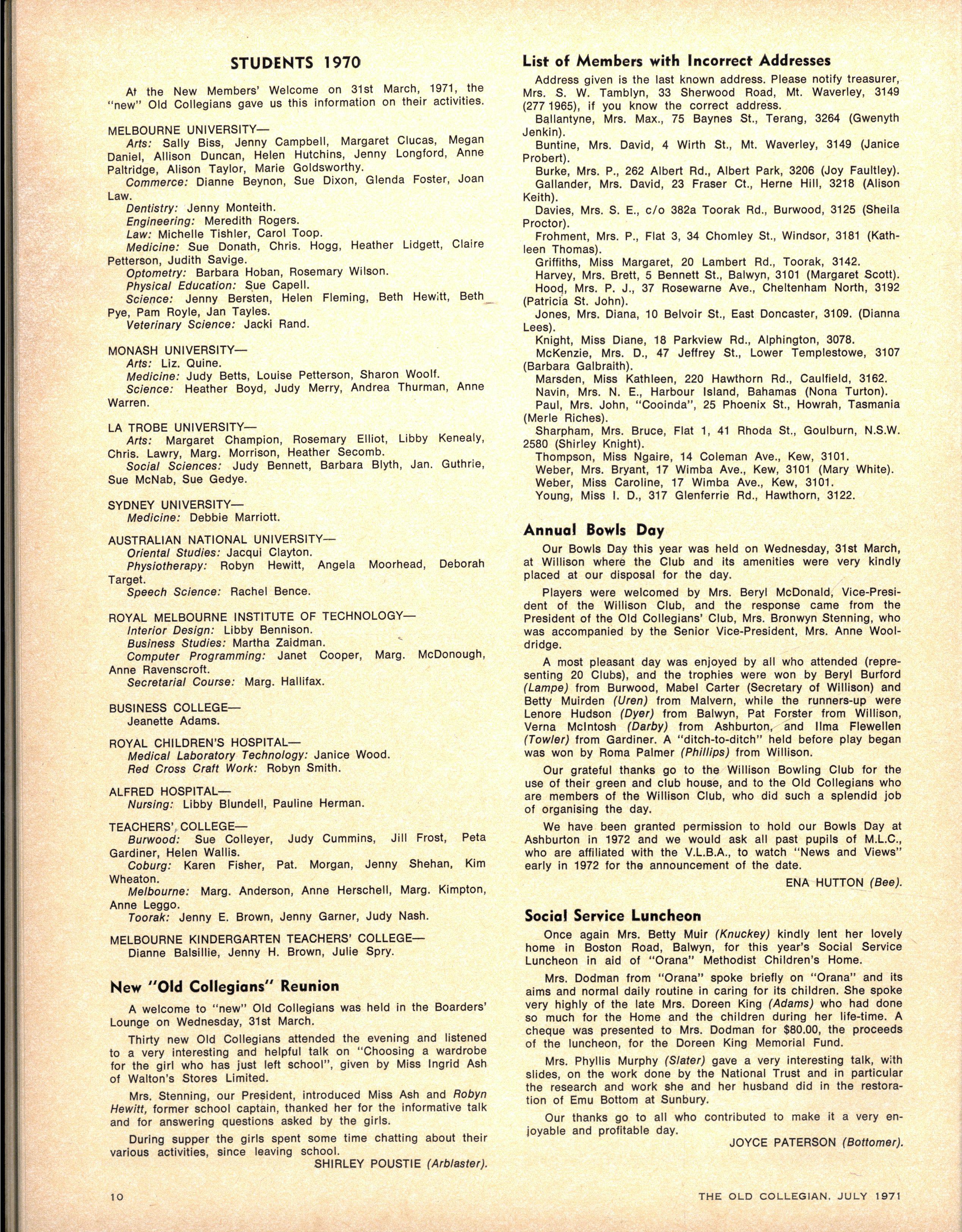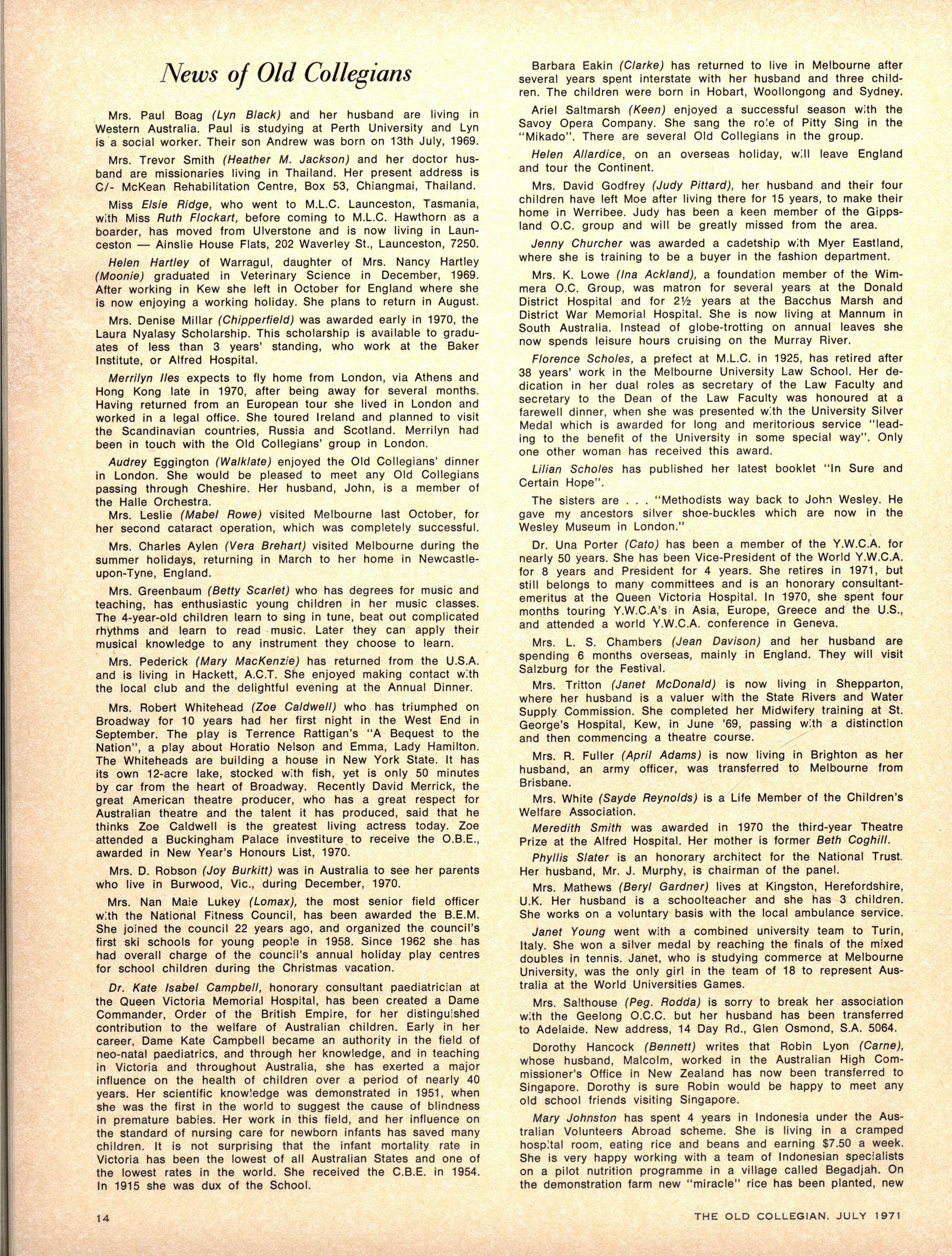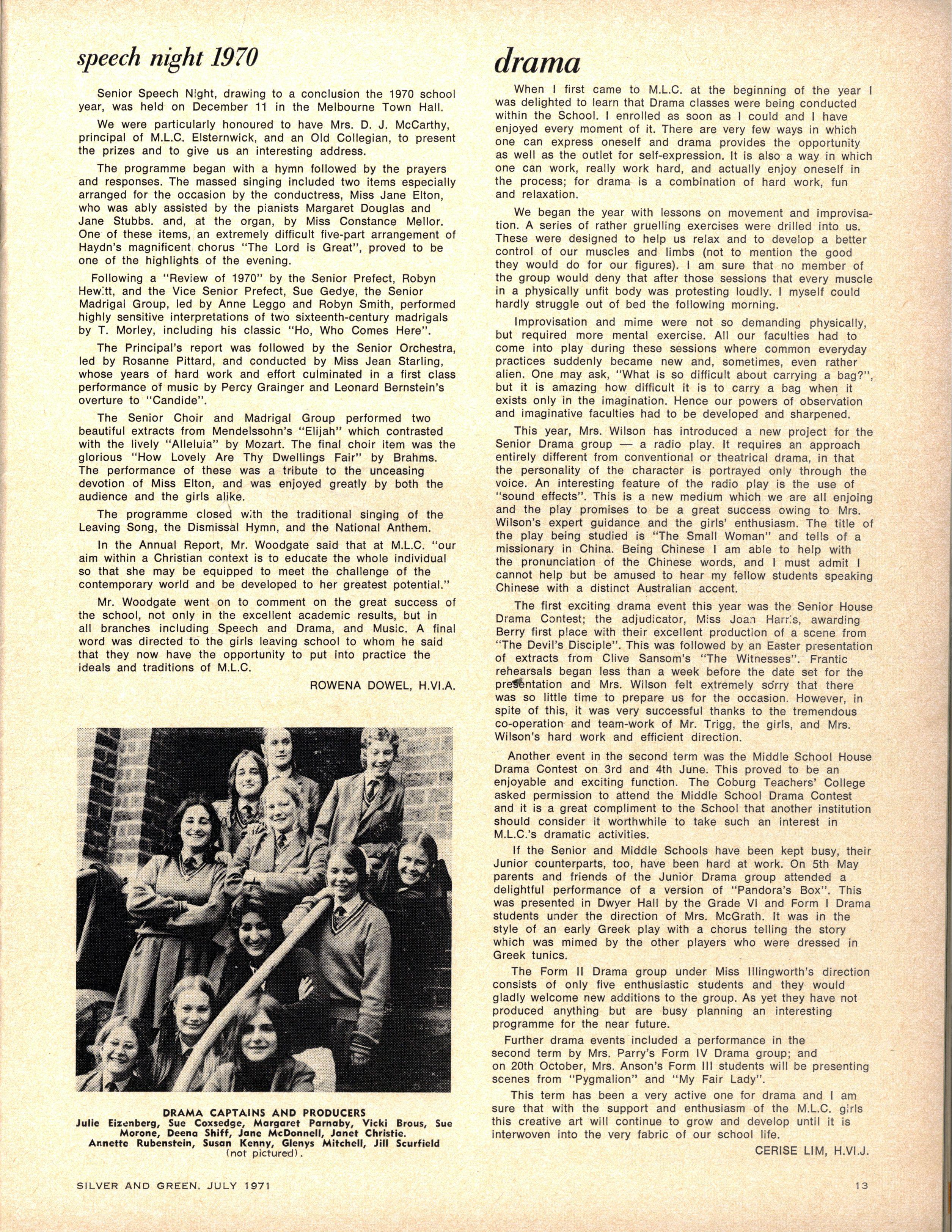 Senio r Speech Night drawing to a conclusio n the 1970 schoo l year, was held on December 11 n the Melbourne Tow n Hall