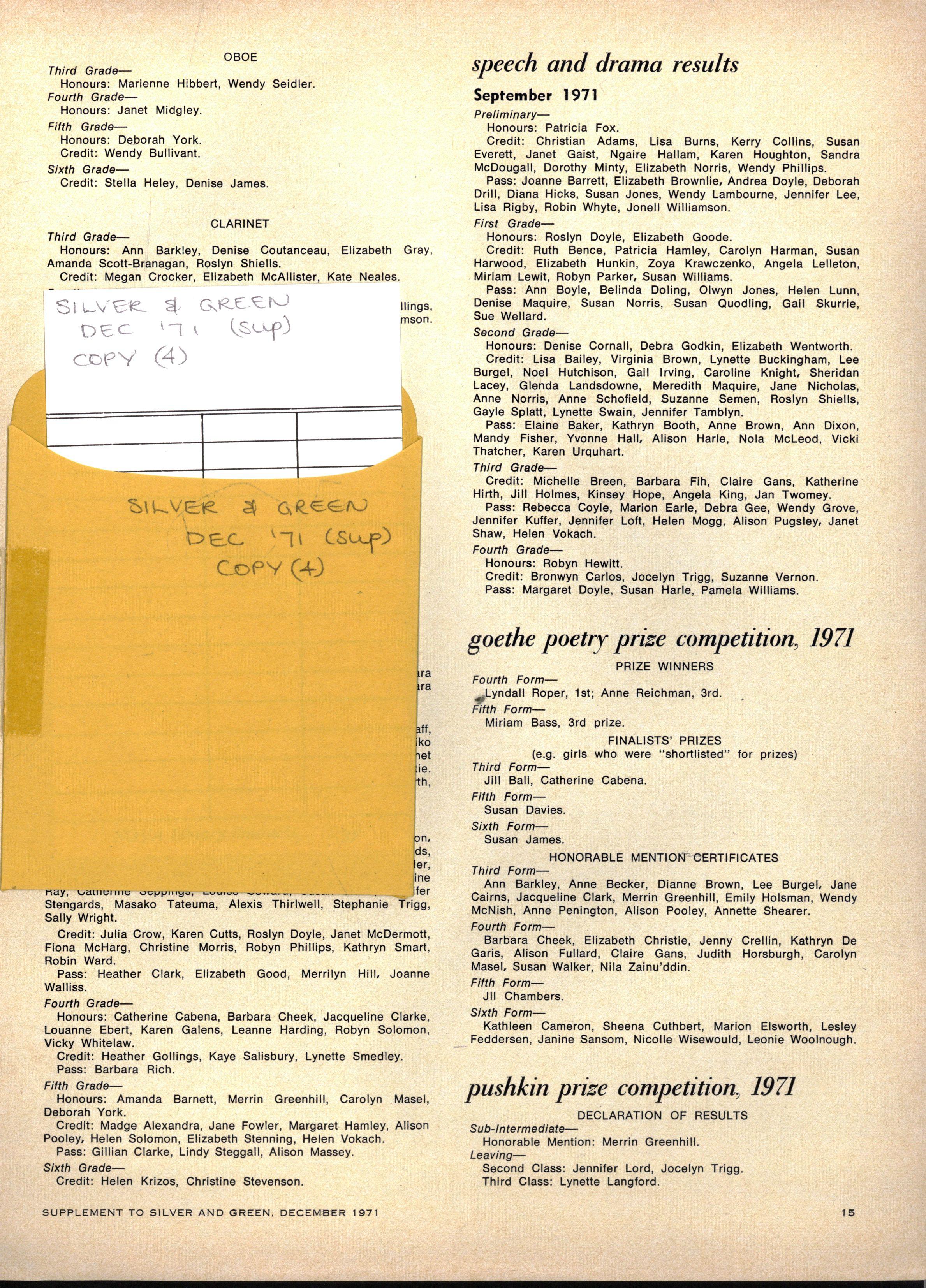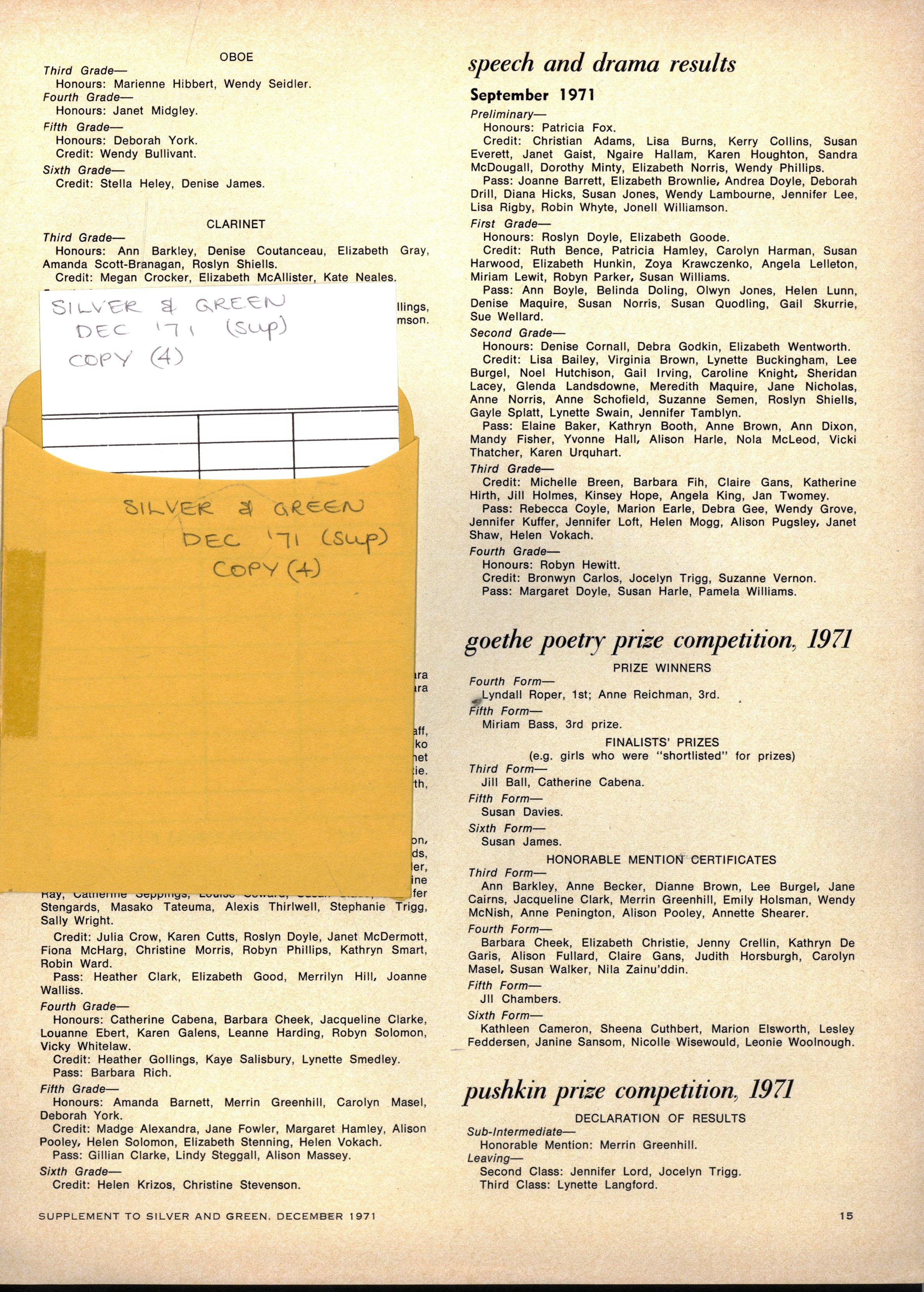 pushkin prise competition, 1971