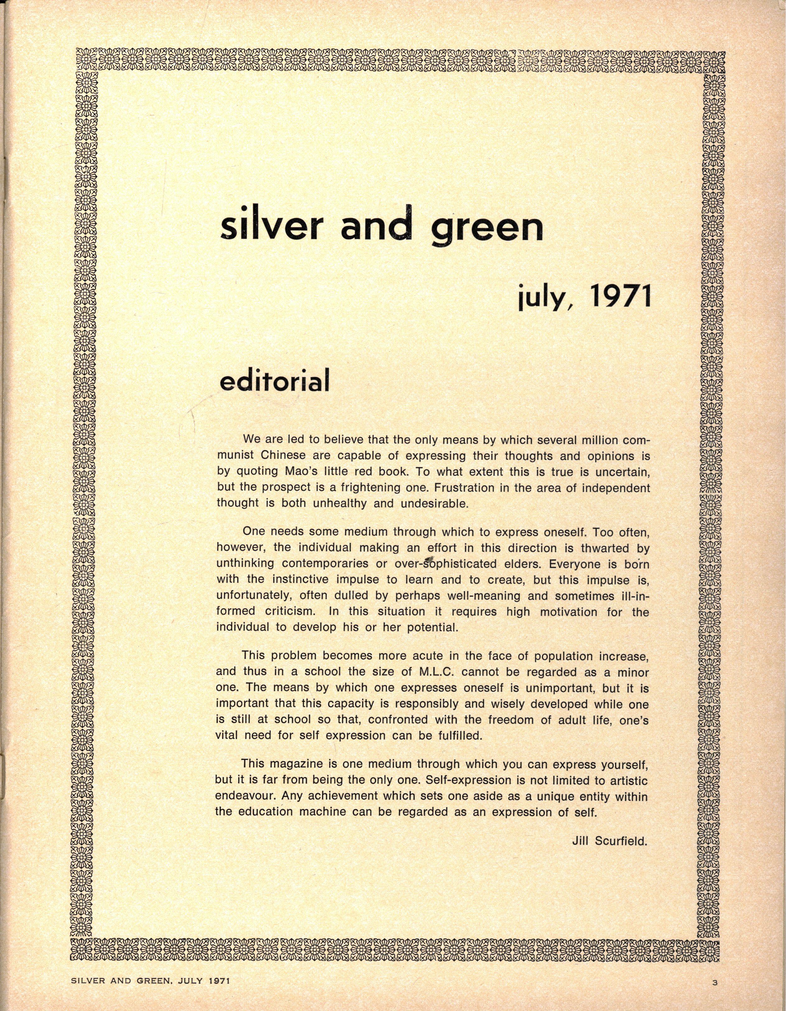 SILVER AN D GREEN, JUL Y 1971t