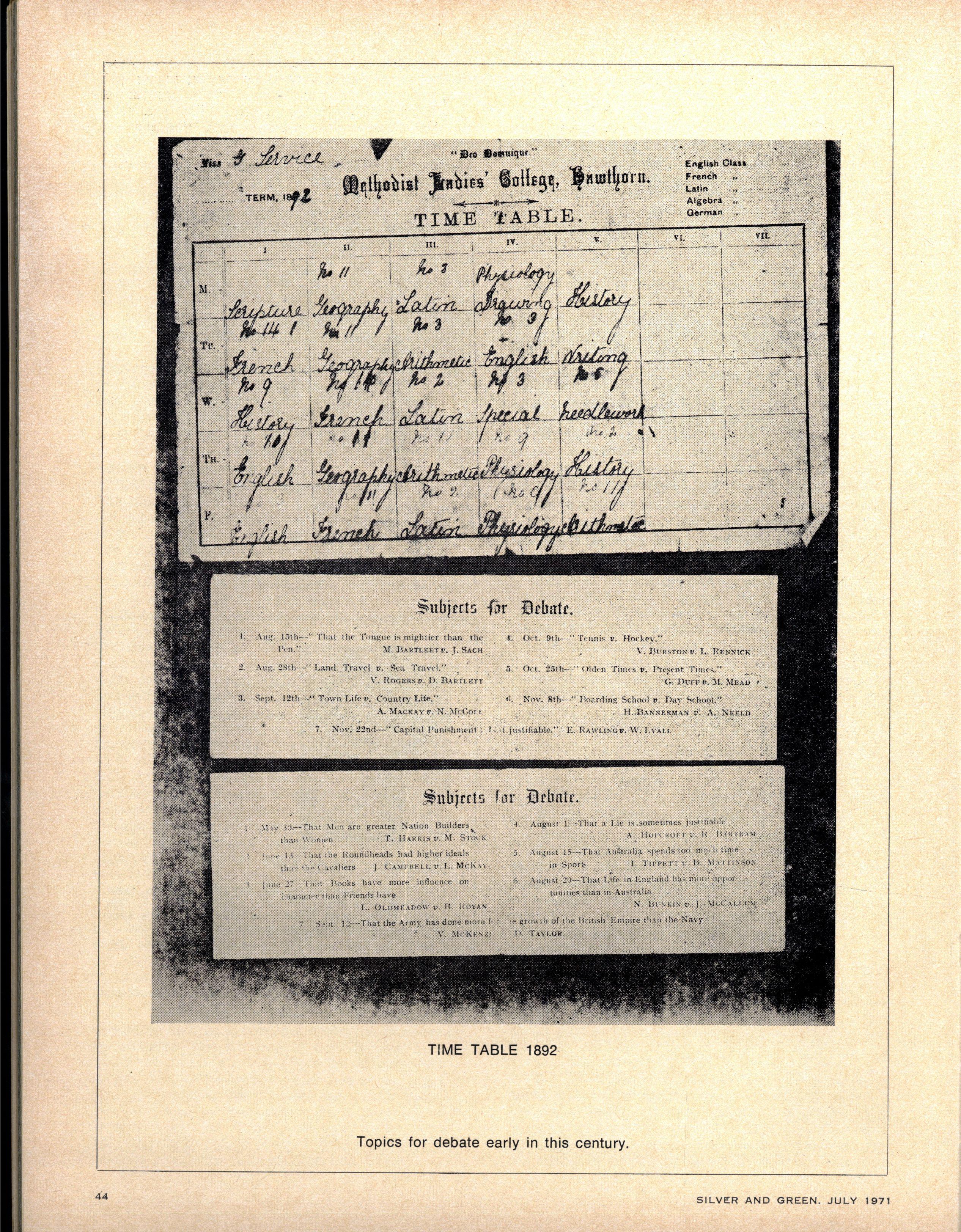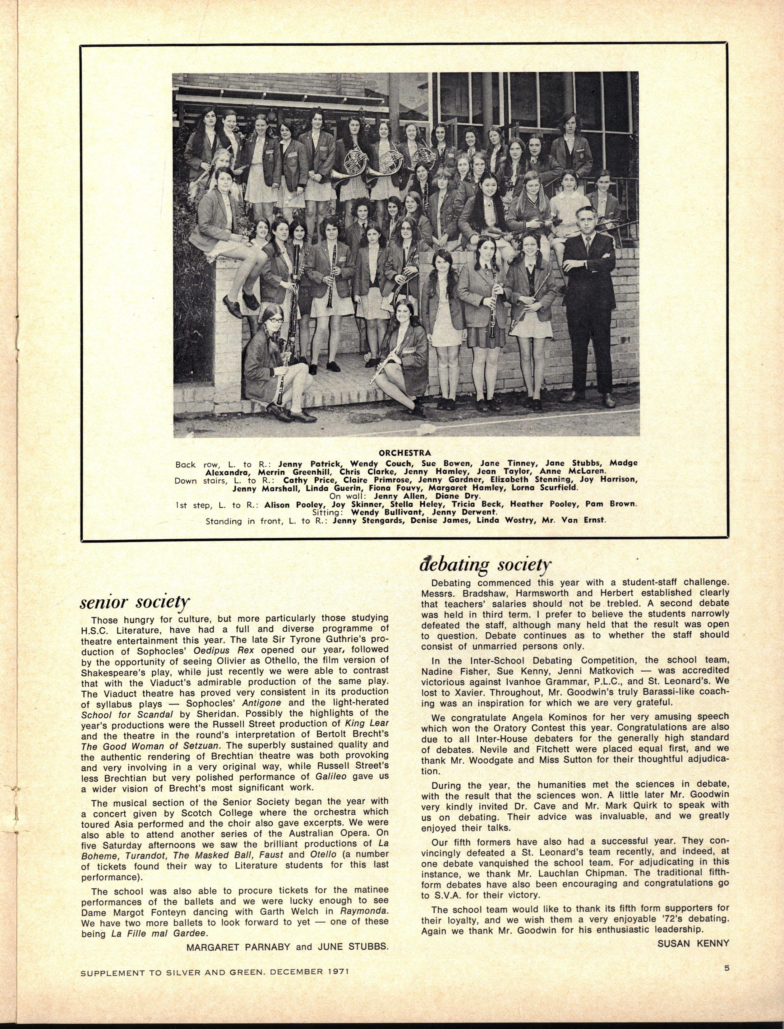 DEBATIN G SOCIETY : Mr Goodwin; Presiden t — Susa n Kenny ; Secretarie s — Nadine Fisher , Susa n Cohen; Committee — Margaret Parnaby Jennife r Matkovich Sandr a Bell