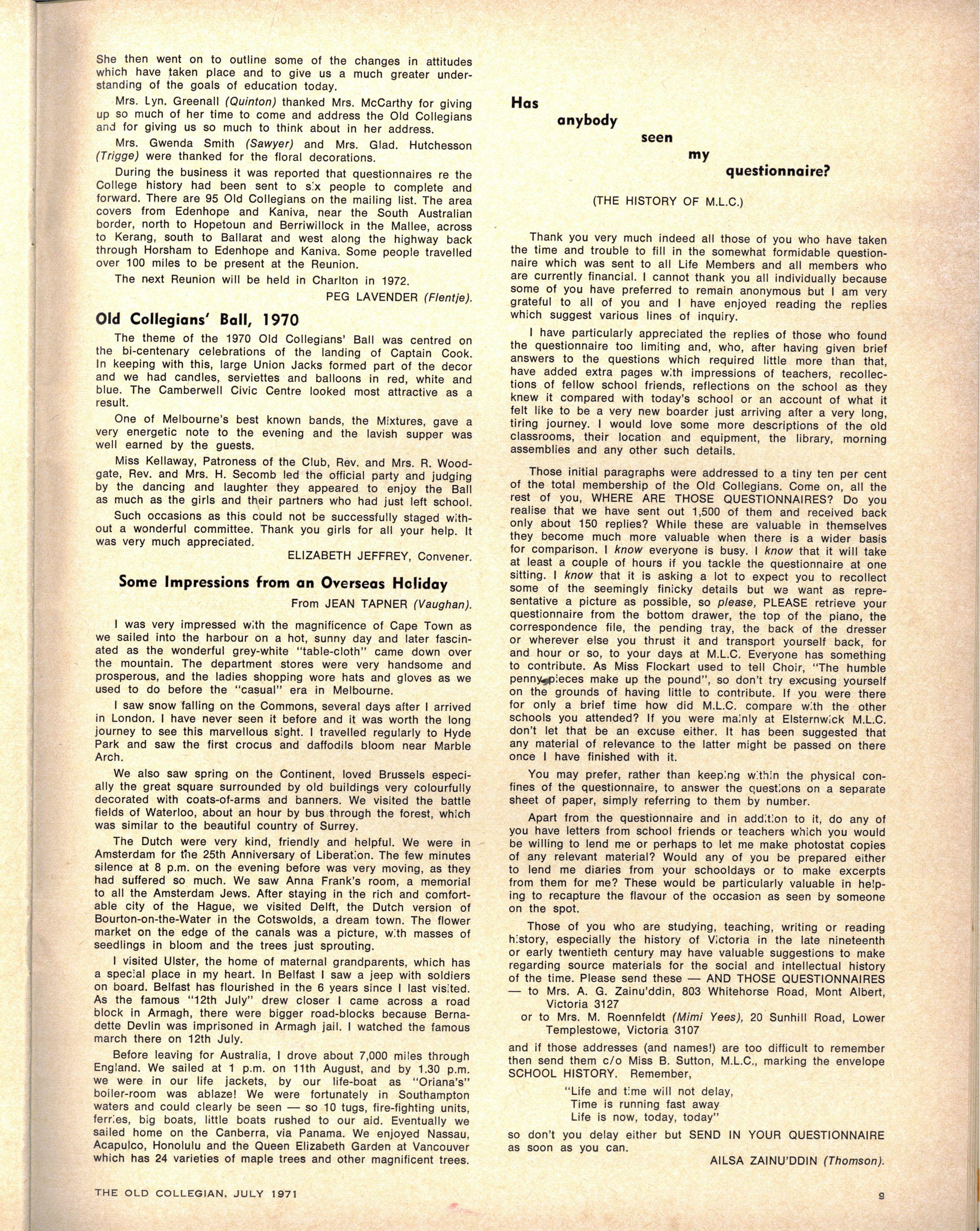 Th e programme closed with the traditional singin g of the Leaving Song, the Dismissa l Hymn, and the National Anthem I n the Annual Report, Mr Woodgate said that at M.L.C "ou r aim within a Christia n context i s to educate the whole individual s o that sh e may be equipped to meet the challenge of the contemporary worl d and be developed to her greatest potential."