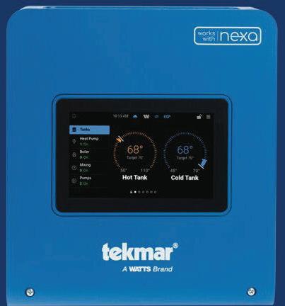 The Smart Heat Pump Control 291 from tekmar operates up to four heat pumps in a two-pipe or four-pipe configuration. The system can be expanded to customize it for maximum home comfort. The system can deliver heating and cooling of buffer tanks simultaneously (in a four-pipe configuration) and be extended to support up to 16 heat pumps, up to three mix temperatures, and support a dedicated boiler loop. It supports a backup boiler or a backup boiler loop with a Smart Boiler Control 294. The Nexa by Watts web and mobile applications provide real-time remote monitoring, setting adjustments and notifications.
