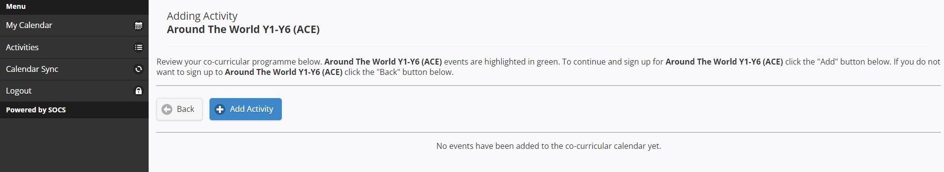 Repeat for other activities. Confirm your selection in the ‘My Activities’ section.