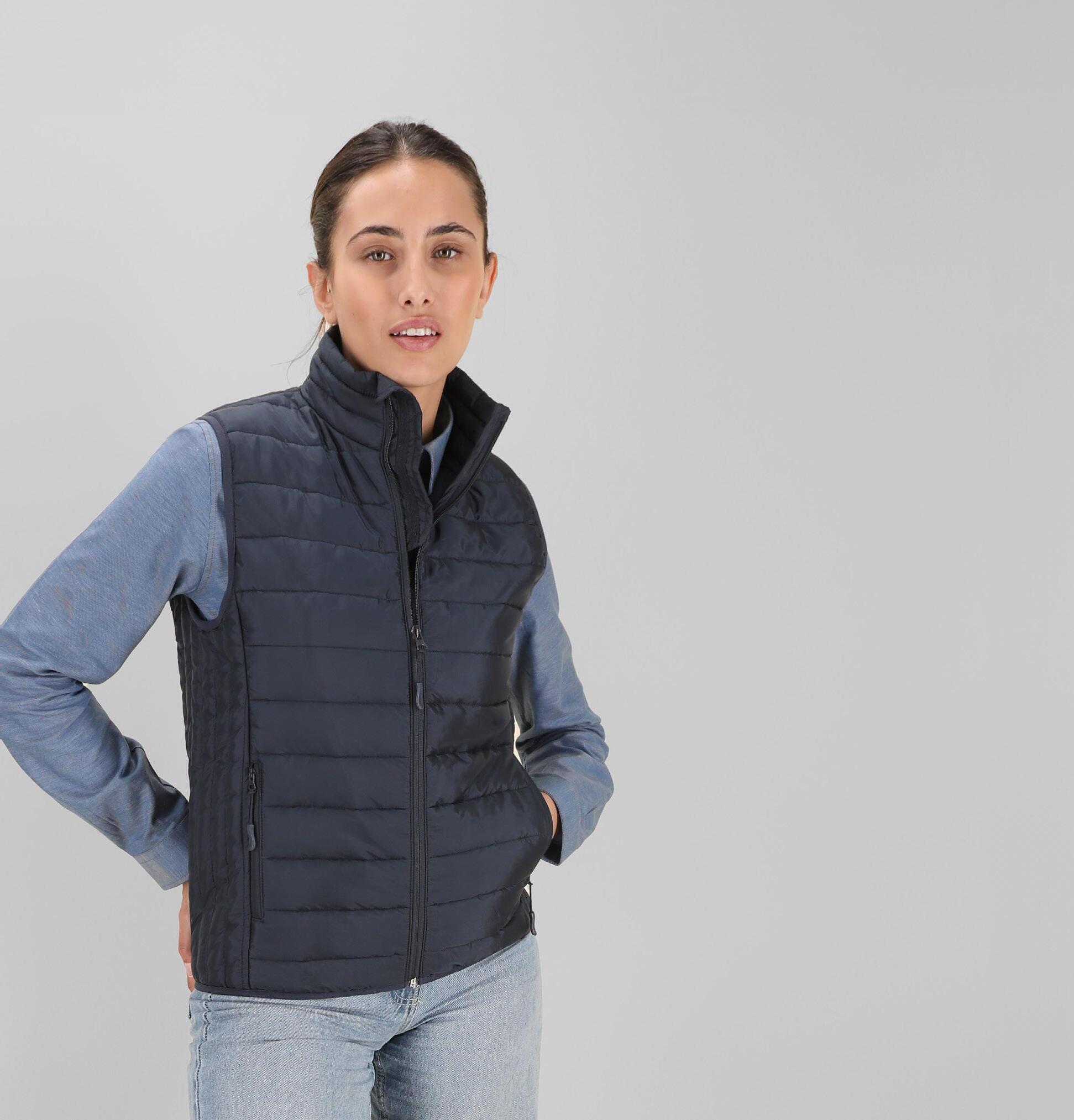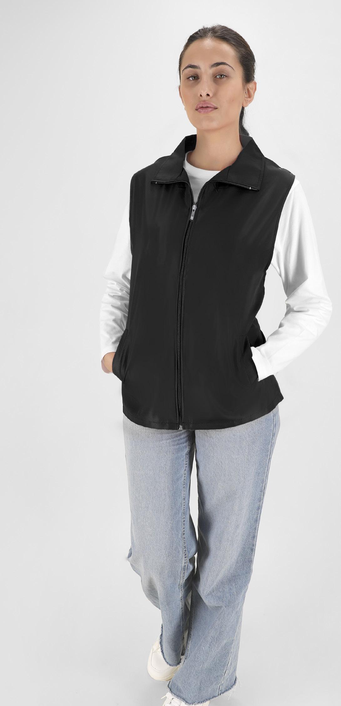 Women´s Vest. 100% Polyester. Wind and Water Resistant. Polyester Pouch. Frauen Weste. 100% Polyester. Beständig Gegen Wind und Wasser. Polyester Etui. Gilet Femme. 100% Polyester. Résistant au Vent et à l’Eau. Étui Polyester. Dames Vest. 100% Polyester. Bestand Tegen Wind en Water. Polyester Zakje.