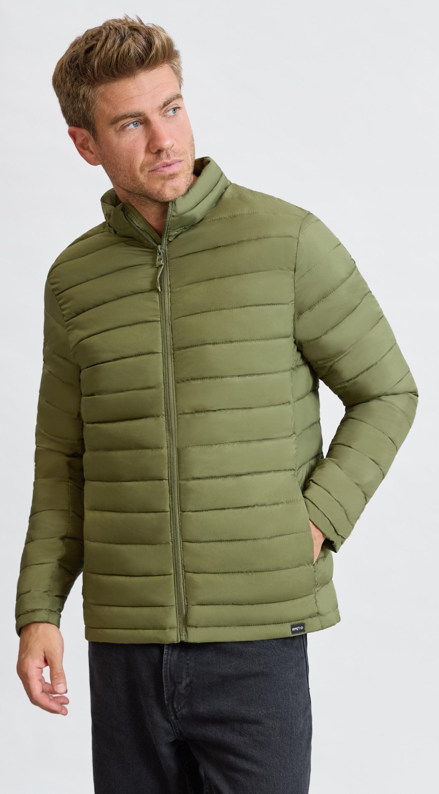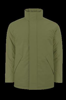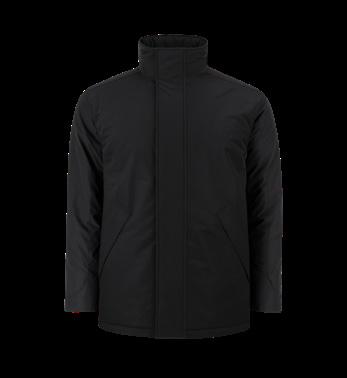 Jas. Dubbele Laag. Buitenzijde: Soft Shell, 92% Polyester RPET/ 8% Elastaan. Binnenzijde: 100% Polyester