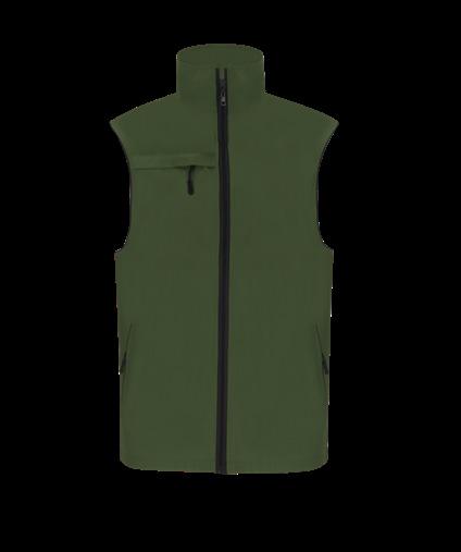 Vest. Drie Lagen. Buitenzijde: Soft Shell, 94% Polyester RPET/ 6% Elastaan. Binnenzijde: 100% Polyester Micropolar RPET. 340 g/ m2. Bestand Tegen Wind en Water.