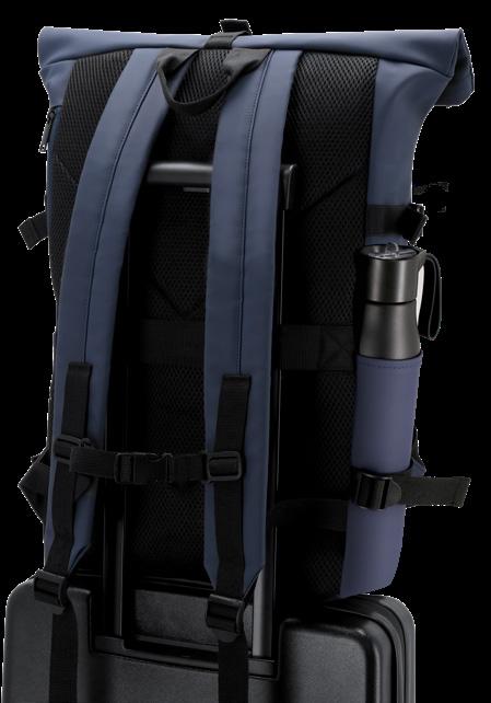 Trolley Backpack. Polyester 300D. Padded Laptop Compartment. Padded Back and Shoulder Straps. Trolley Rucksack. Polyester 300D. Gepolsterte Laptoptasche. Gepolsterter Rücken und Schultergurte.