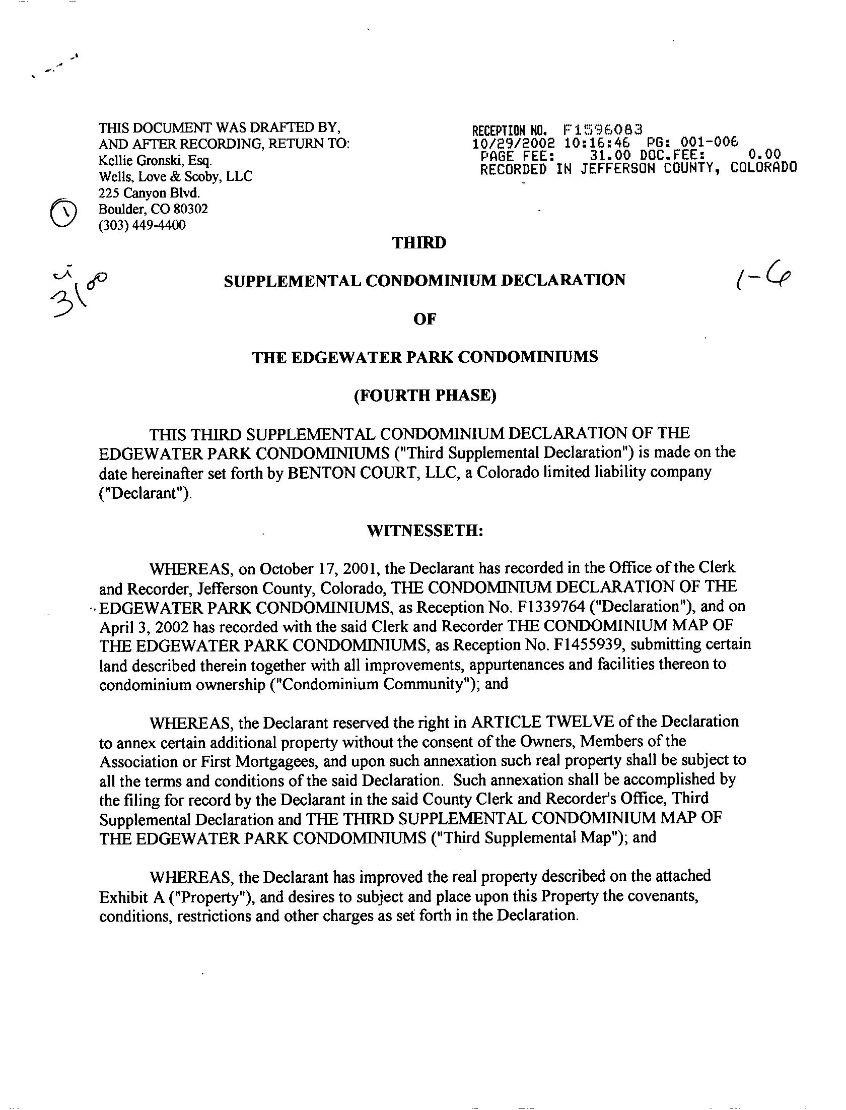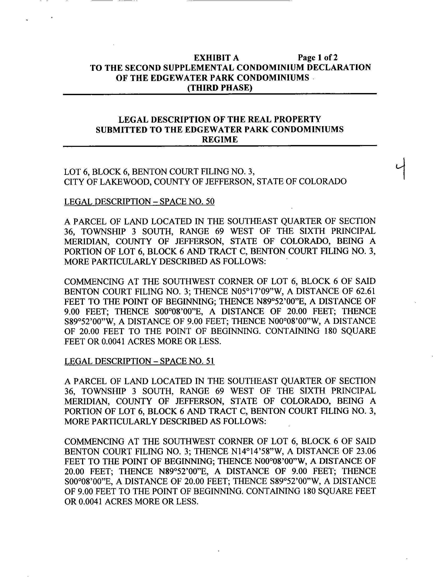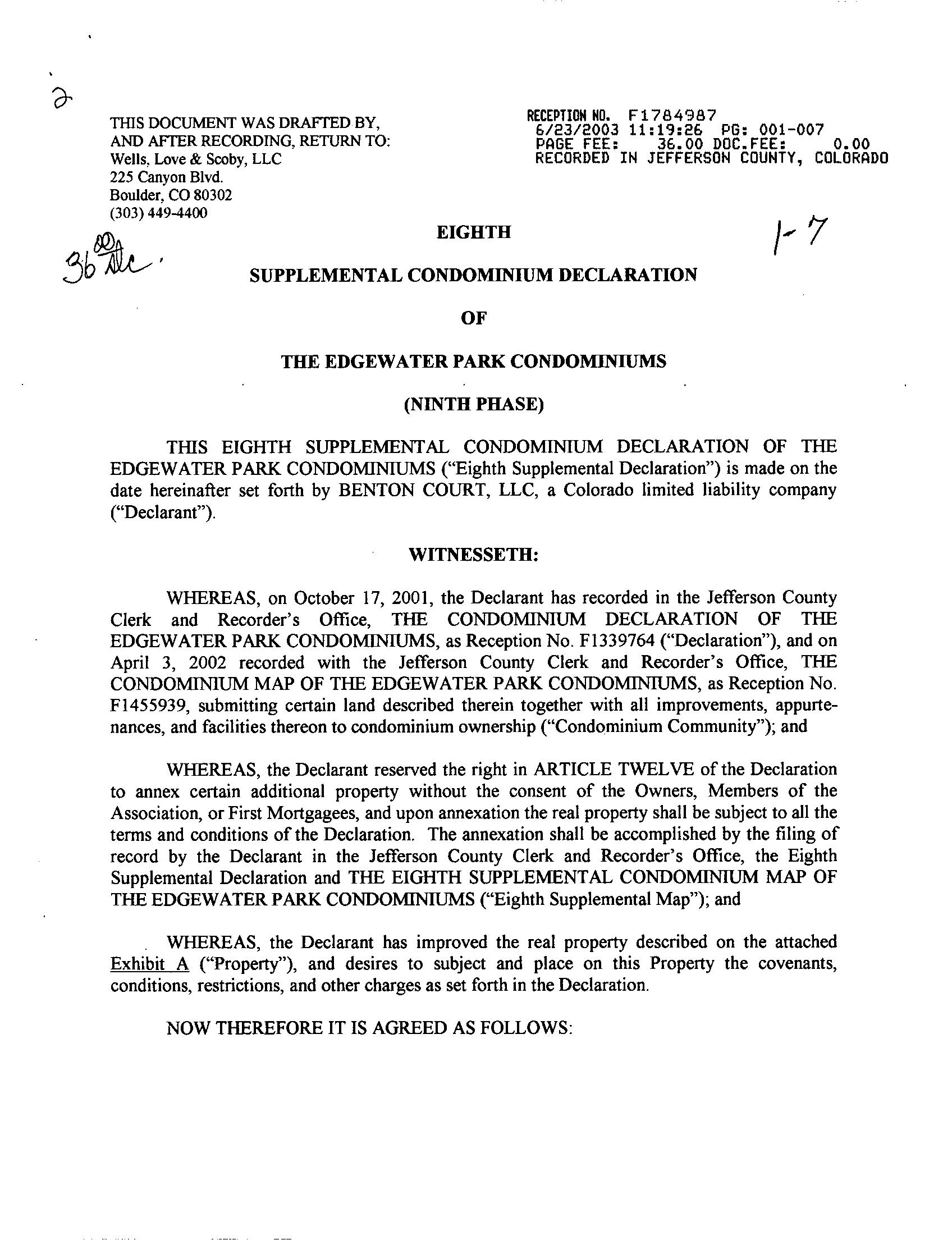 LegalRecorder's MapRef DOCF1785075 Legal Subdivision THEEDGEWATERPARK CONDOMINIUMS LegalSection/Twn/ Rng/Mer