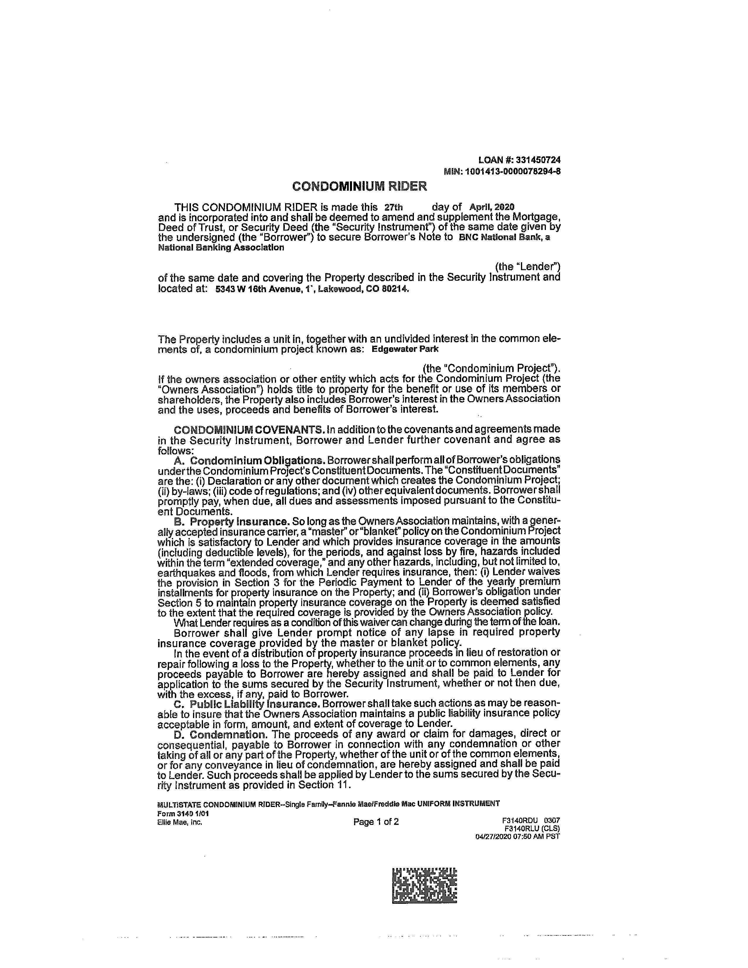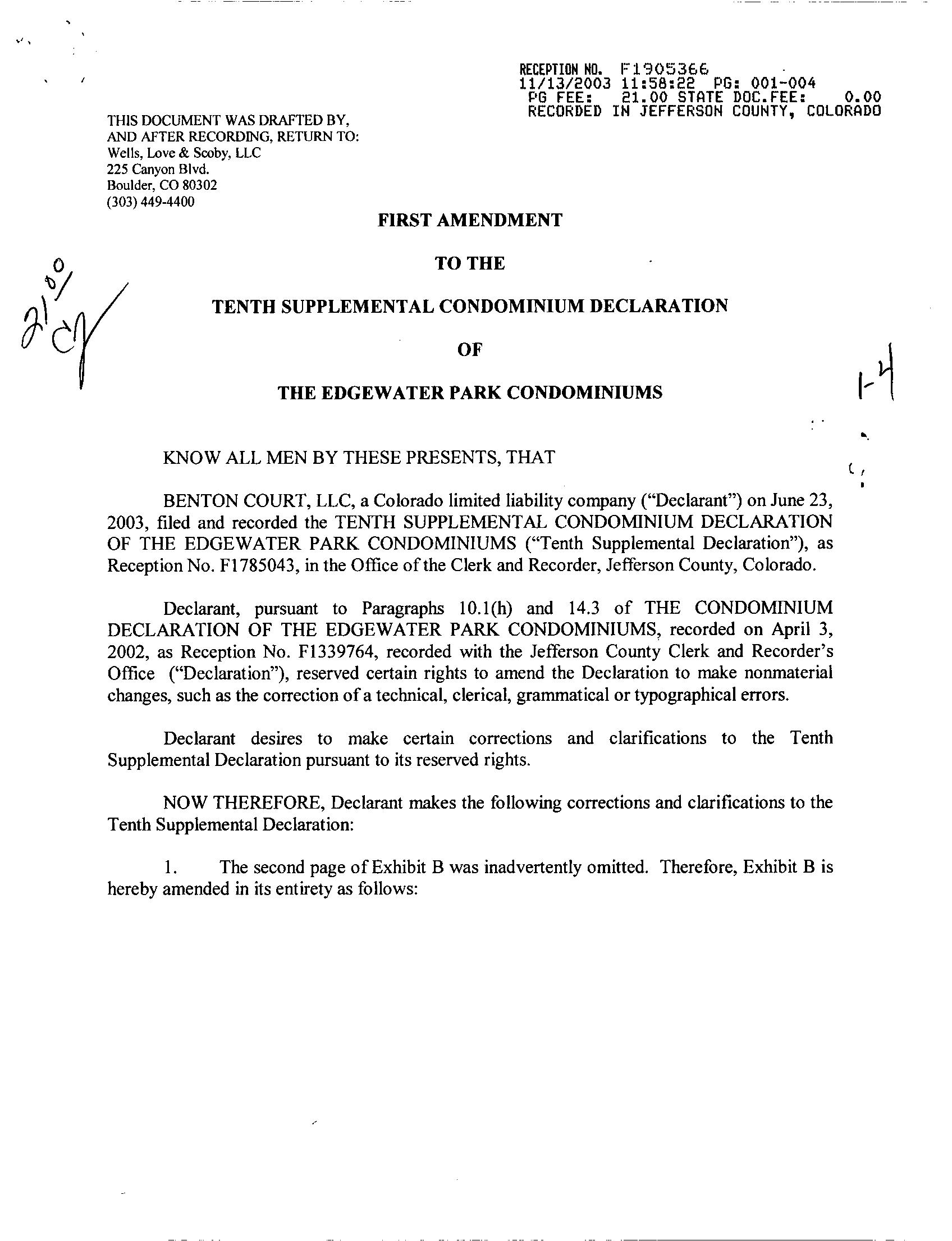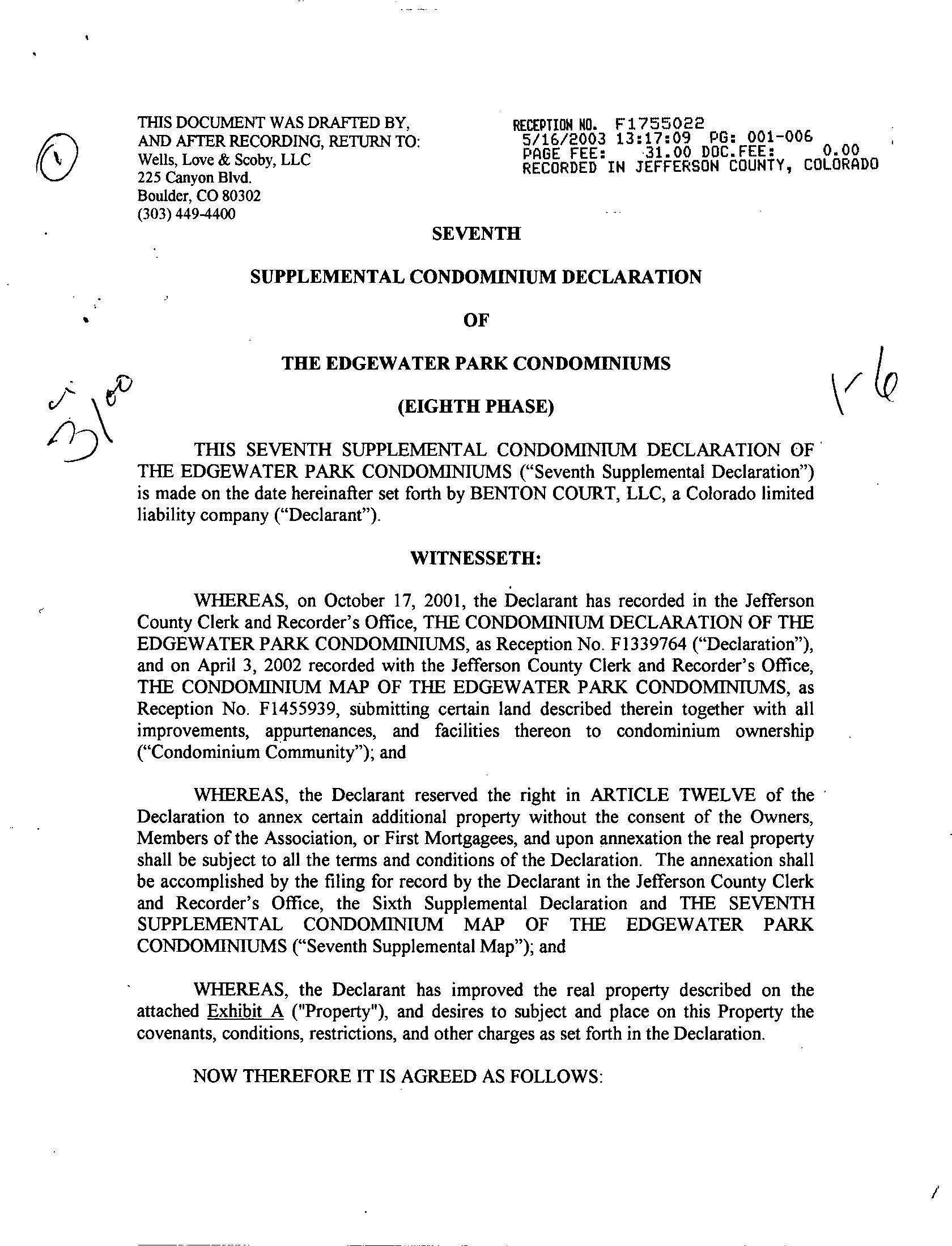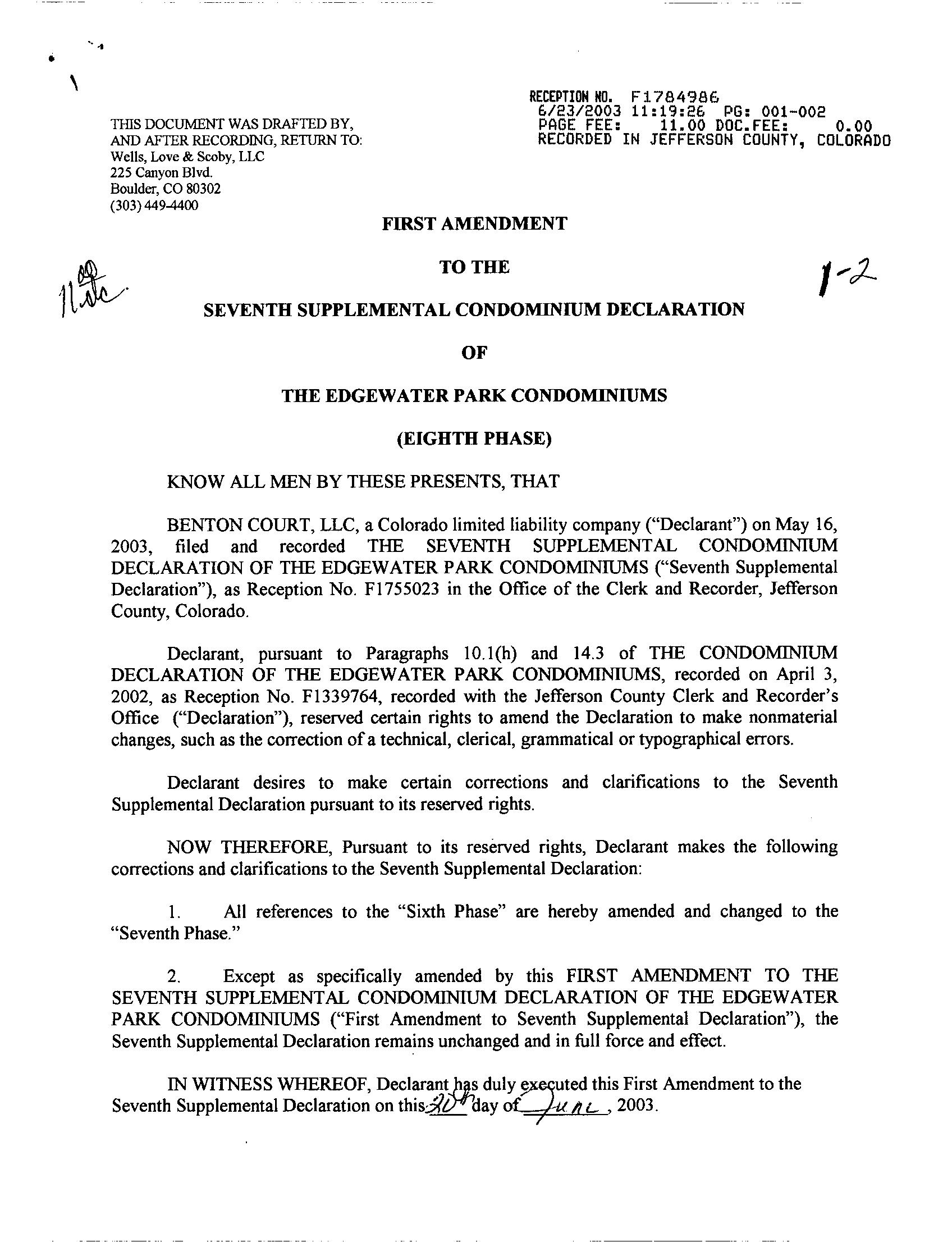 LegalRecorder's MapRef DOCF1785075 Legal Subdivision THEEDGEWATERPARK CONDOMINIUMS LegalSection/Twn/ Rng/Mer