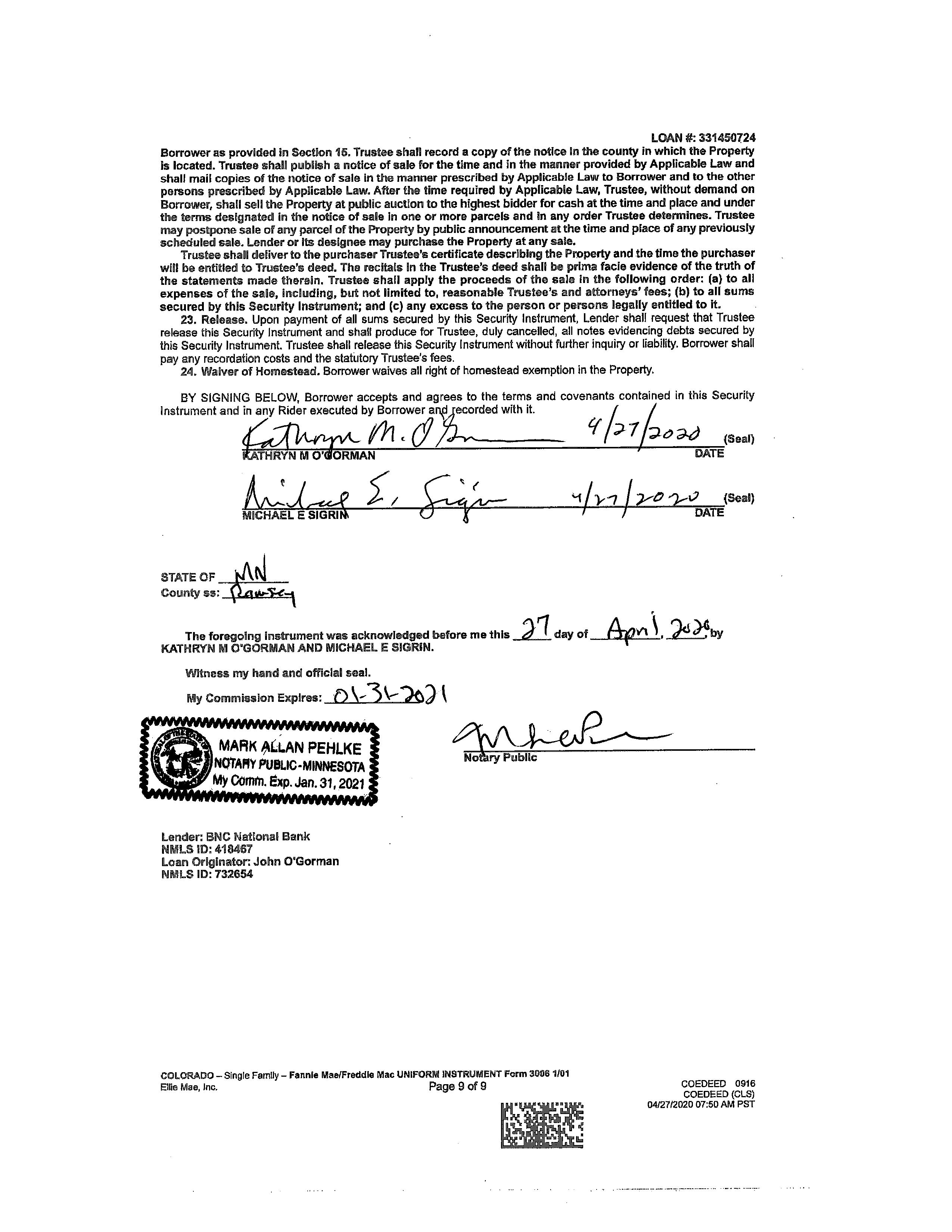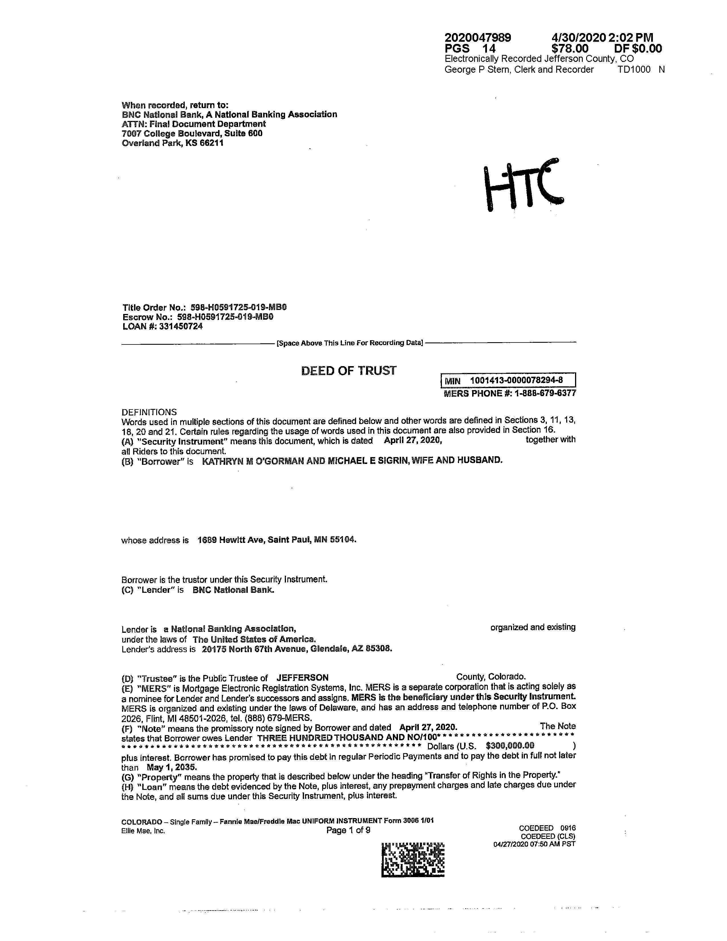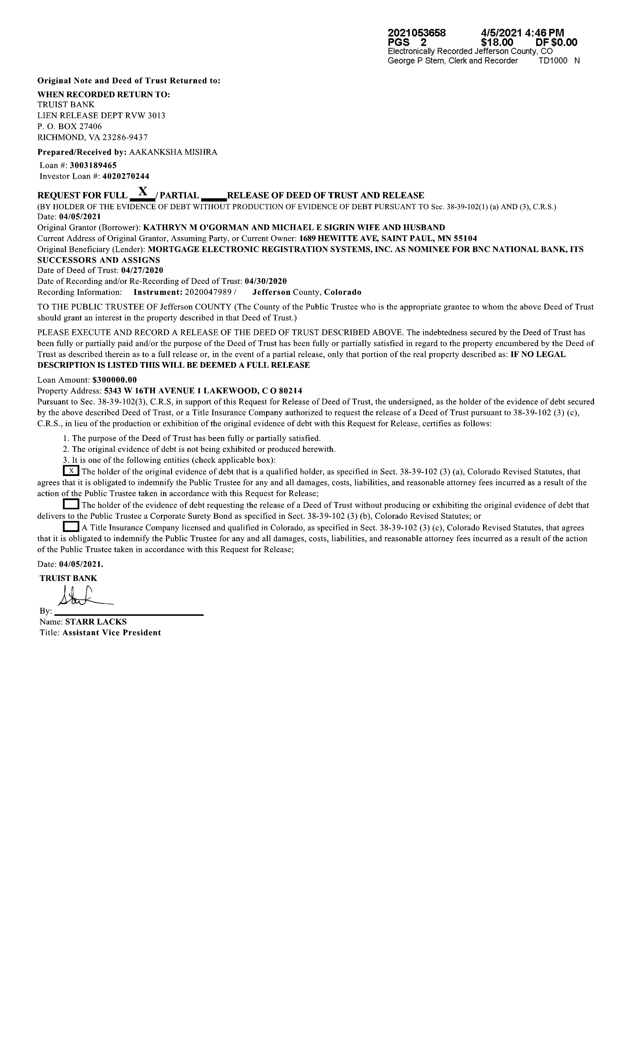 Borrower(s)Name KATHRYNMOGORMAN Document Description FullReleasewithLegal Description Origination RecordingDate 04/30/2020