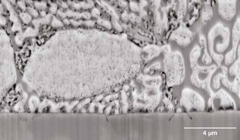 Cross Section (AXS) software. Users can designate areas of interest and instruct the system to mill and image these successively without constant supervision, automatically creating and imaging cross sections at multiple sites on a sample. As well as reducing the strain on operators, this automation improves consistency across samples and speeds up the overall workflow. This is especially helpful when analysing zinc-based coatings because the feature sizes vary significantly, ranging from large primary zinc dendrites that are over 100 μm in diameter to much finer eutectic phase structures of around 100 nm.