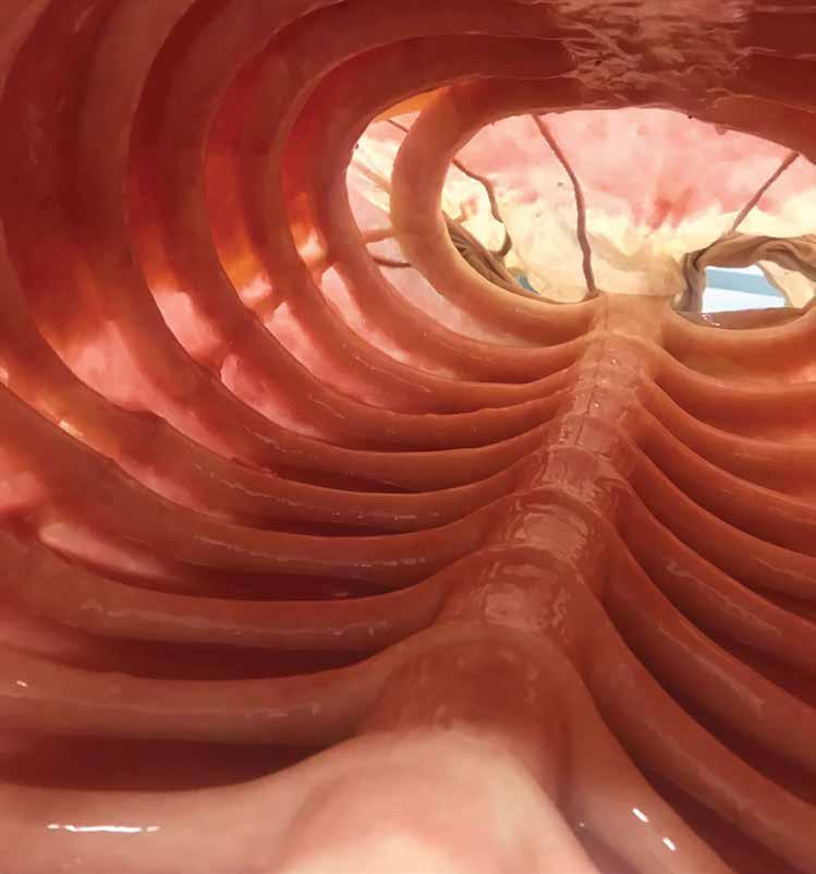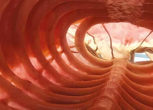 “Human skin is a great example. Resilient, repairable, and compliant, human skin has some unique characteristics that are controlled by its makeup,” says Arm. “Layers, fibre-filled gel membranes and elastic embedded structures are all replicated in the work I do, inspired by nature’s own design.”