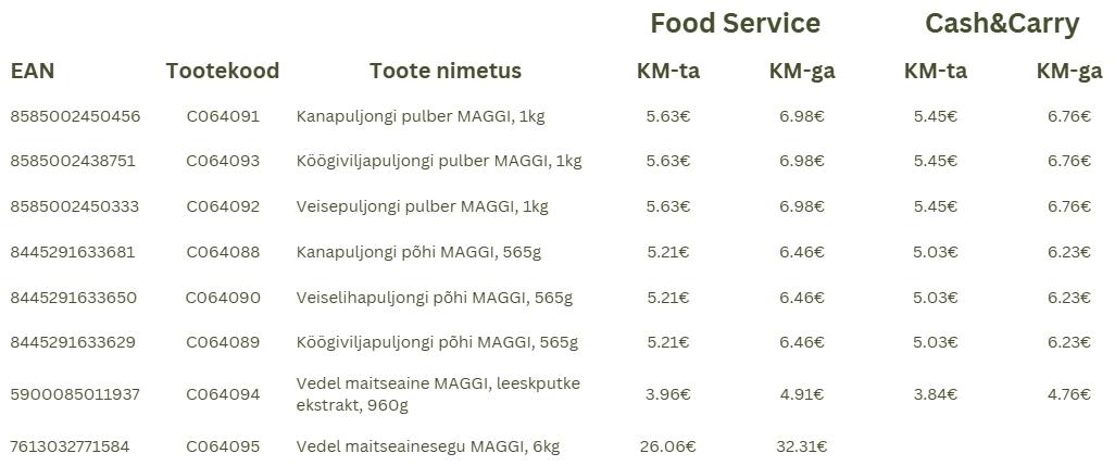 Hinnad kehtivad 03.02.2026 - 02.03.2026