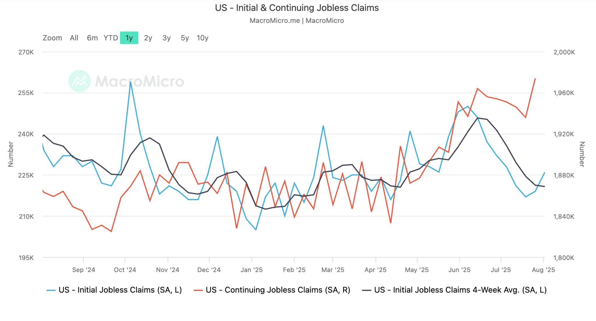 截至 8 月 2 日當週,初領失業金人數增加 7,000 人,總數來到 22.6 萬人,創下一個