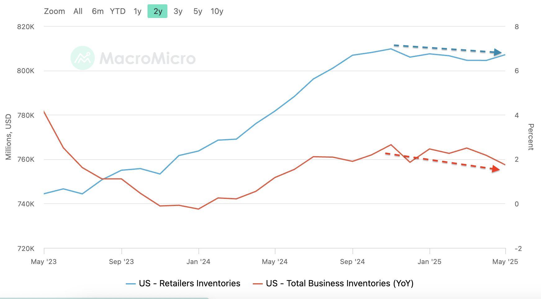圖9. 美國零售庫存與企業總庫存(資料來源:Macromicro)
