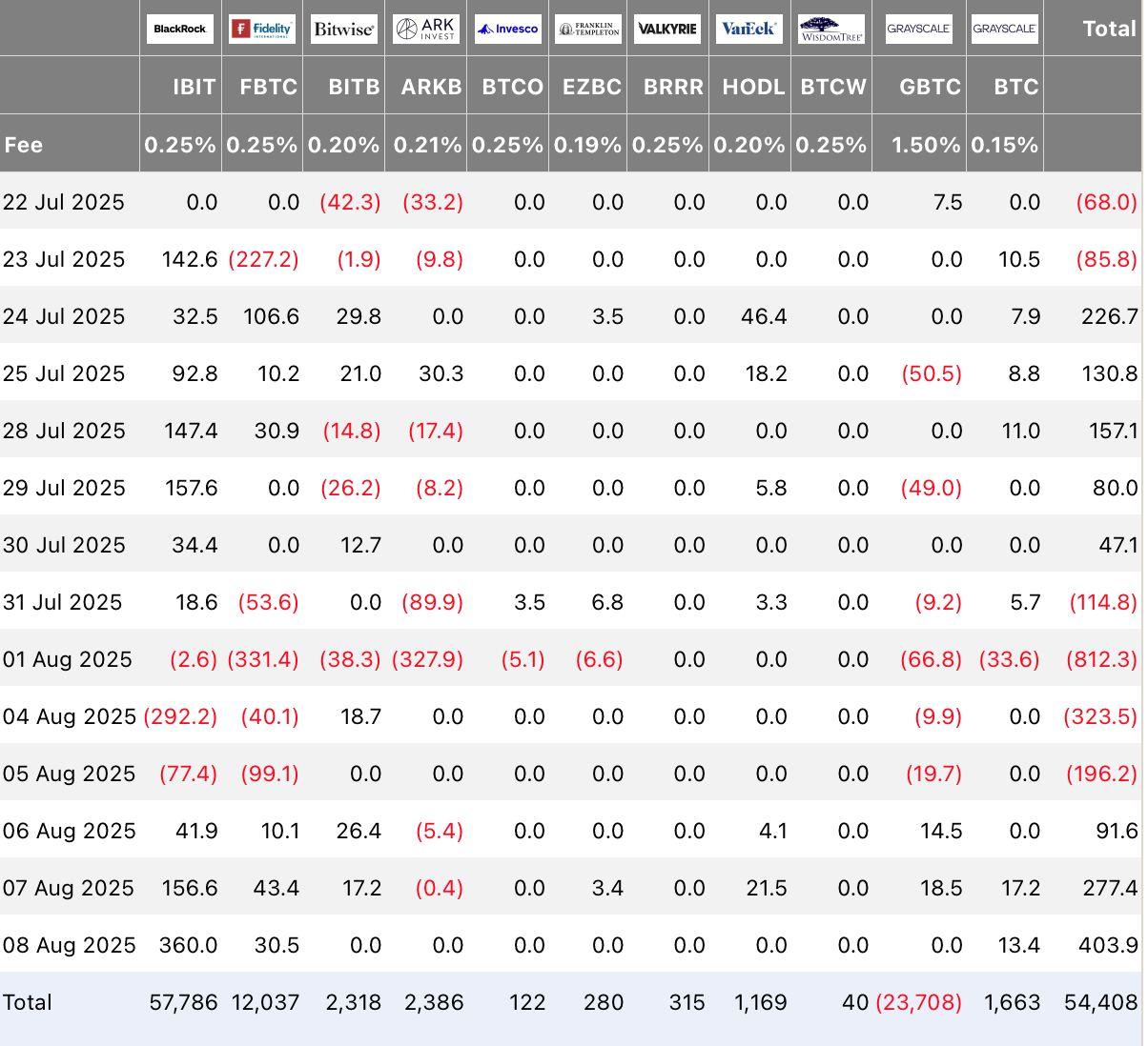 創下自 2025 年 4 月以來最大四日賣壓;然而,這一趨勢在 8 月 68 日間完全逆轉(見 下方圖 2)。歷史經驗顯示,這類大幅流出通常持續時間有限,鮮少演變成長期賣壓。