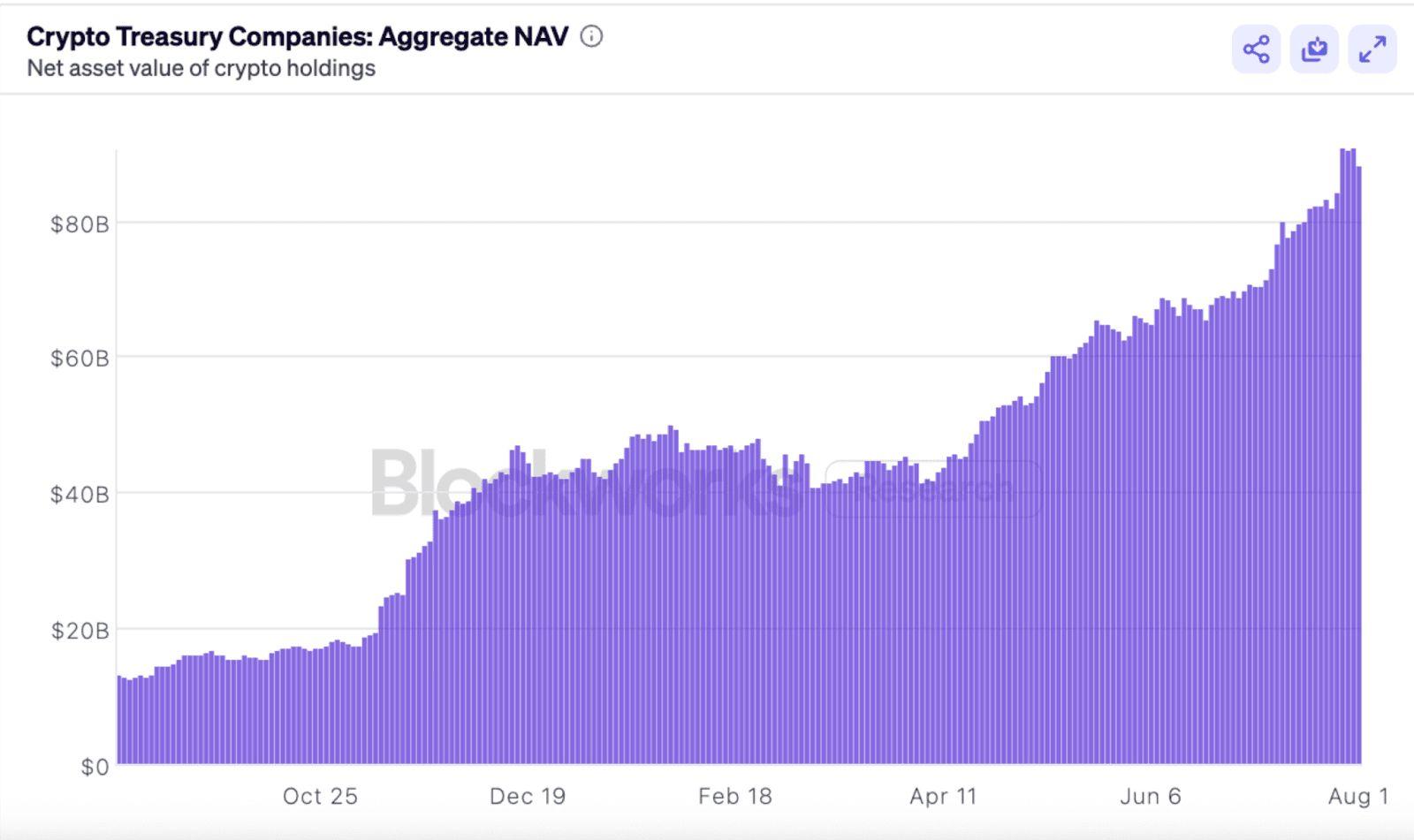 圖3. 全球加密資產金庫公司總資產淨值(資料來源:Blockworks)