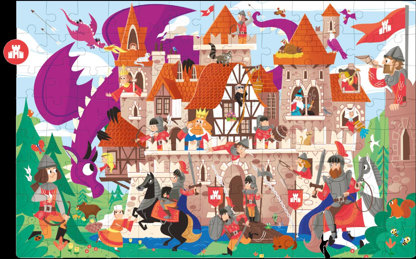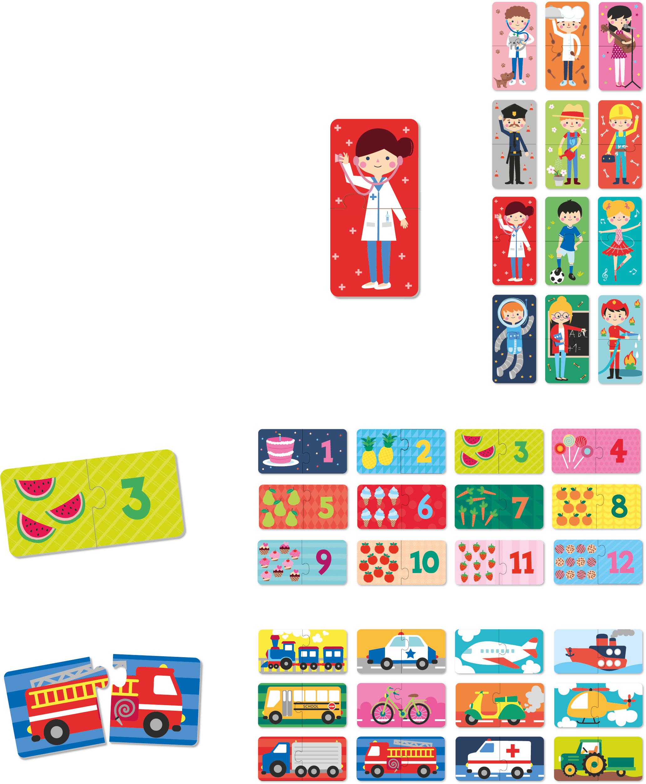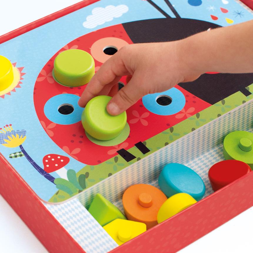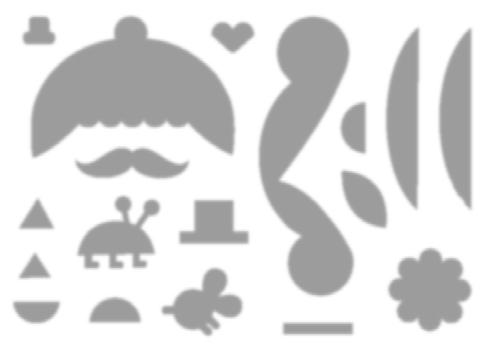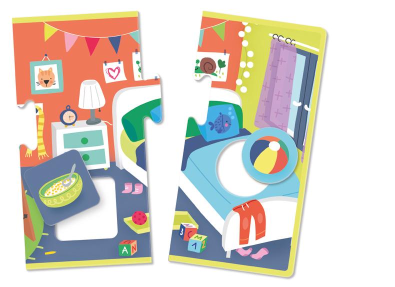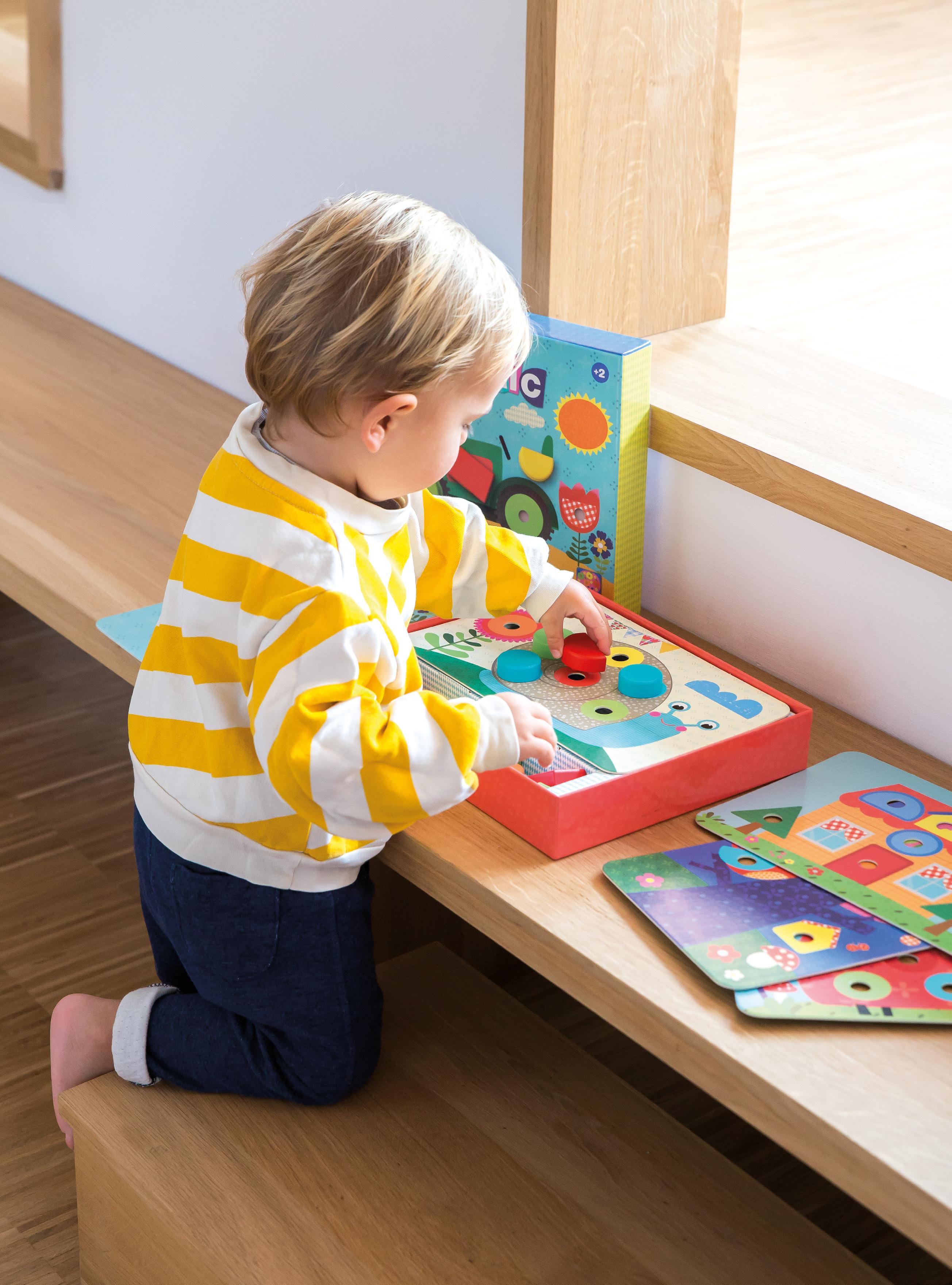 Content: 16 illustrated cards (8 drawings x 2) | 10 sheets of removable educational stickers of geometrical shapes | 1 full-color example guide