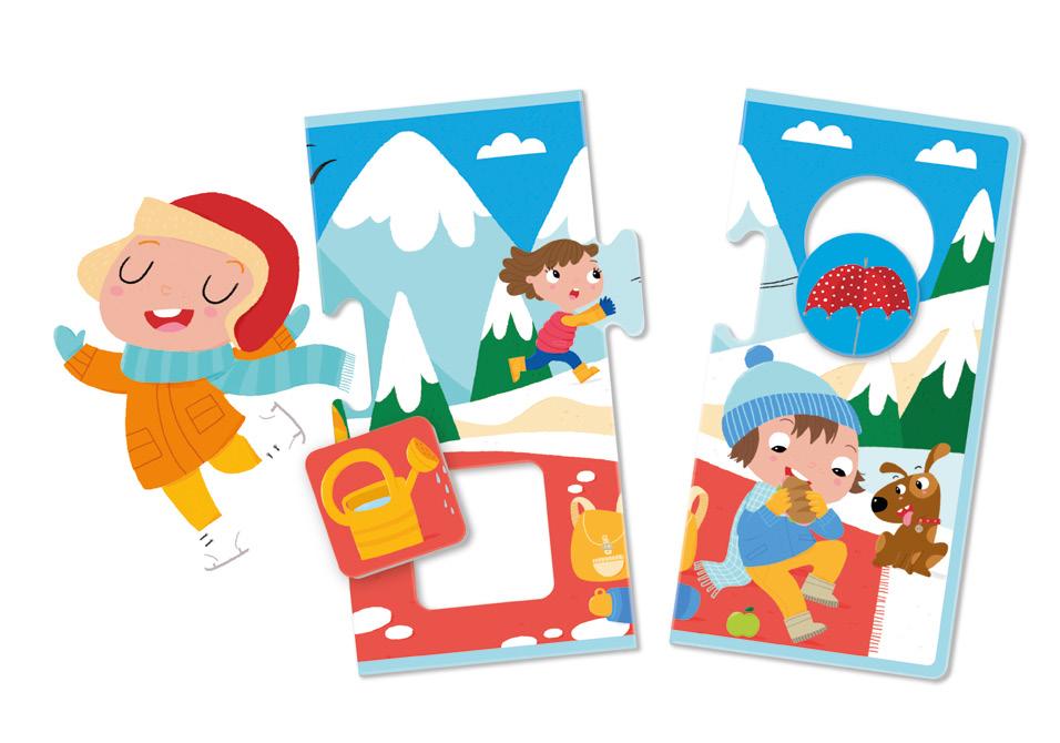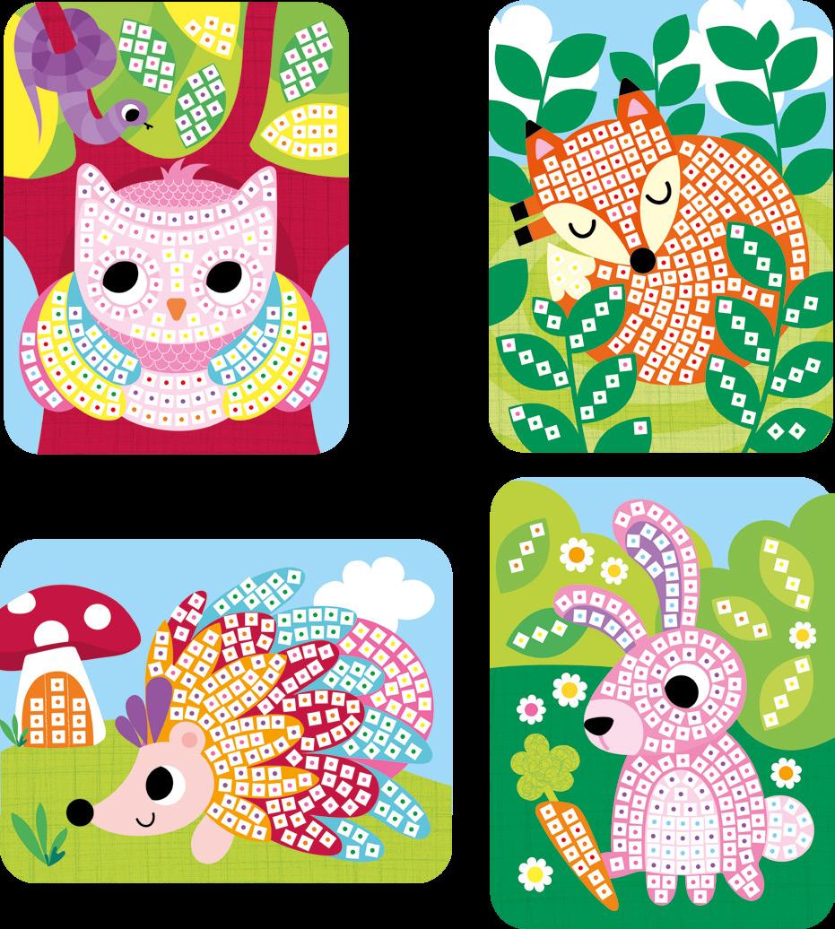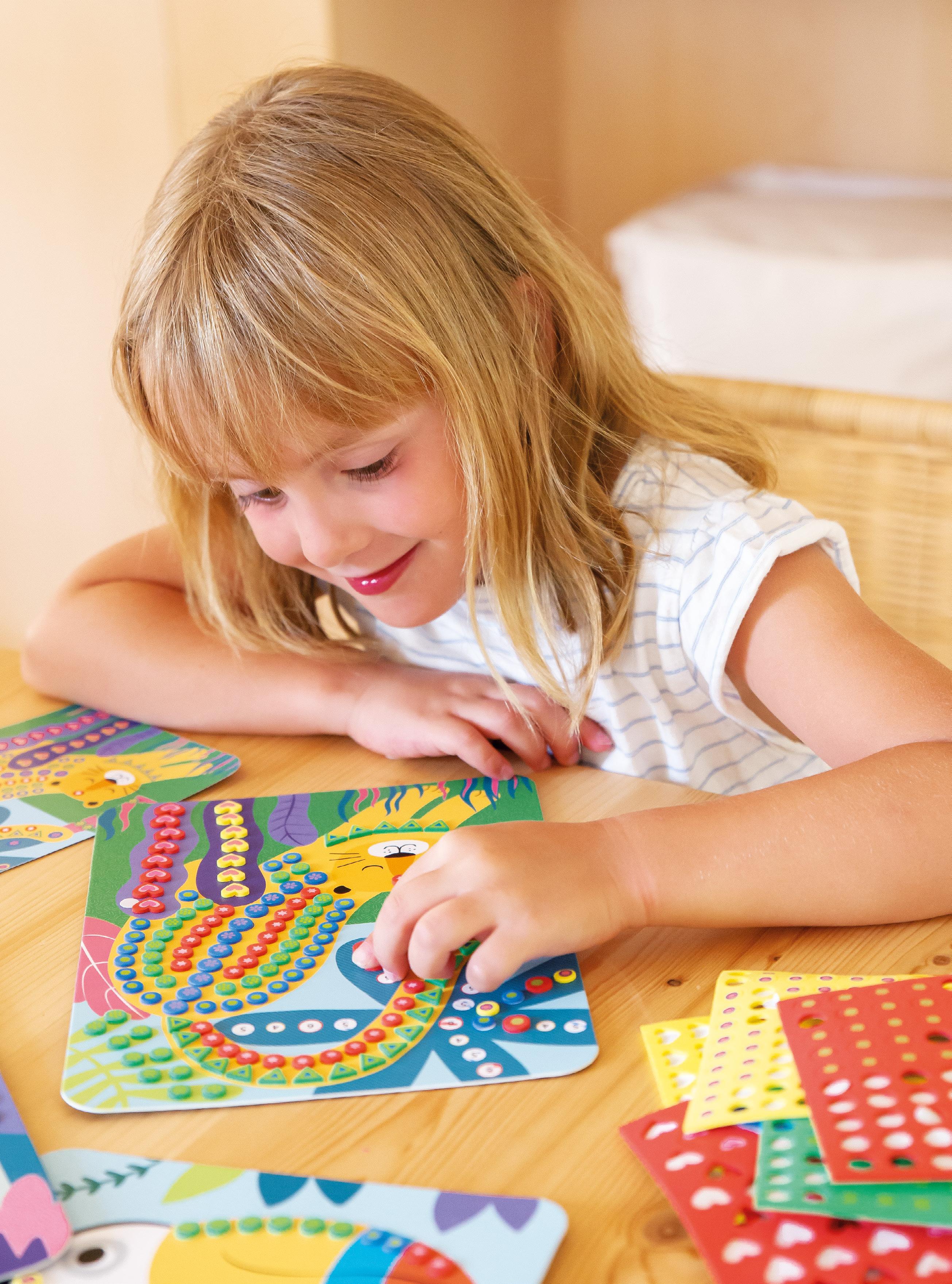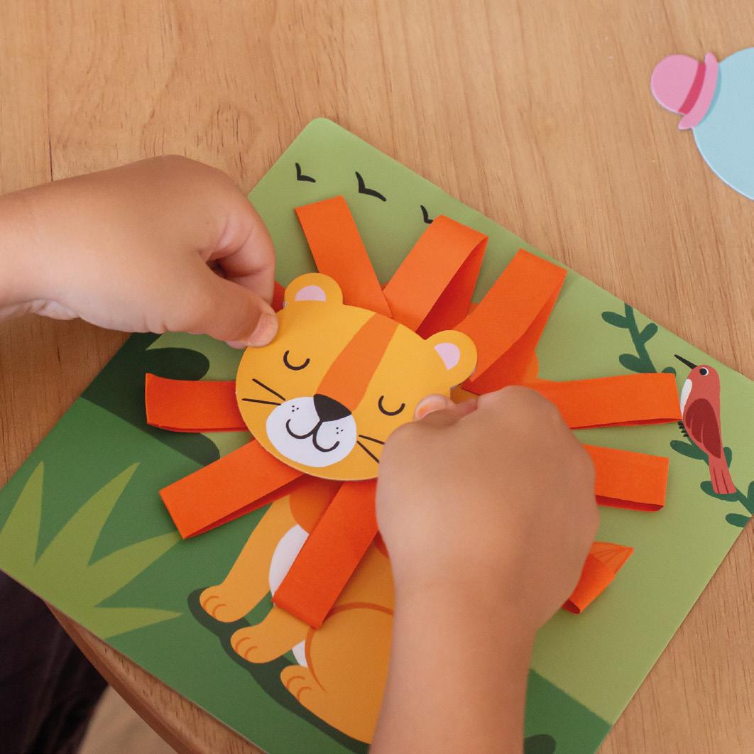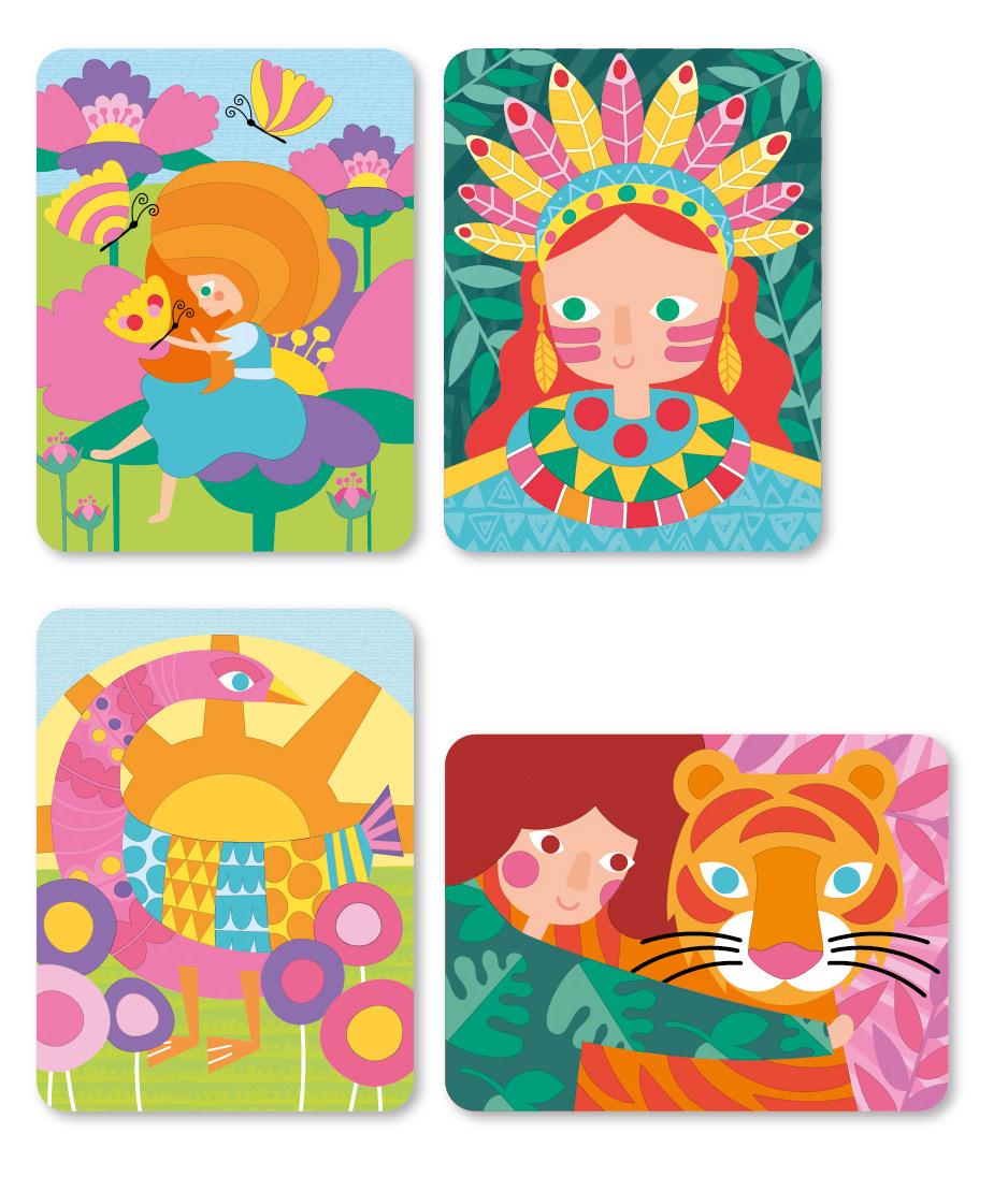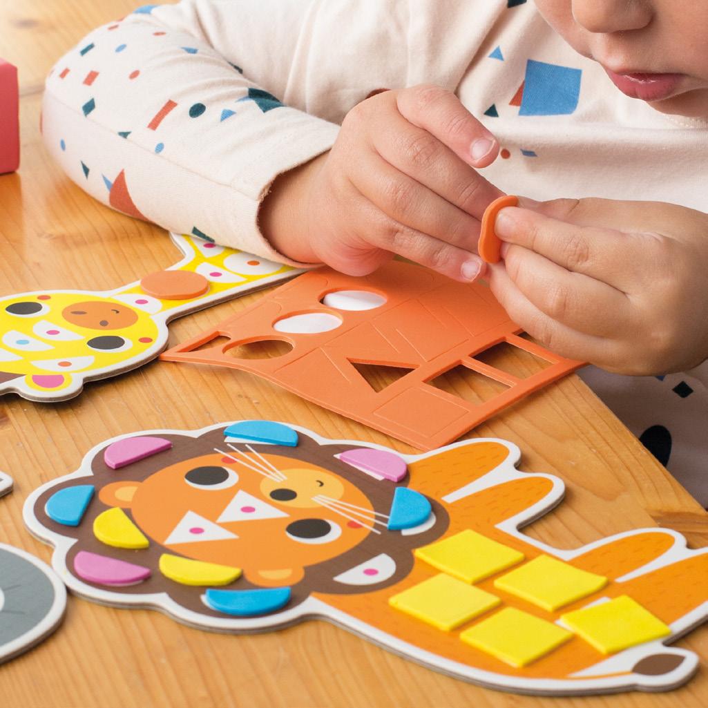 Content: 4 illustrated cards | 10 pre-cut and adhesive EVA foam of different colors | 4 guide cards with examples Presentation: Cardboard box