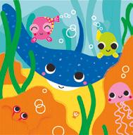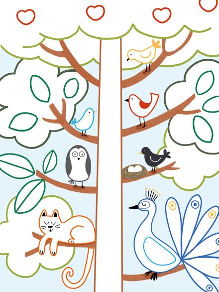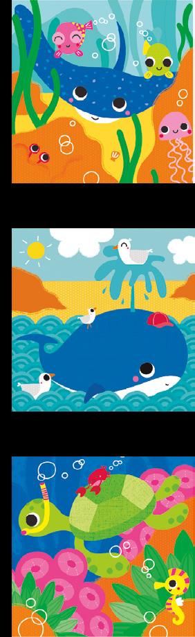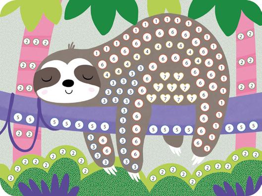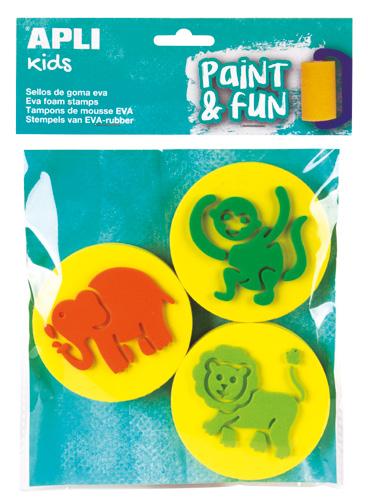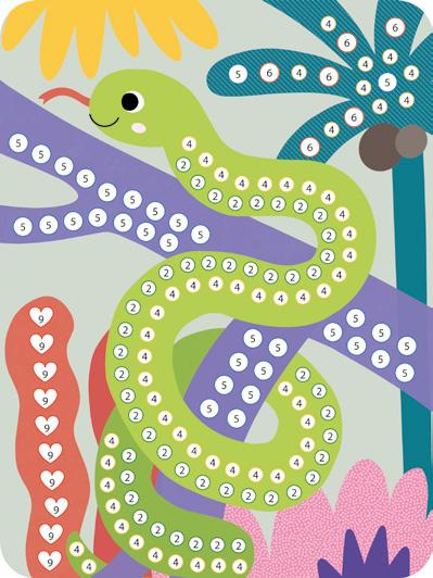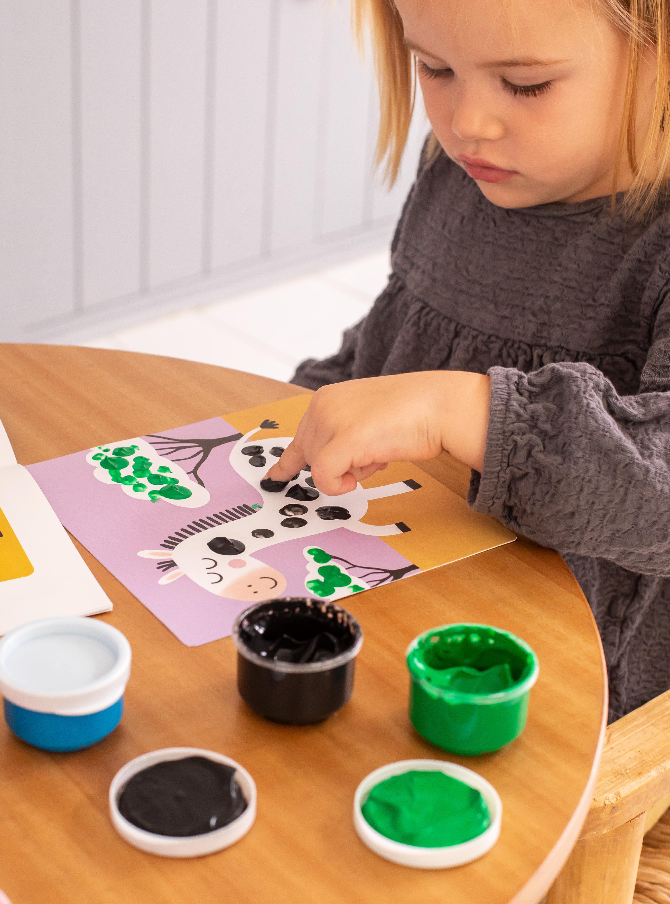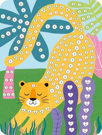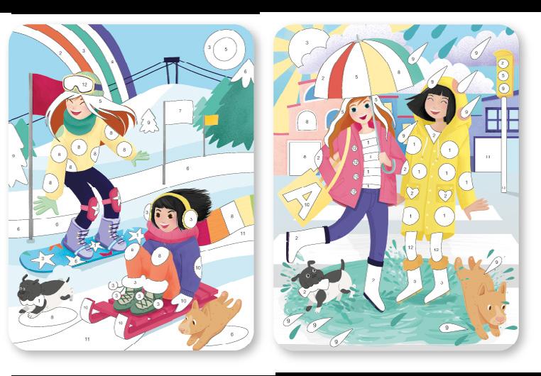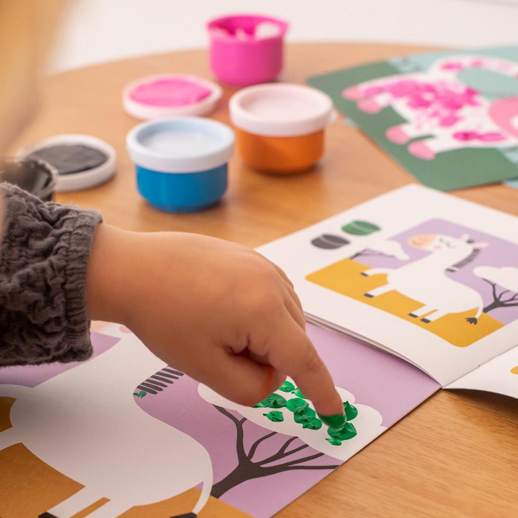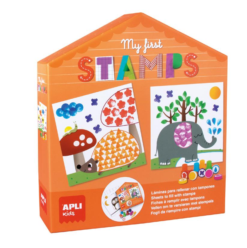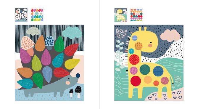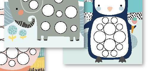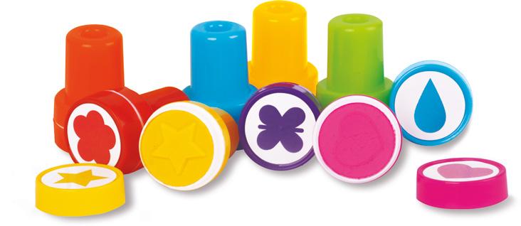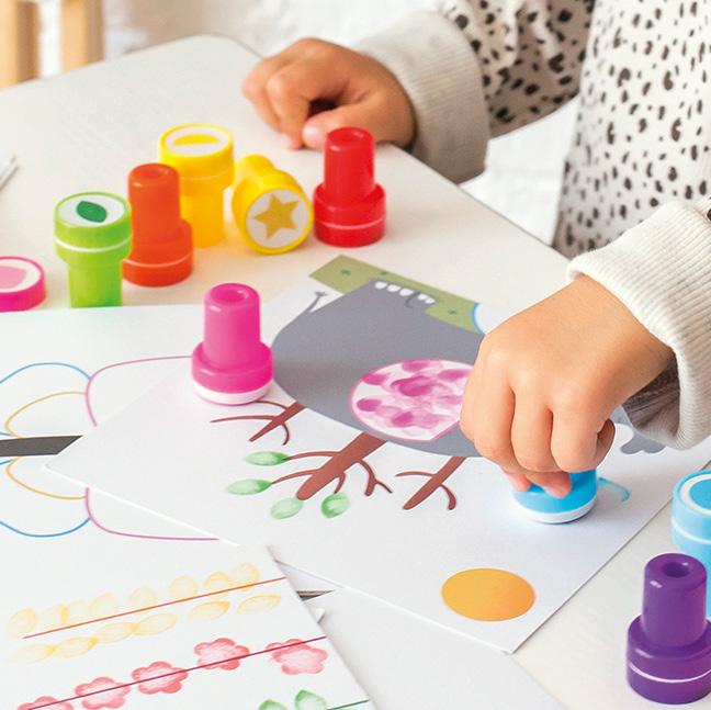 Have fun coloring the illustrations with stamps of different shapes and colors!